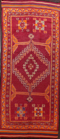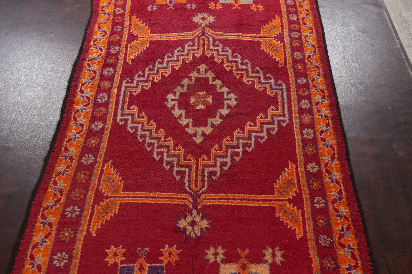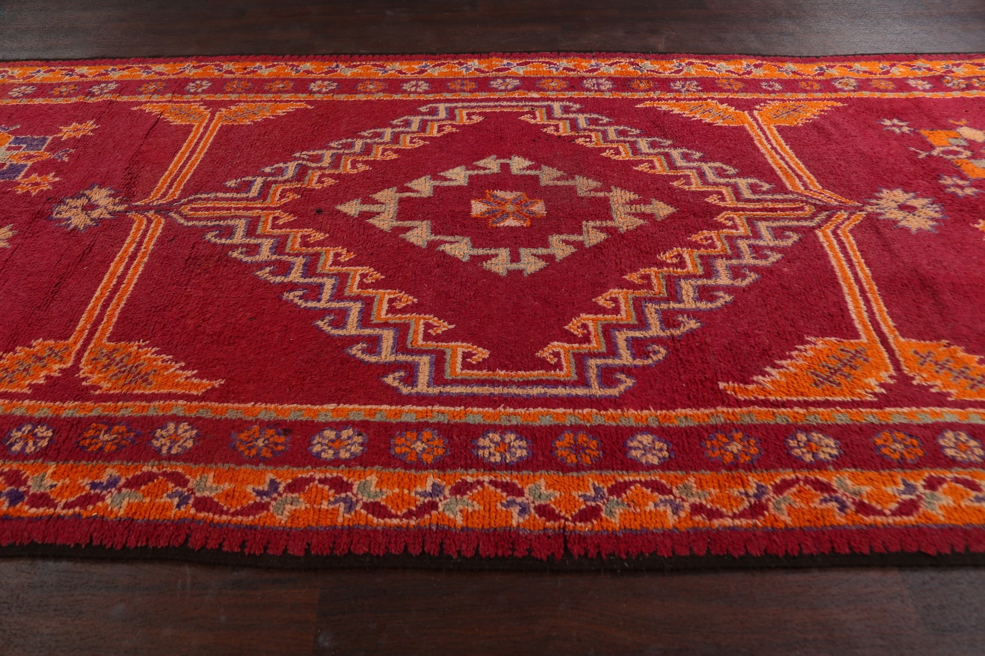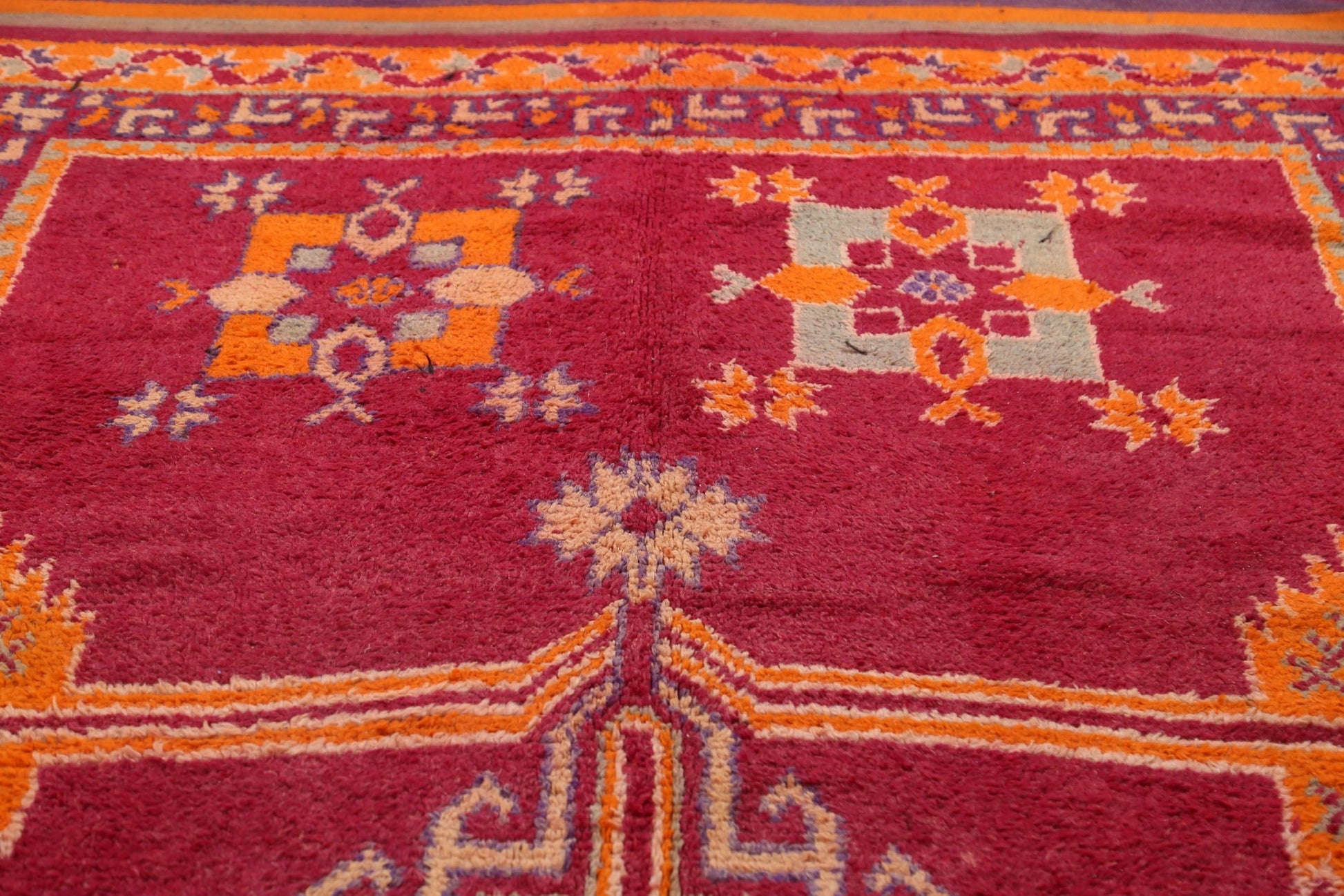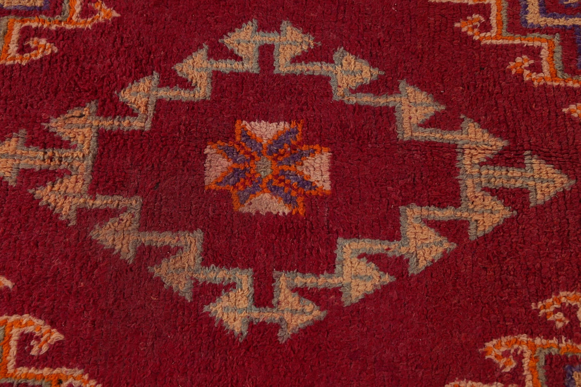 A Beautiful Genuine Morocco Moroccan rug is Hand Knotted by skillful weavers in Morocco with 100% Wool Material. This rug is in Very Good condition. dimensions are 16' 8'' X 6' 9'' in foot and 508 X 206 in centimeter. the primary color is Red.