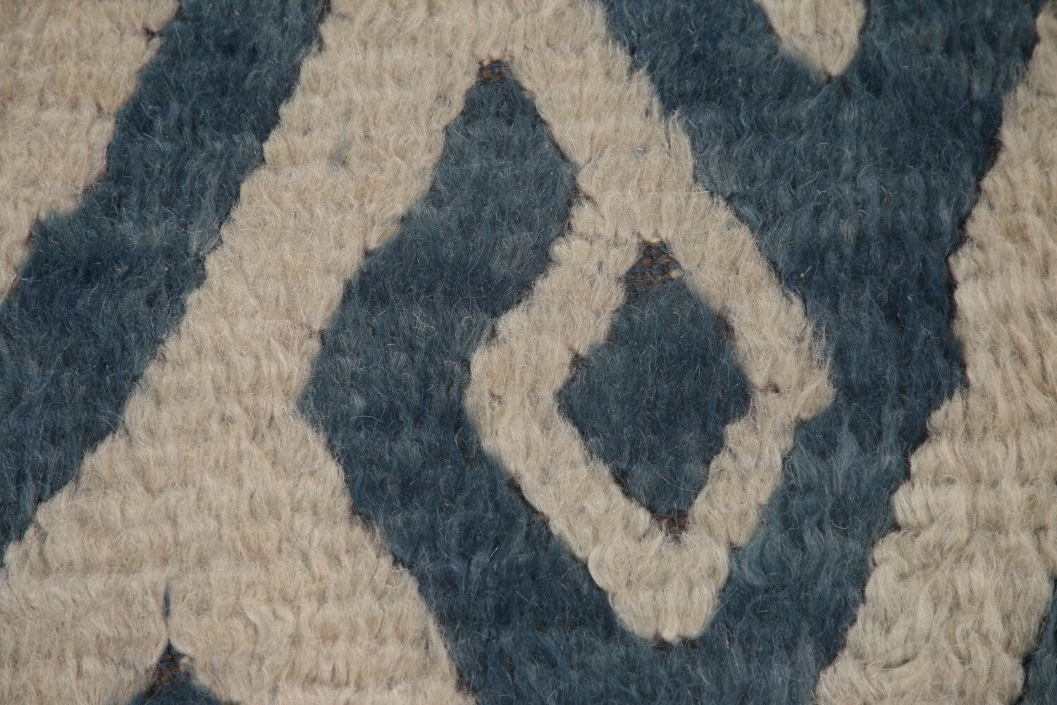 A Beautiful Genuine India Moroccan Shaggy rug is Hand Knotted by skillful weavers in India with 100% Wool Material. This rug is in condition. dimensions are 11' 4'' X 9' 3'' in foot and 345 X 282 in centimeter. the primary color is Beige & Ivories.