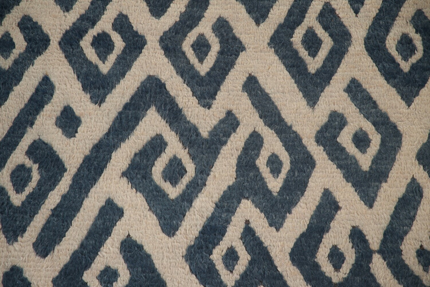 A Beautiful Genuine India Moroccan Shaggy rug is Hand Knotted by skillful weavers in India with 100% Wool Material. This rug is in condition. dimensions are 11' 1'' X 8' 11'' in foot and 338 X 272 in centimeter. the primary color is Beige & Ivories.