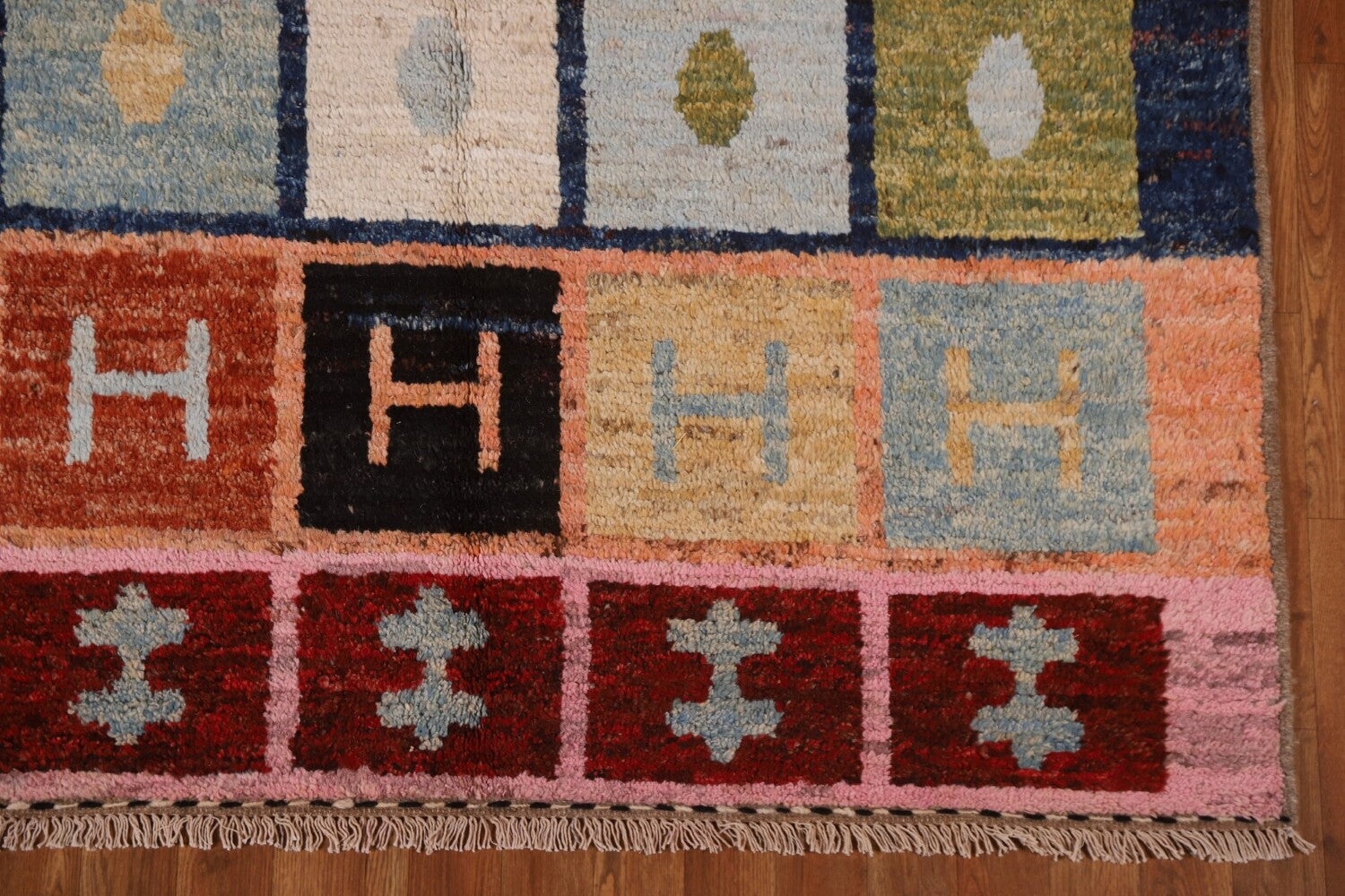 A Beautiful Genuine Pakistan Moroccan rug is Hand Knotted by skillful weavers in Pakistan with 100% Wool Material. This rug is in condition. dimensions are 6' 6'' X 5' 2'' in foot and 198 X 157 in centimeter. the primary color is Multi-Colored.