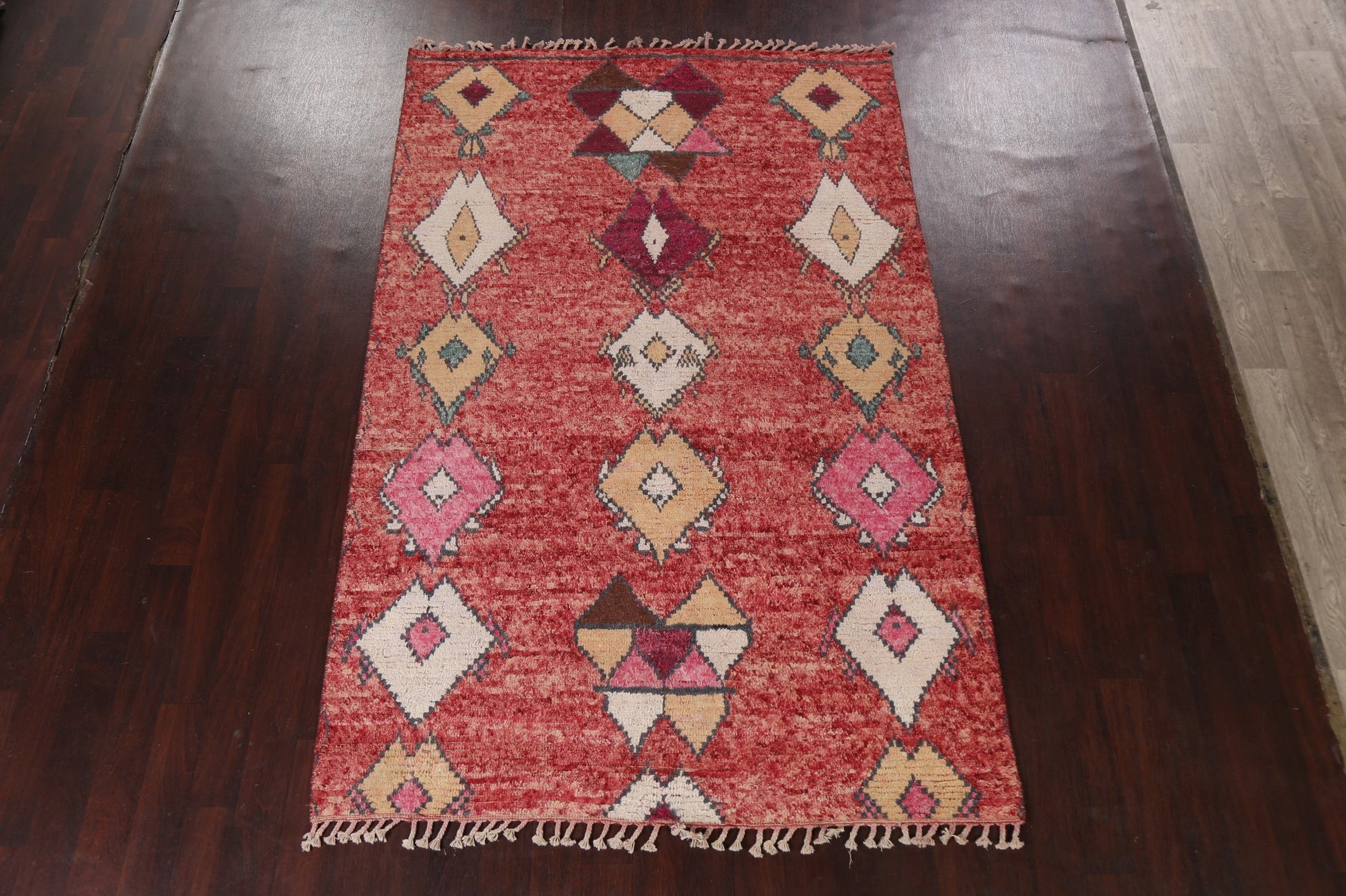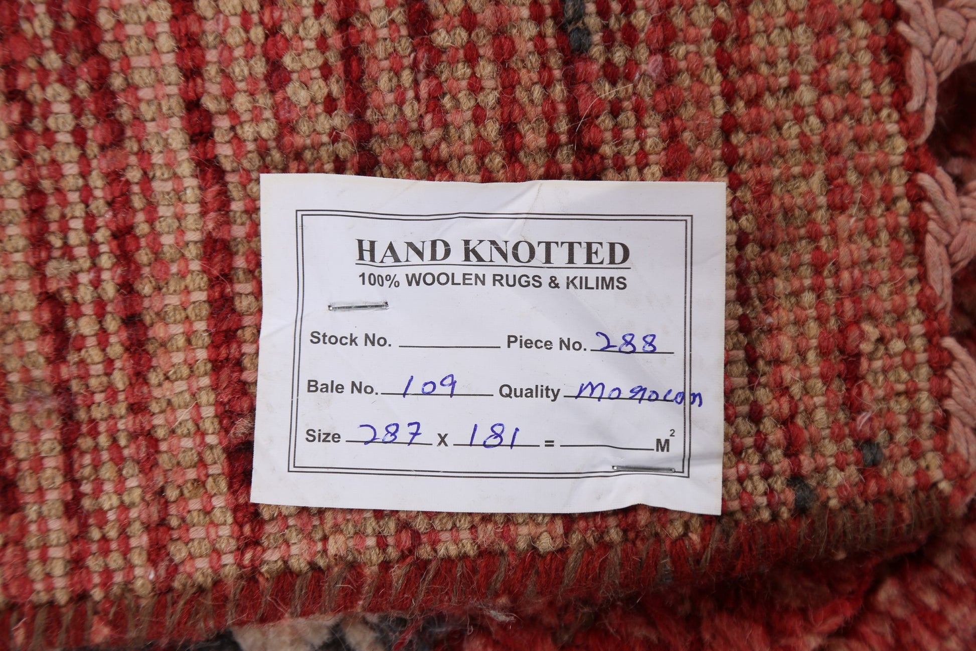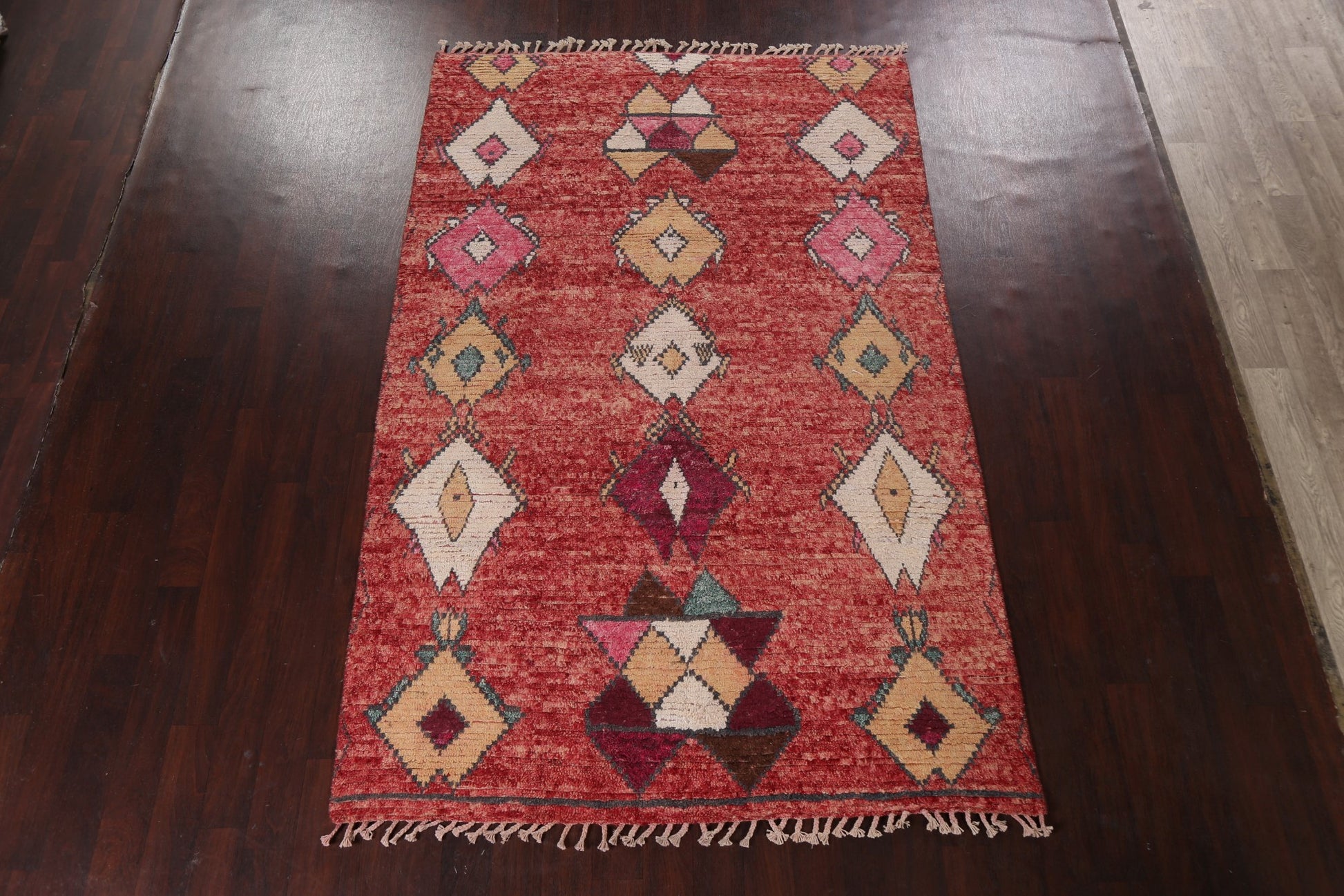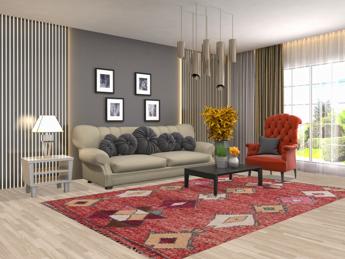 A Beautiful Genuine Morocco Moroccan rug is Hand Knotted by skillful weavers in Morocco with 100% Wool Material. This rug is in New, First Quality condition. dimensions are 9' 6'' X 6' 0'' in foot and 290 X 183 in centimeter. the primary color is Red.