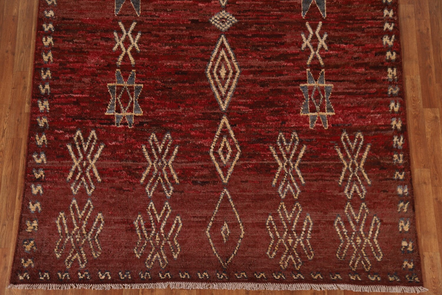 A Beautiful Genuine Pakistan Moroccan rug is Hand Knotted by skillful weavers in Pakistan with 100% Wool Material. This rug is in condition. dimensions are 9' 10'' X 6' 10'' in foot and 300 X 208 in centimeter. the primary color is Red.