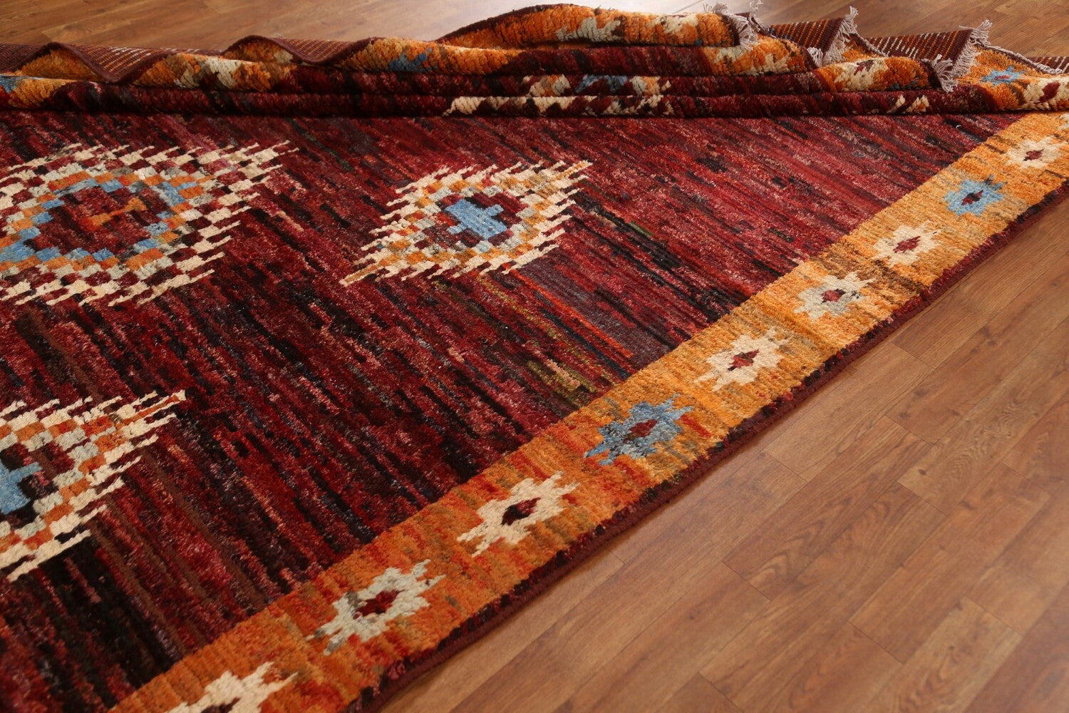 A Beautiful Genuine Pakistan Moroccan rug is Hand Knotted by skillful weavers in Pakistan with 100% Wool Material. This rug is in condition. dimensions are 9' 7'' X 6' 8'' in foot and 292 X 203 in centimeter. the primary color is Red.