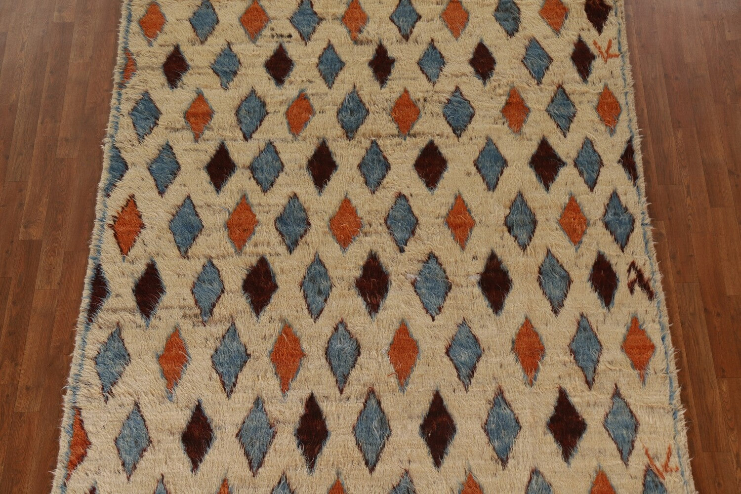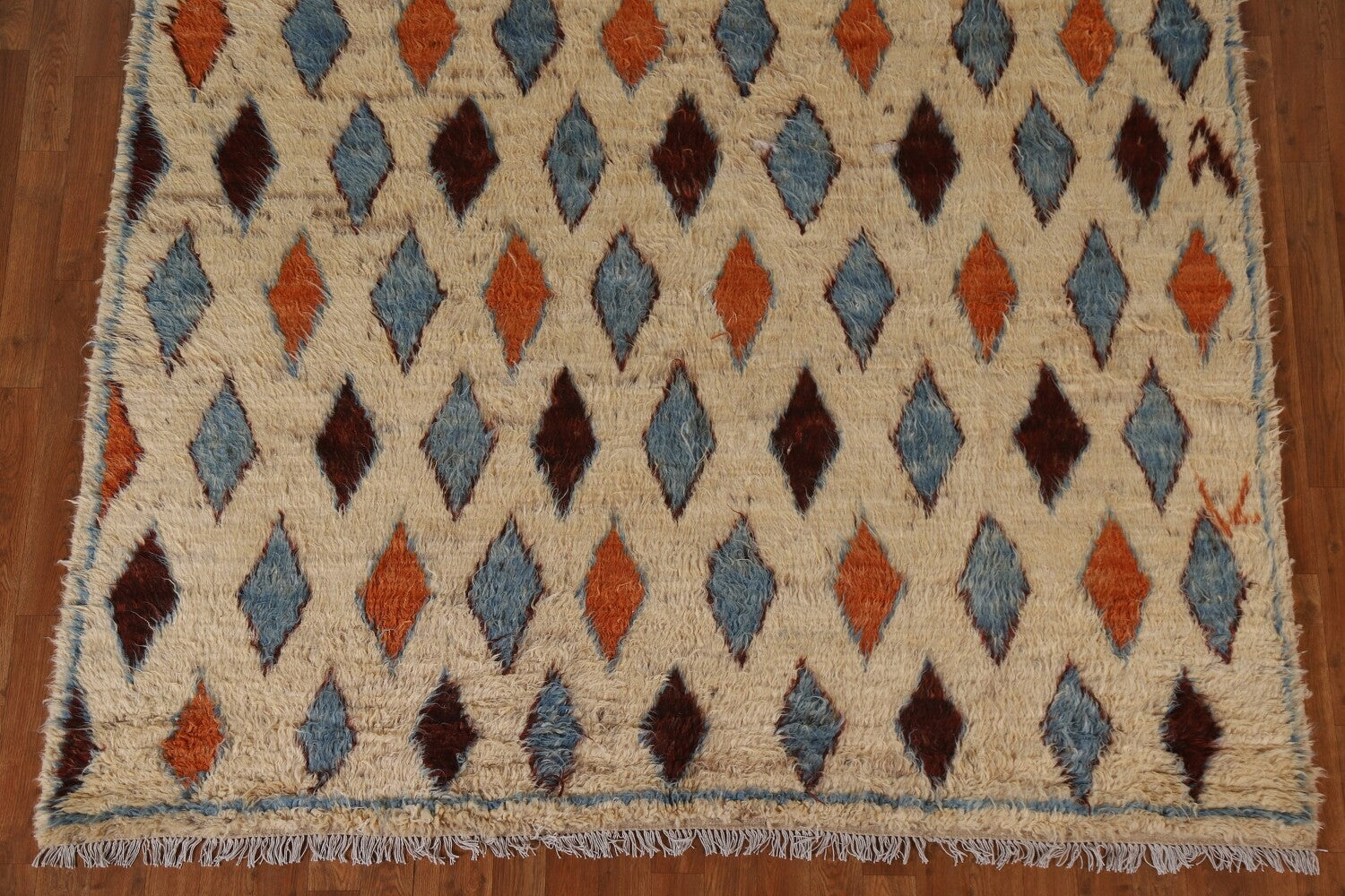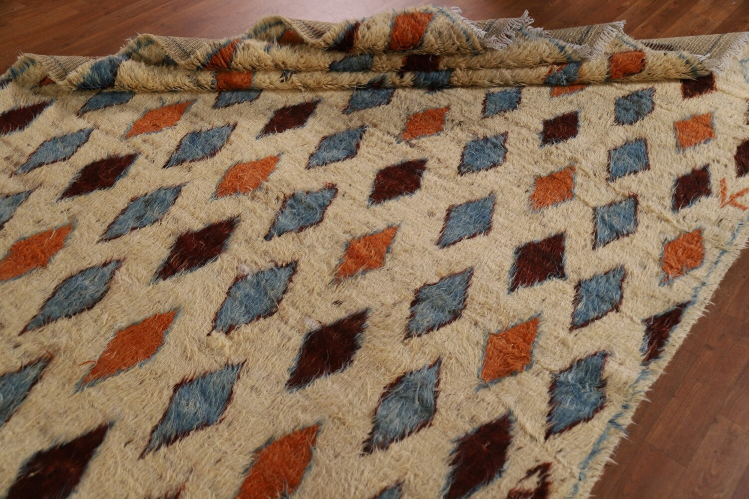 A Beautiful Genuine Pakistan Moroccan rug is Hand Knotted by skillful weavers in Pakistan with 100% Wool Material. This rug is in condition. dimensions are 9' 11'' X 6' 6'' in foot and 302 X 198 in centimeter. the primary color is Beige & Ivories.