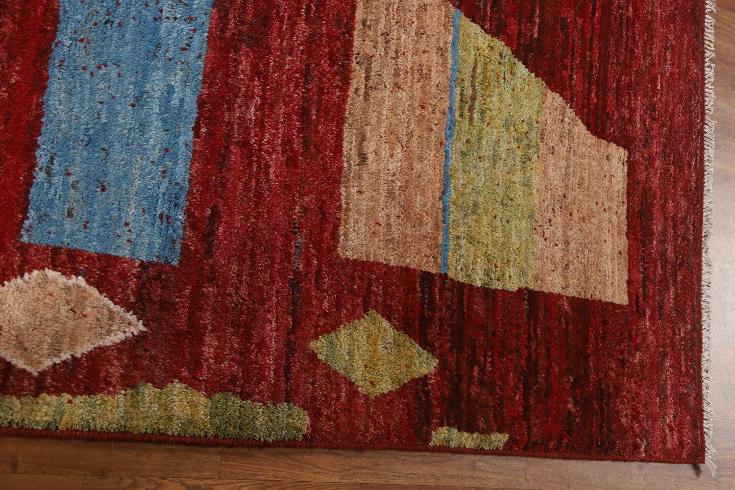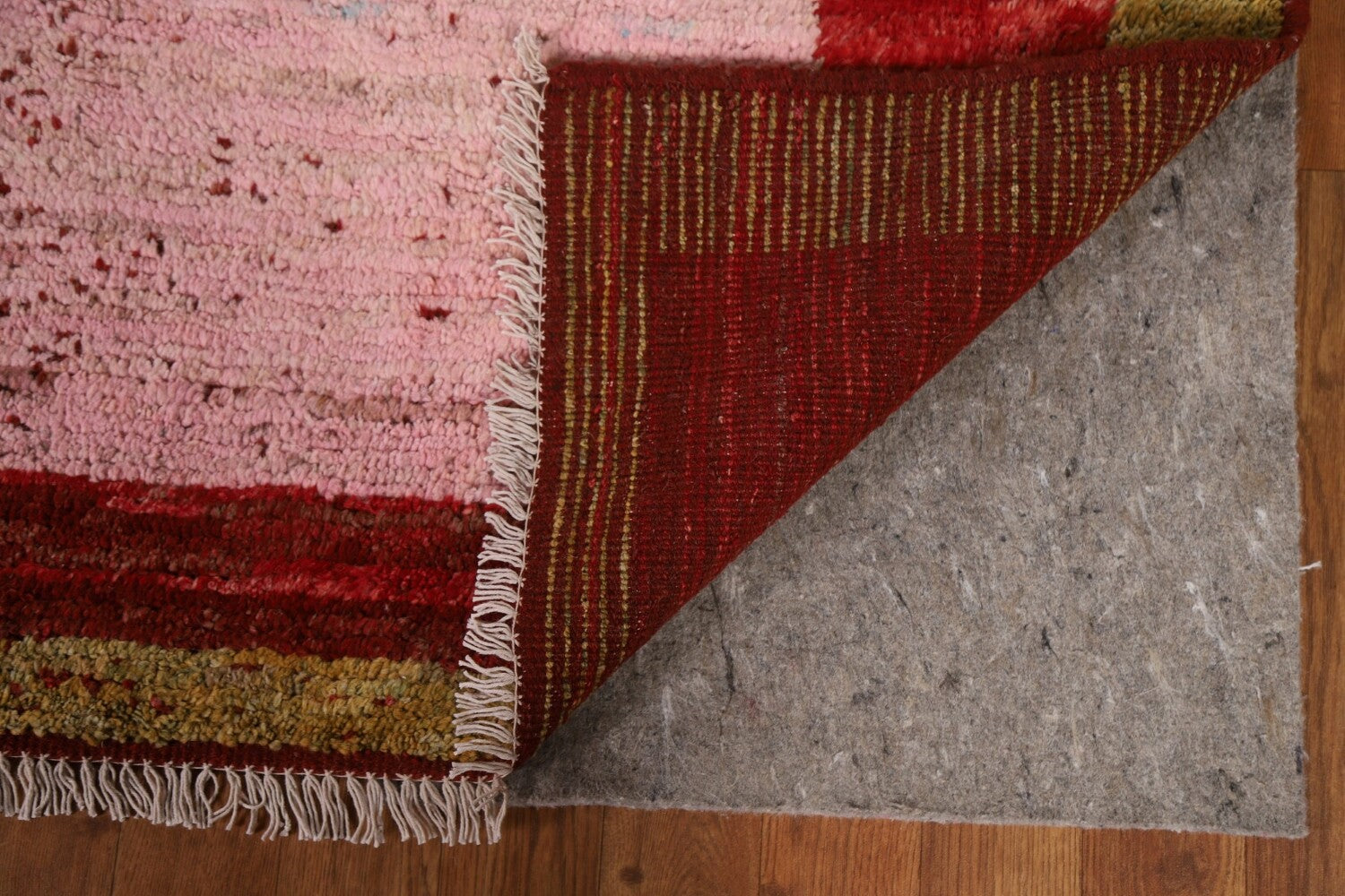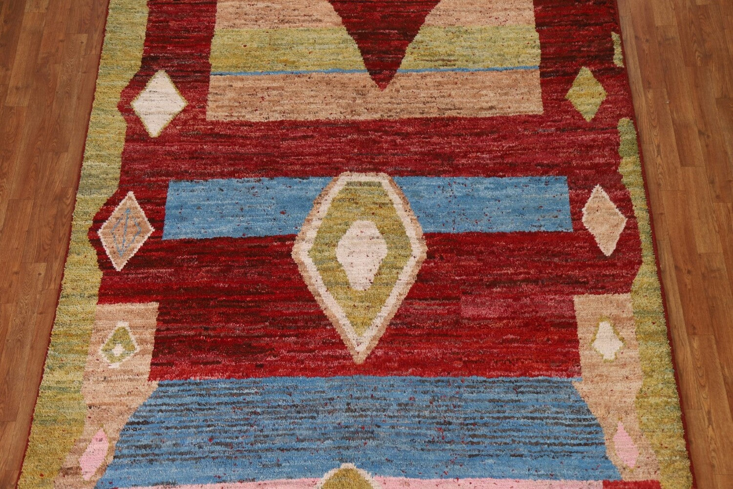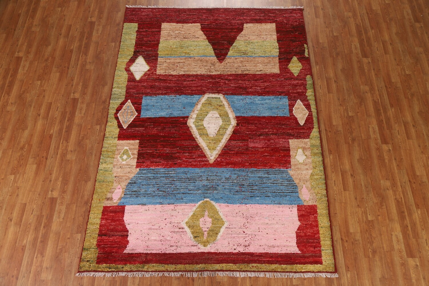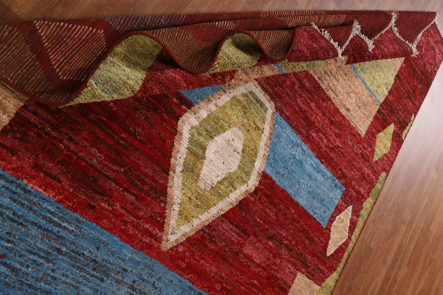 A Beautiful Genuine Pakistan Moroccan rug is Hand Knotted by skillful weavers in Pakistan with 100% Wool Material. This rug is in condition. dimensions are 9' 2'' X 6' 6'' in foot and 279 X 198 in centimeter. the primary color is Red.