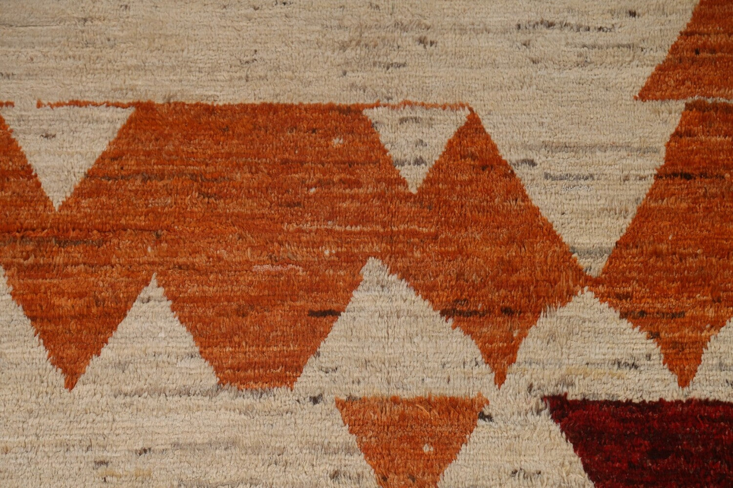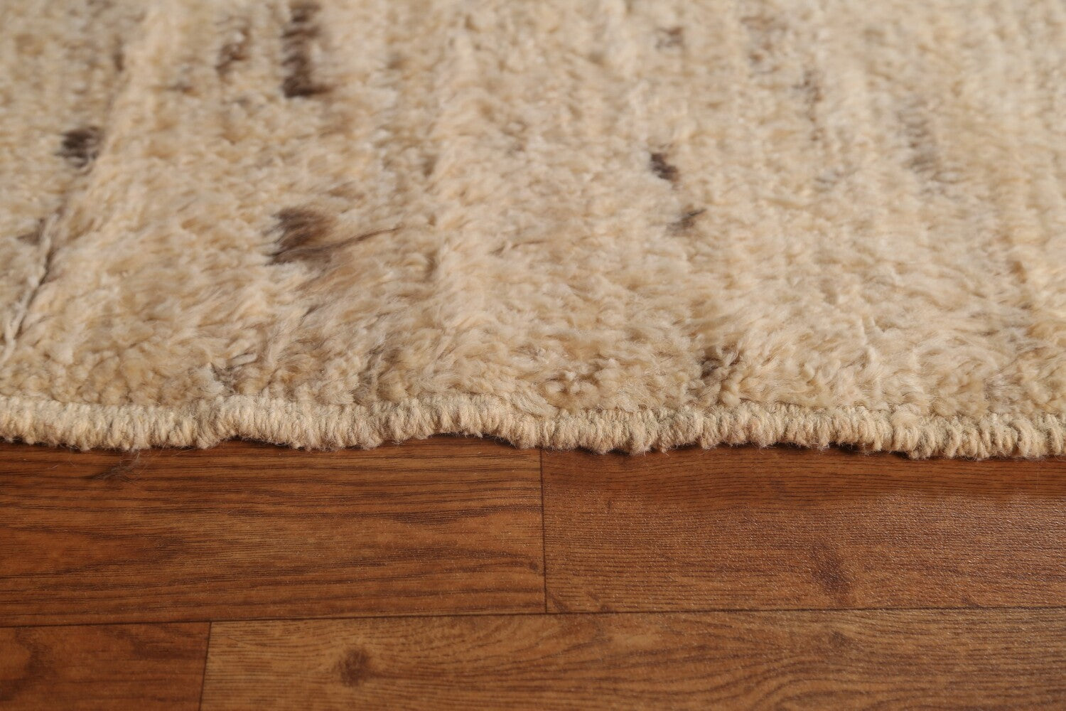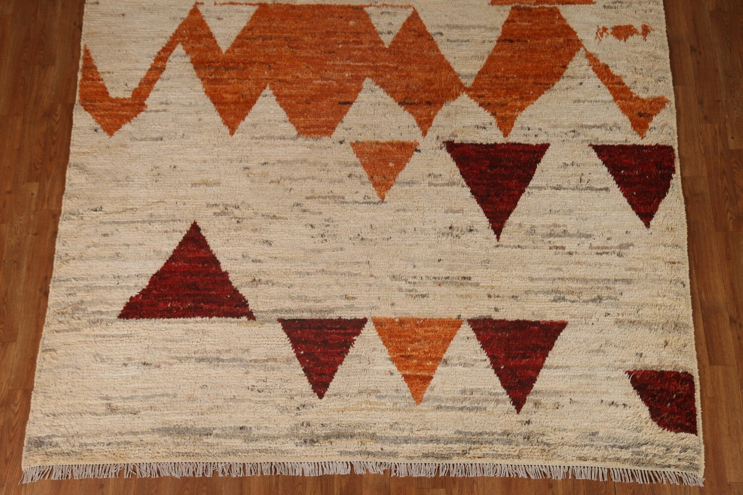 A Beautiful Genuine Pakistan Moroccan rug is Hand Knotted by skillful weavers in Pakistan with 100% Wool Material. This rug is in condition. dimensions are 9' 3'' X 6' 9'' in foot and 282 X 206 in centimeter. the primary color is Beige & Ivories.