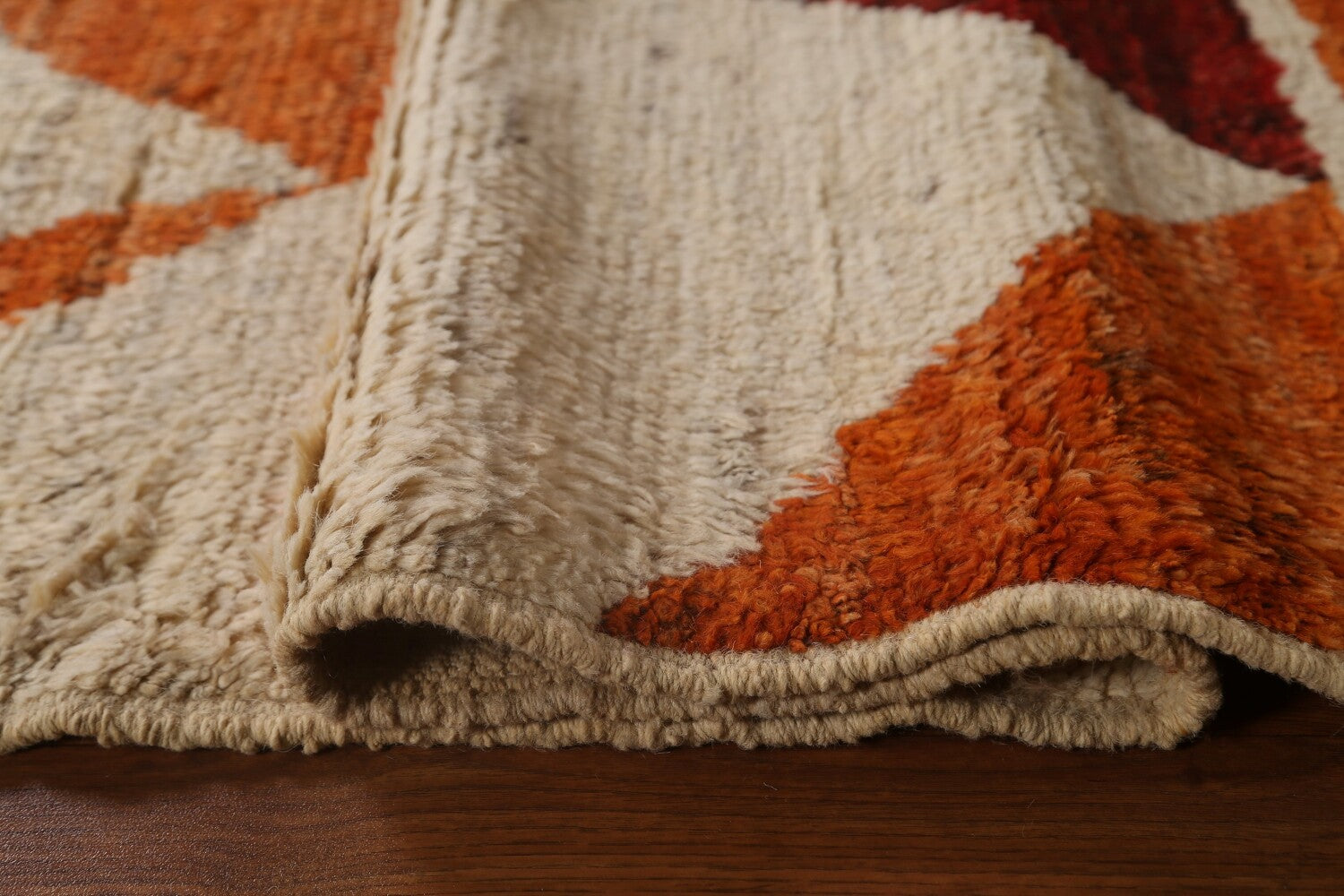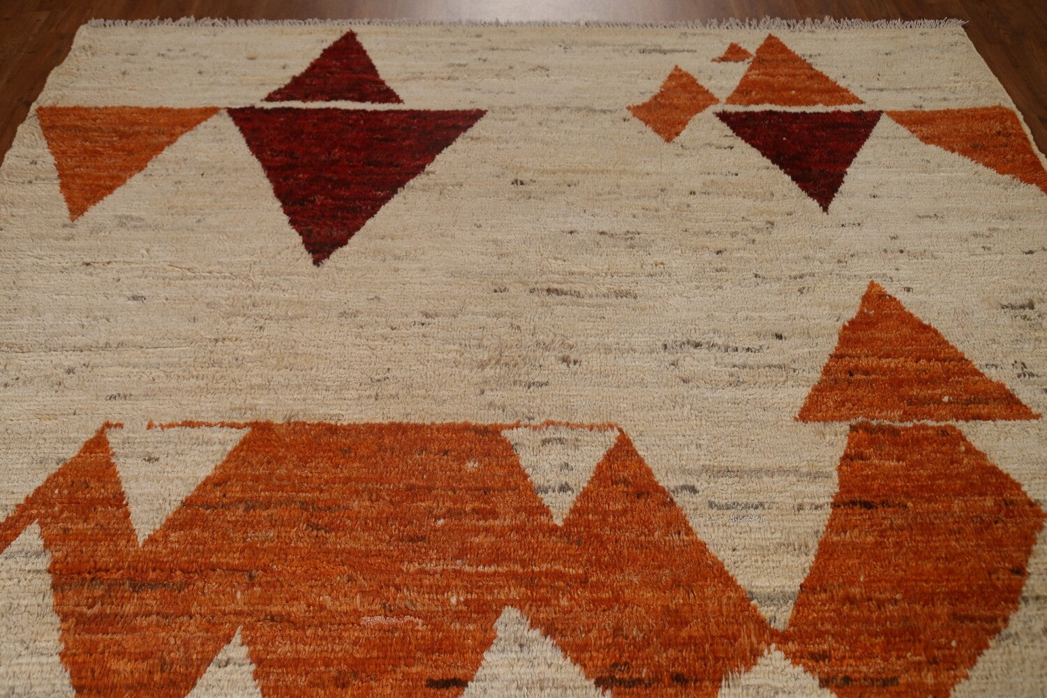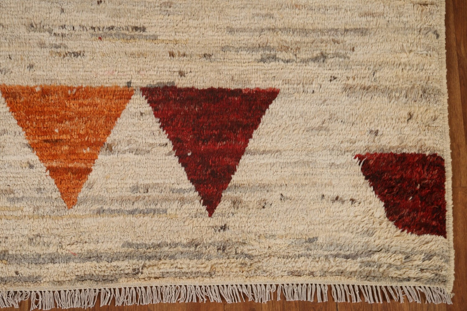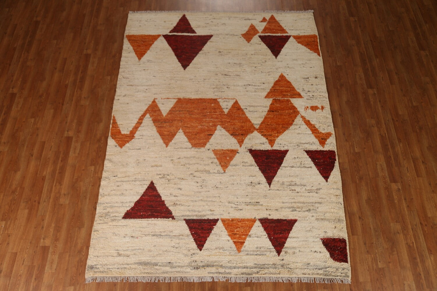 A Beautiful Genuine Pakistan Moroccan rug is Hand Knotted by skillful weavers in Pakistan with 100% Wool Material. This rug is in condition. dimensions are 9' 3'' X 6' 9'' in foot and 282 X 206 in centimeter. the primary color is Beige & Ivories.