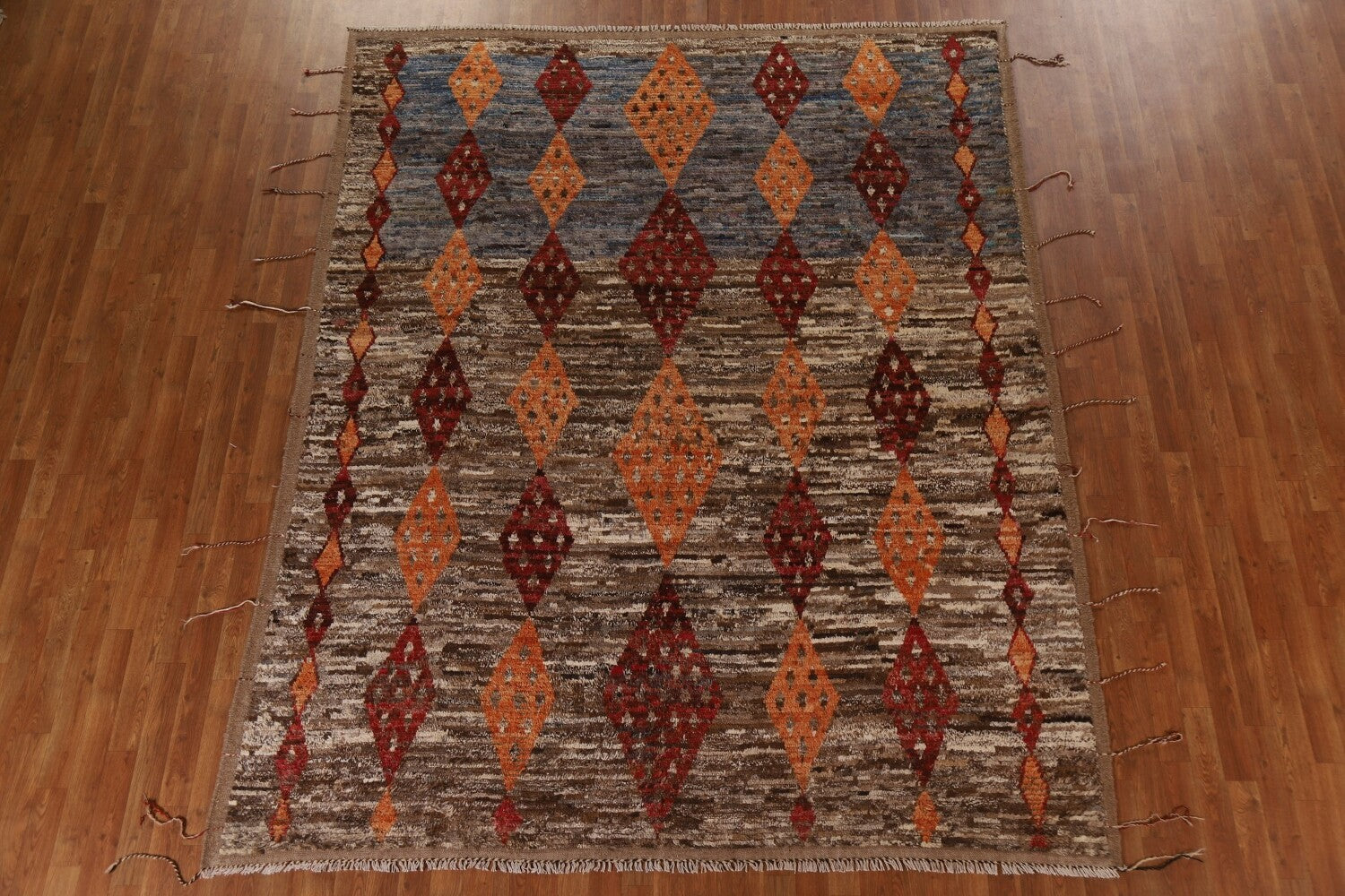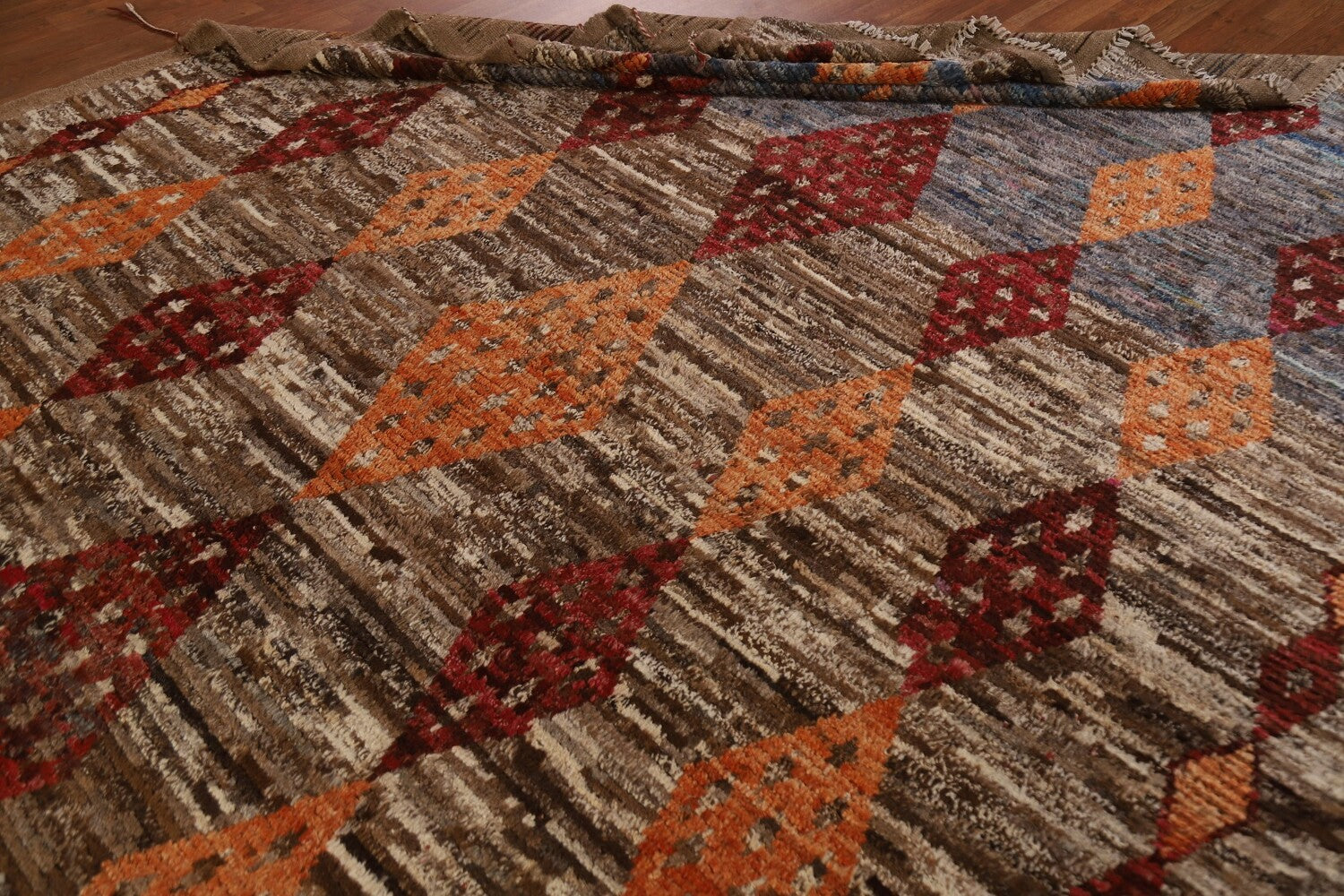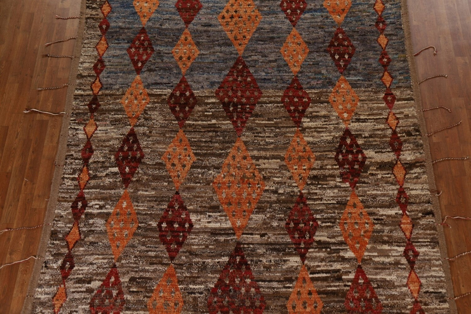 A Beautiful Genuine Pakistan Moroccan rug is Hand Knotted by skillful weavers in Pakistan with 100% Wool Material. This rug is in condition. dimensions are 9' 11'' X 7' 10'' in foot and 302 X 239 in centimeter. the primary color is Brown.