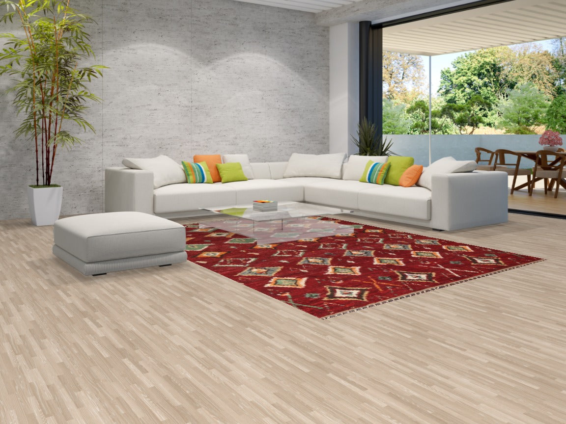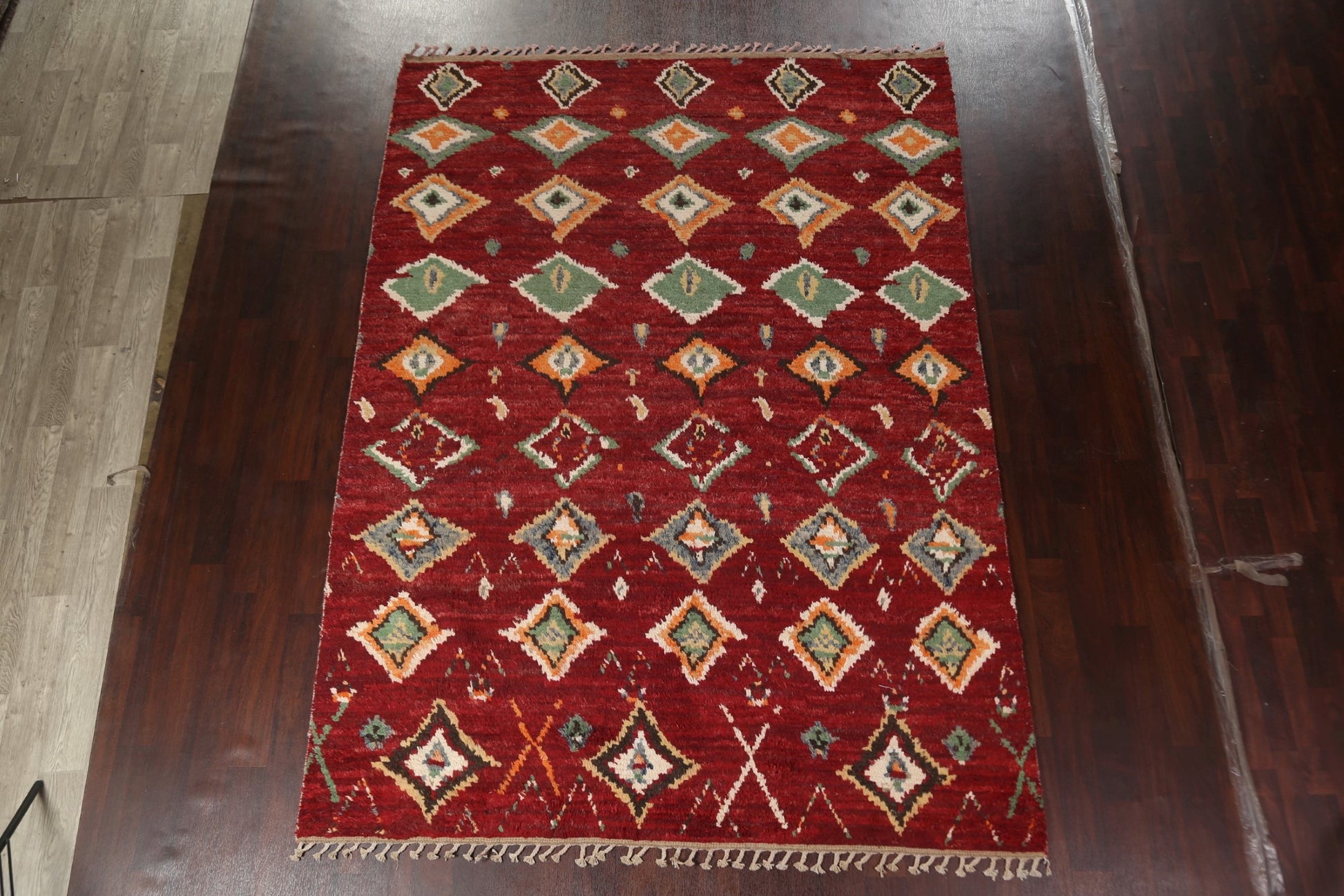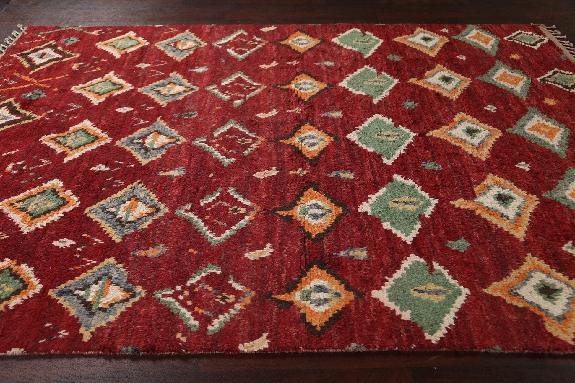 A Beautiful Genuine Morocco Moroccan rug is Hand Knotted by skillful weavers in Morocco with 100% Wool Material. This rug is in New, First Quality condition. dimensions are 10' 8'' X 7' 8'' in foot and 325 X 234 in centimeter. the primary color is Red.