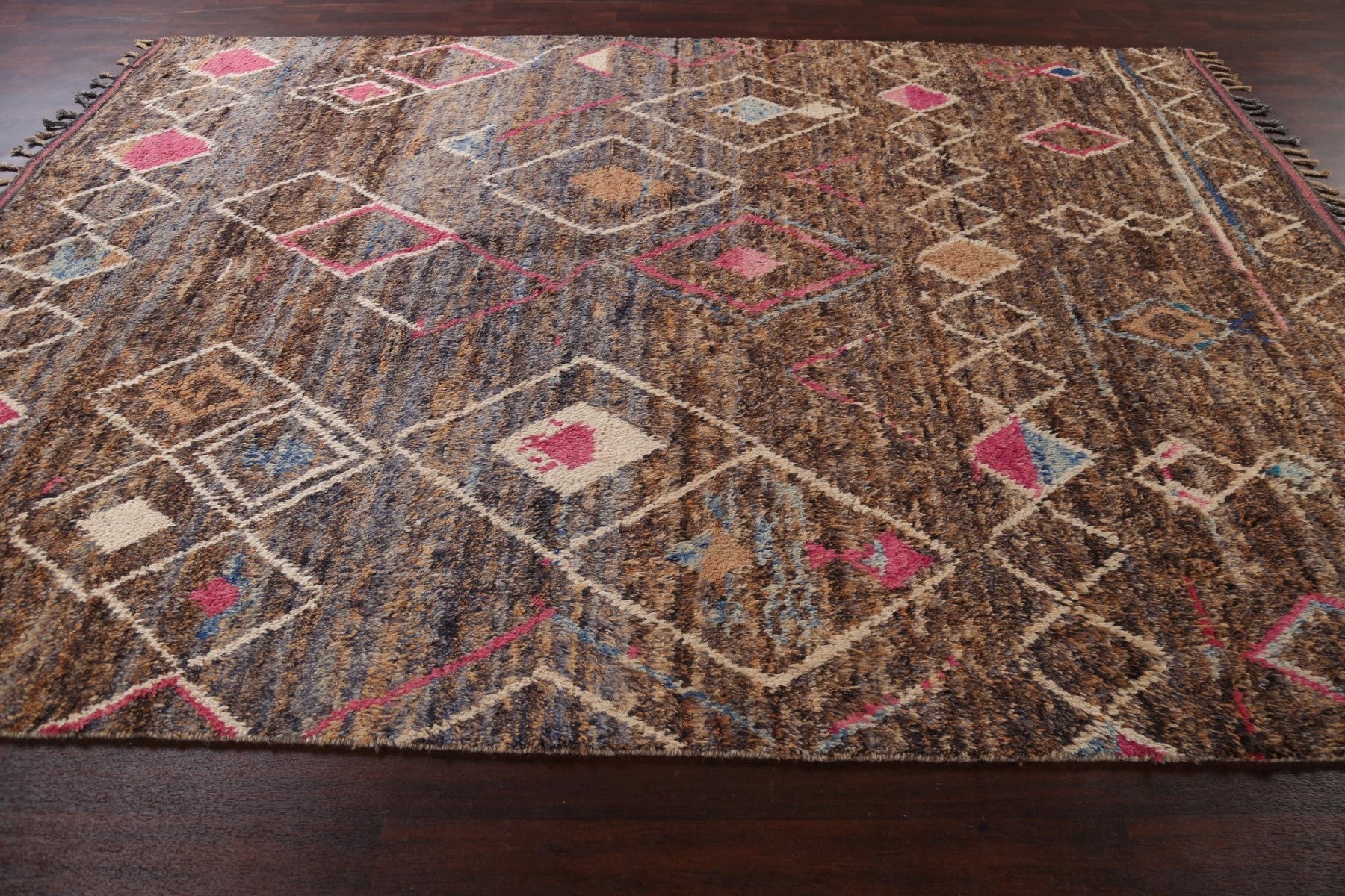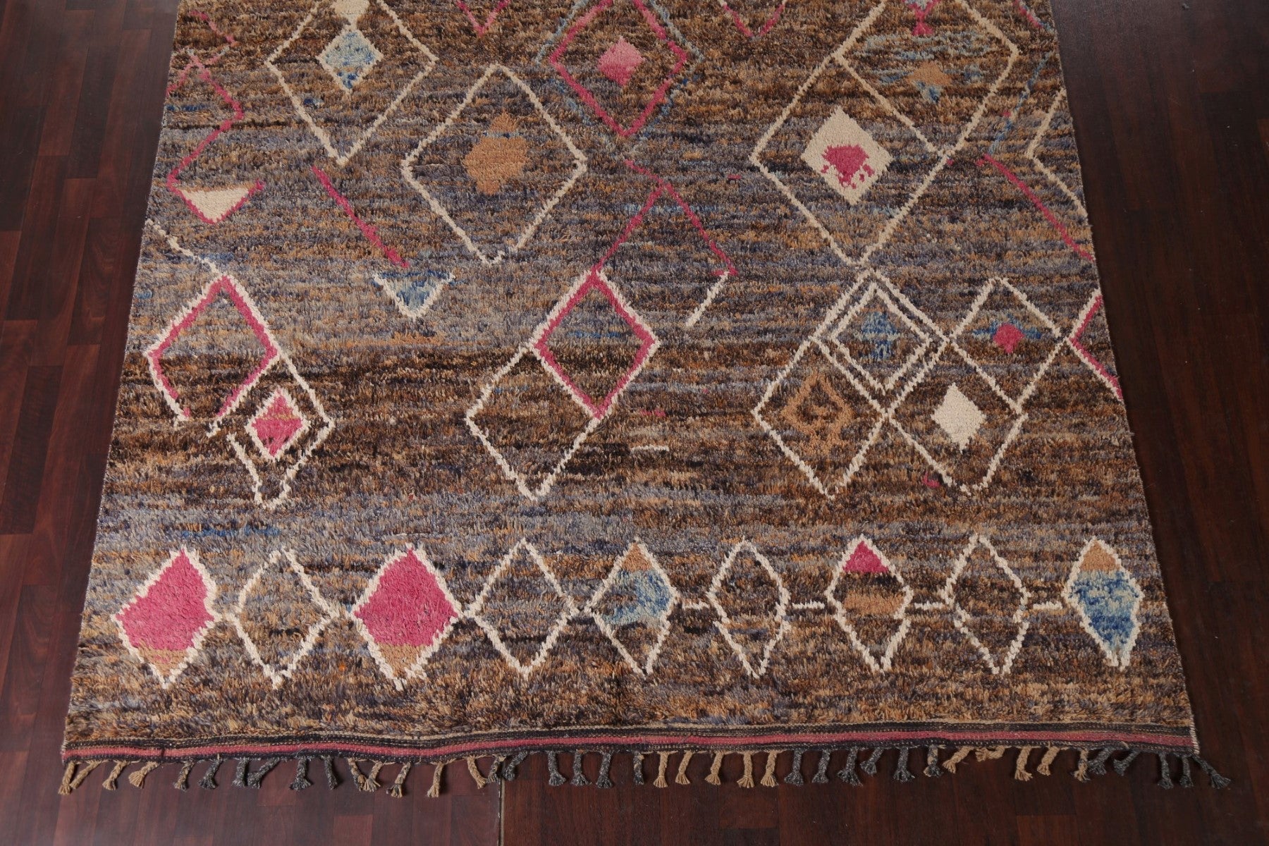 A Beautiful Genuine Morocco Moroccan rug is Hand Knotted by skillful weavers in Morocco with 100% Wool Material. This rug is in New, First Quality condition. dimensions are 11' 1'' X 8' 0'' in foot and 338 X 244 in centimeter. the primary color is Brown.