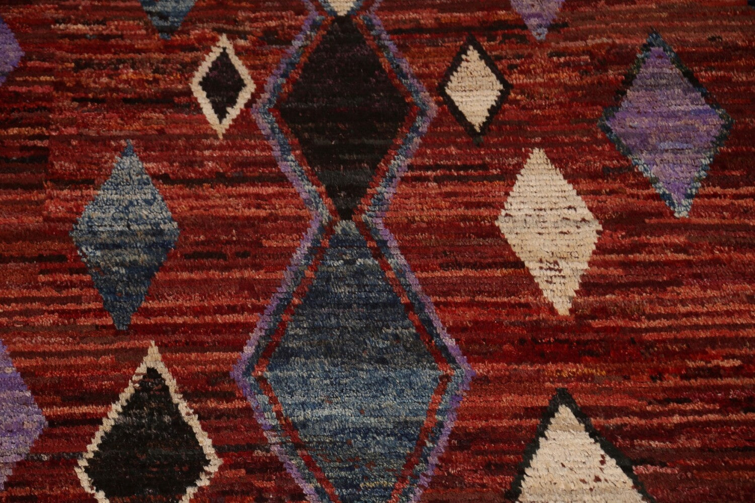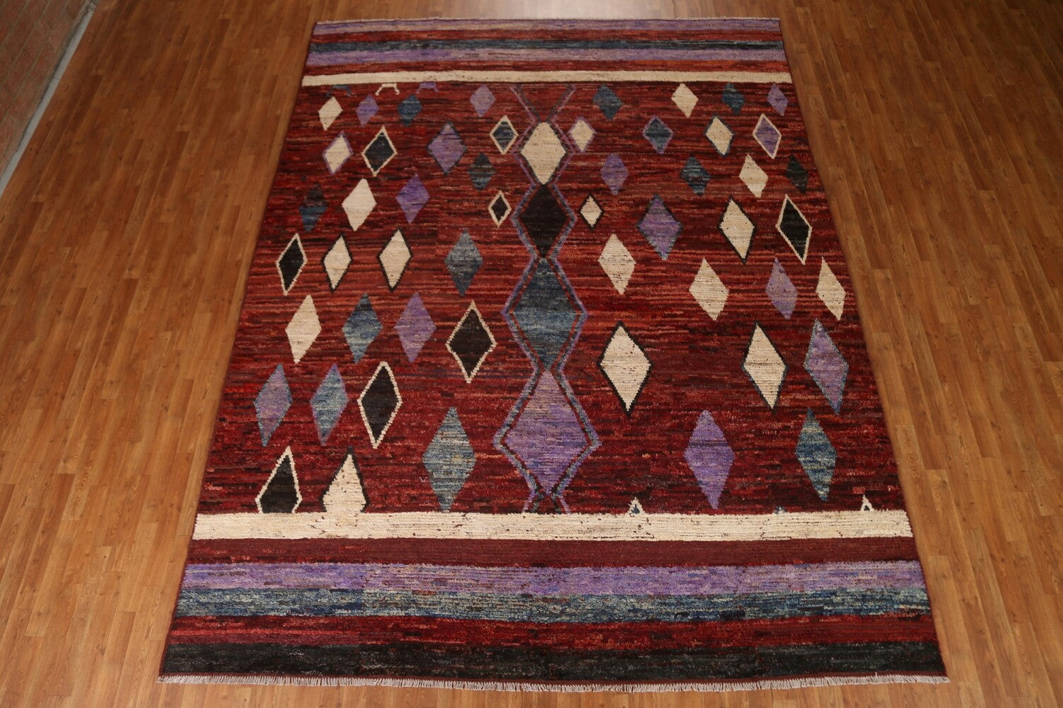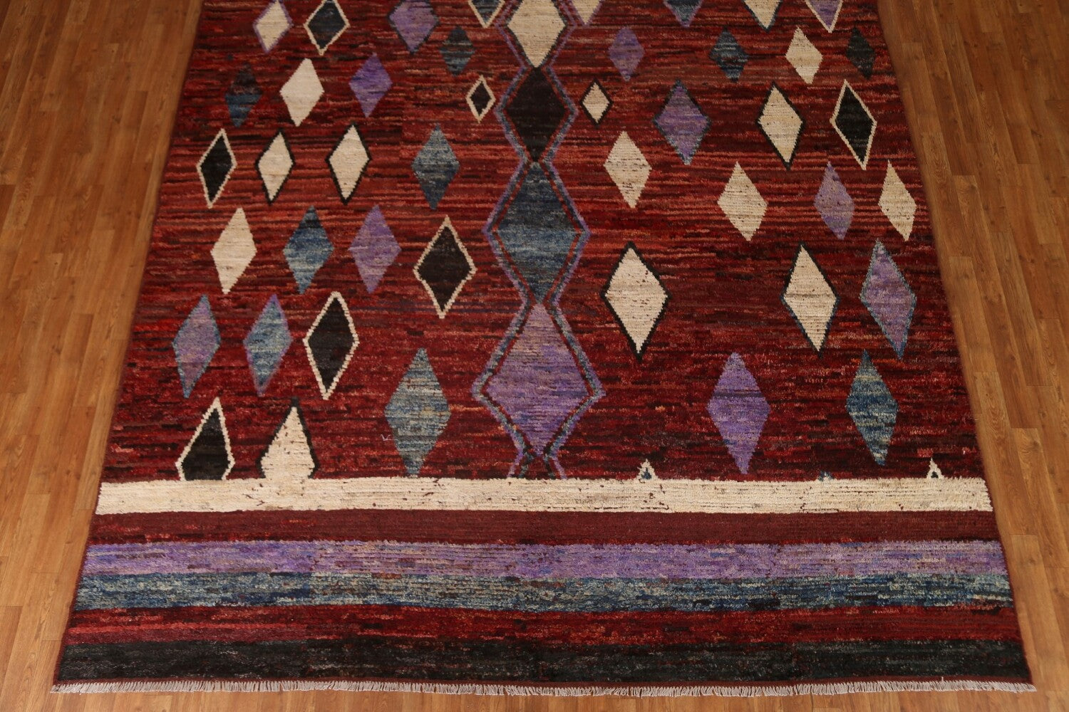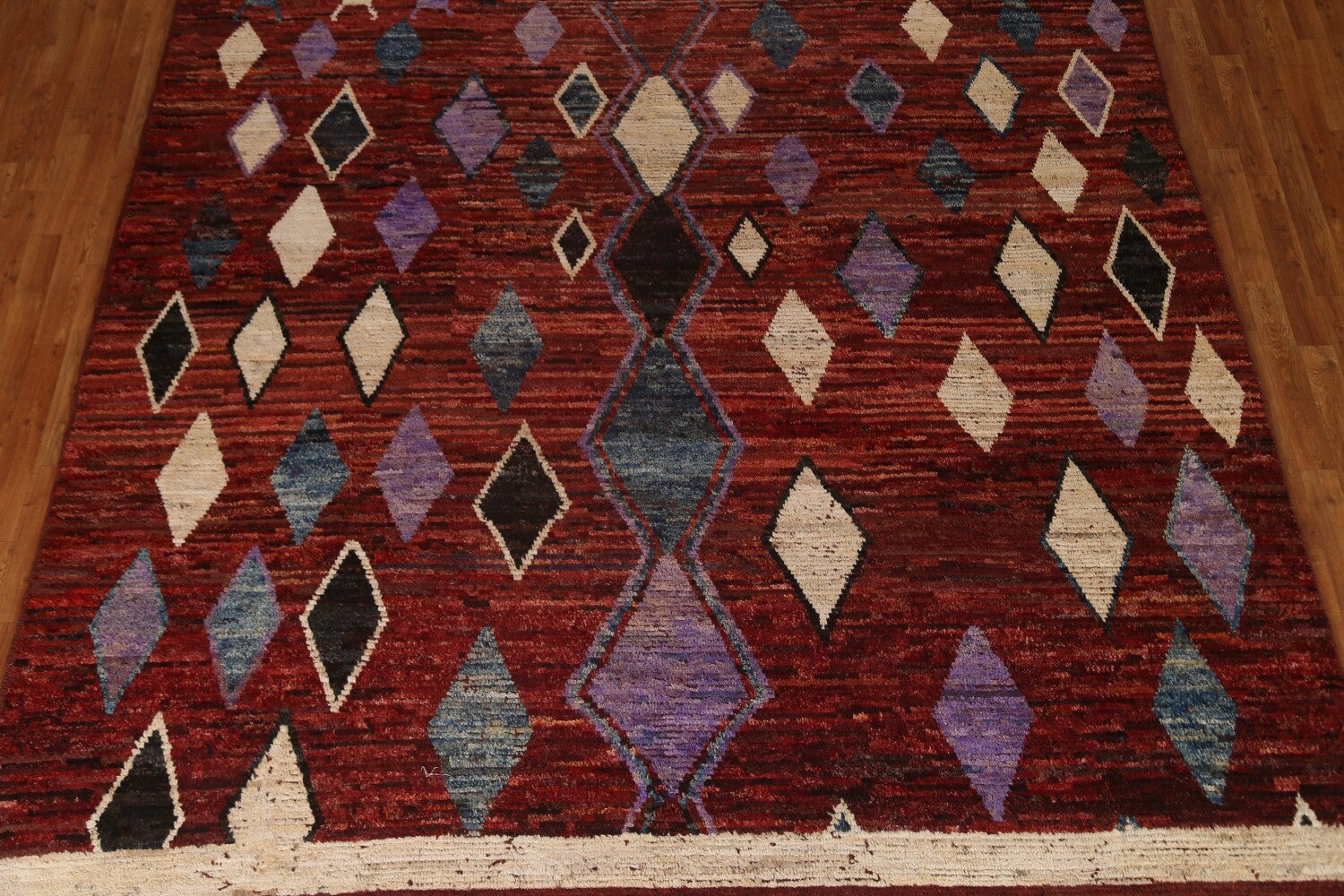 A Beautiful Genuine Pakistan Moroccan rug is Hand Knotted by skillful weavers in Pakistan with 100% Wool Material. This rug is in condition. dimensions are 12' 1'' X 9' 4'' in foot and 368 X 284 in centimeter. the primary color is Red.