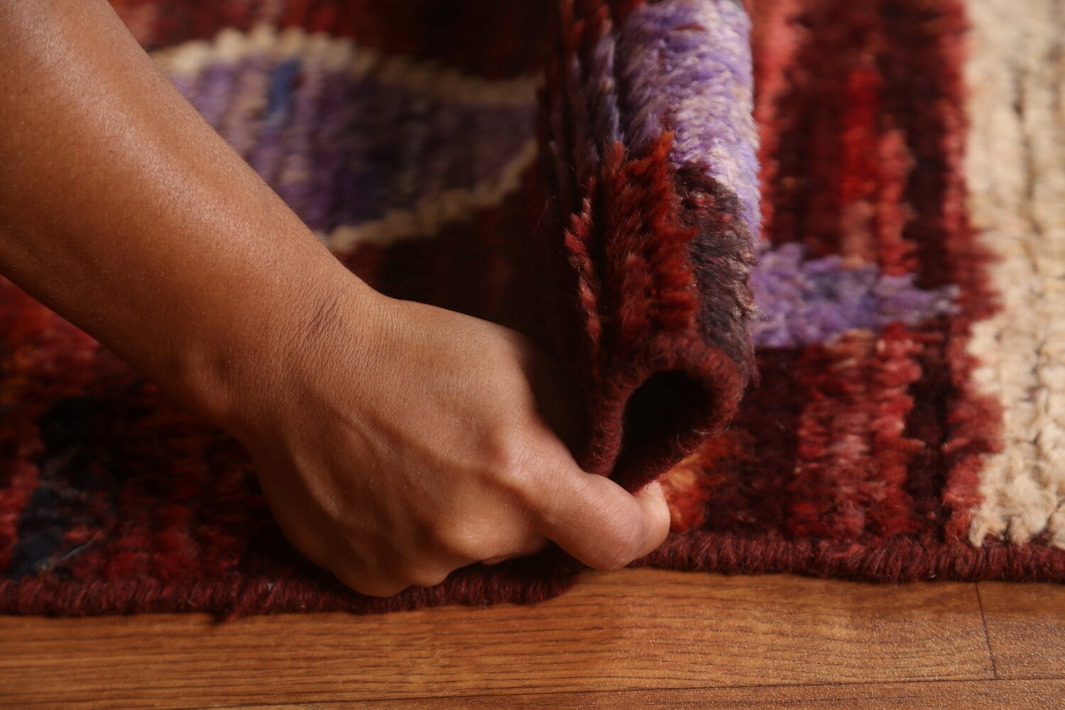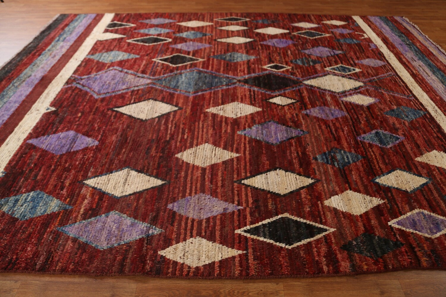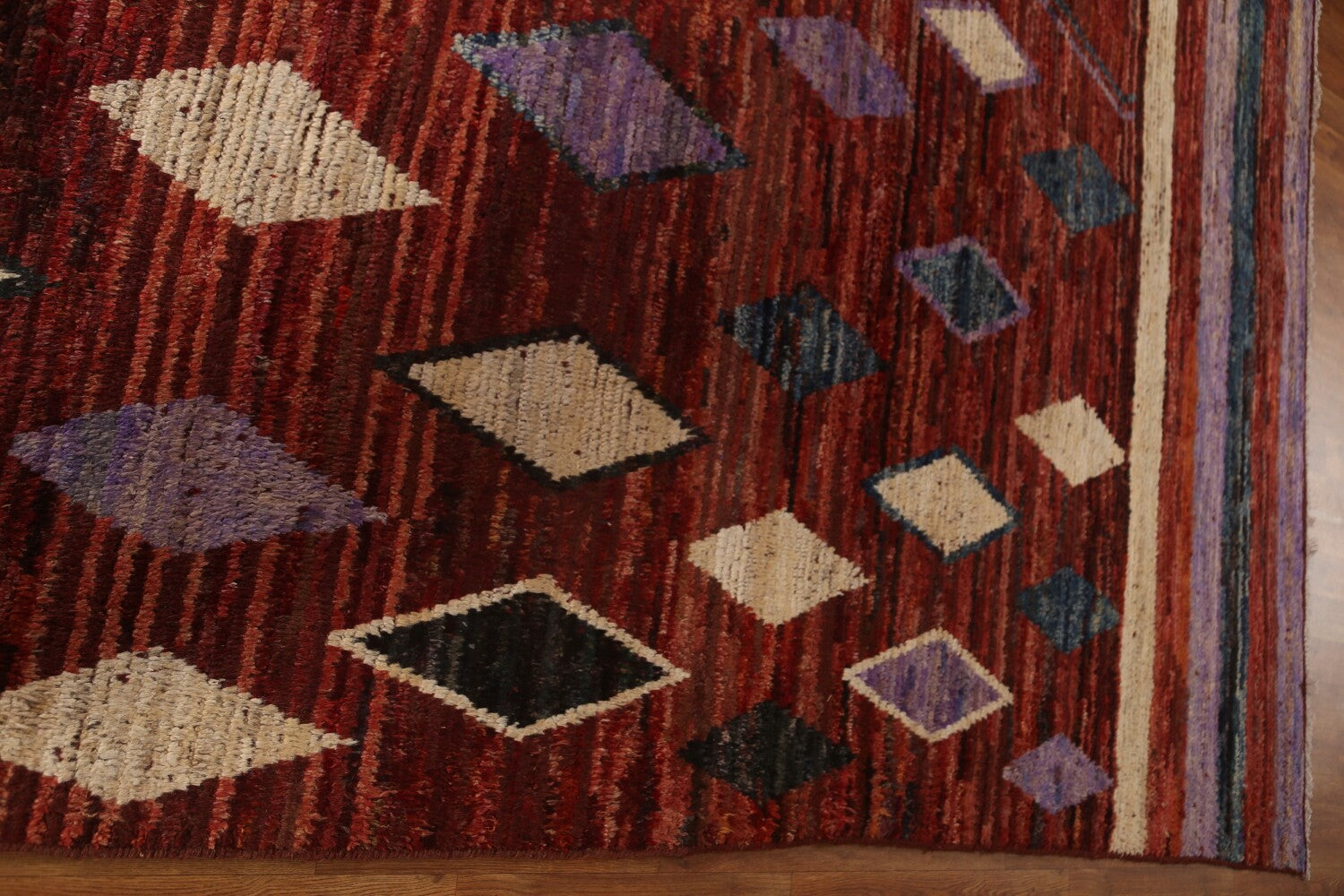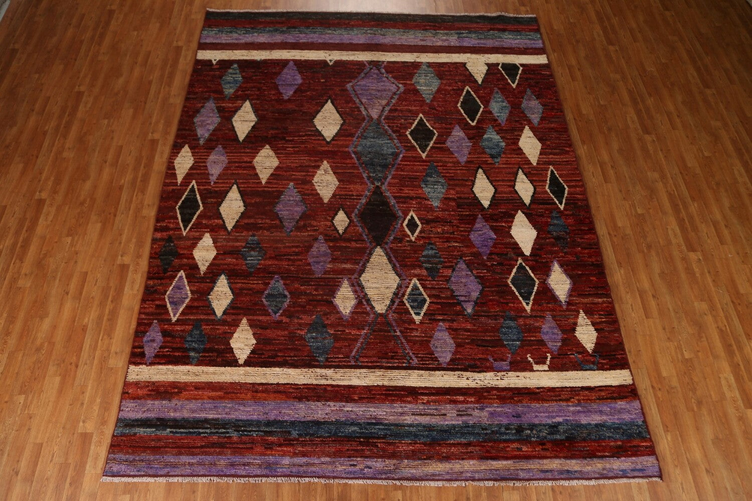 A Beautiful Genuine Pakistan Moroccan rug is Hand Knotted by skillful weavers in Pakistan with 100% Wool Material. This rug is in condition. dimensions are 12' 1'' X 9' 4'' in foot and 368 X 284 in centimeter. the primary color is Red.
