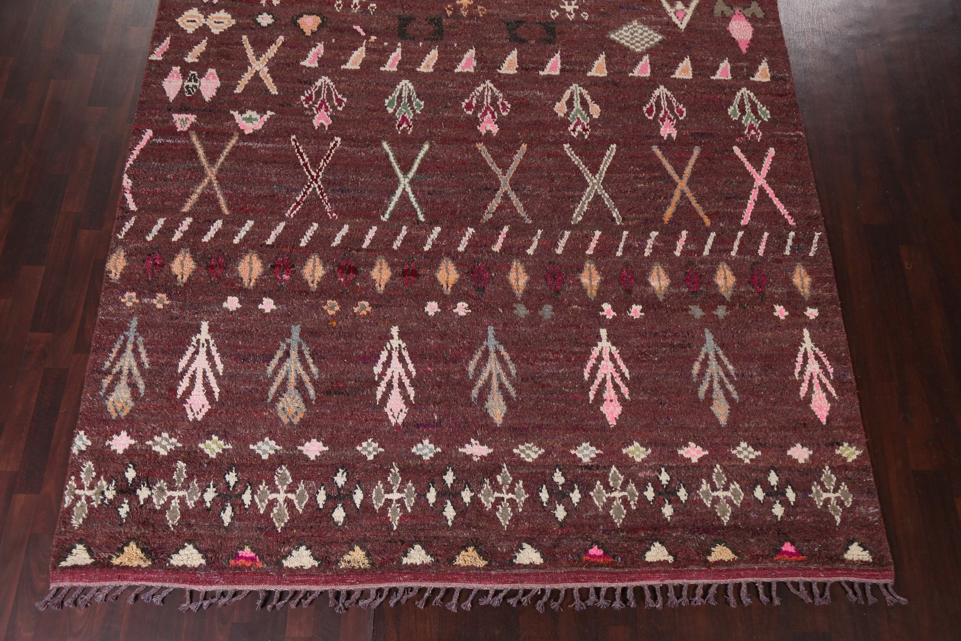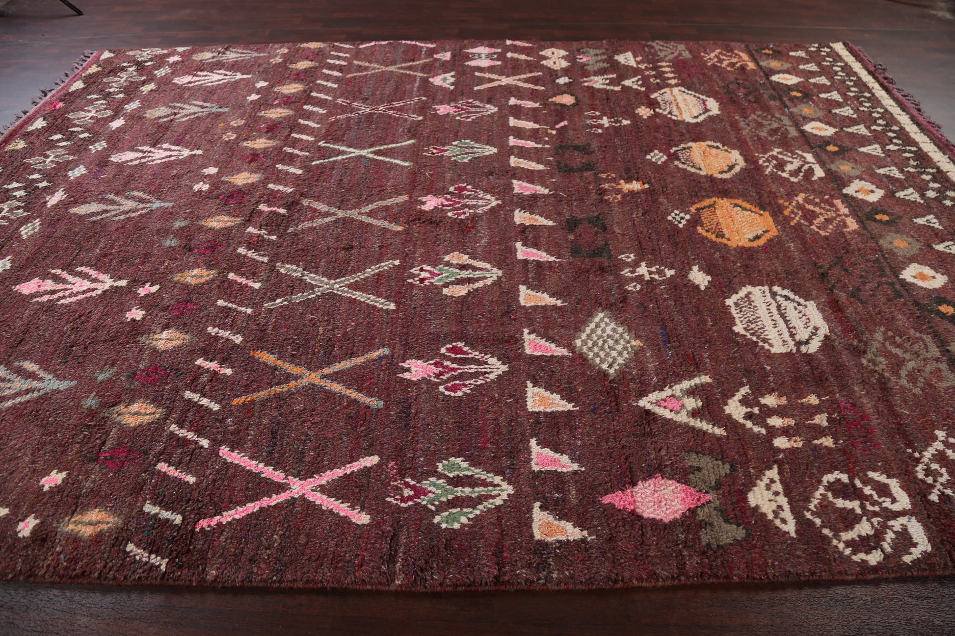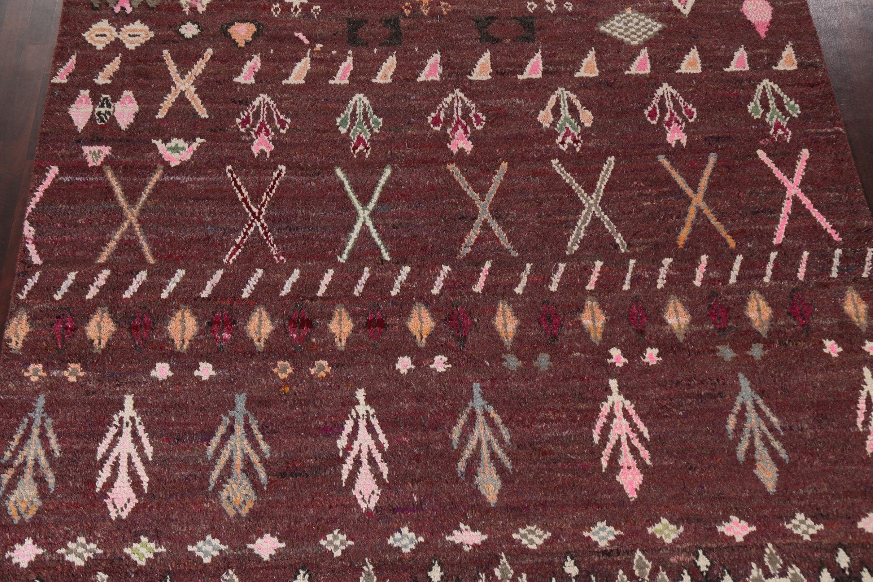 A Beautiful Genuine Morocco Moroccan rug is Hand Knotted by skillful weavers in Morocco with 100% Wool Material. This rug is in New, First Quality condition. dimensions are 12' 9'' X 9' 0'' in foot and 389 X 274 in centimeter. the primary color is Red.