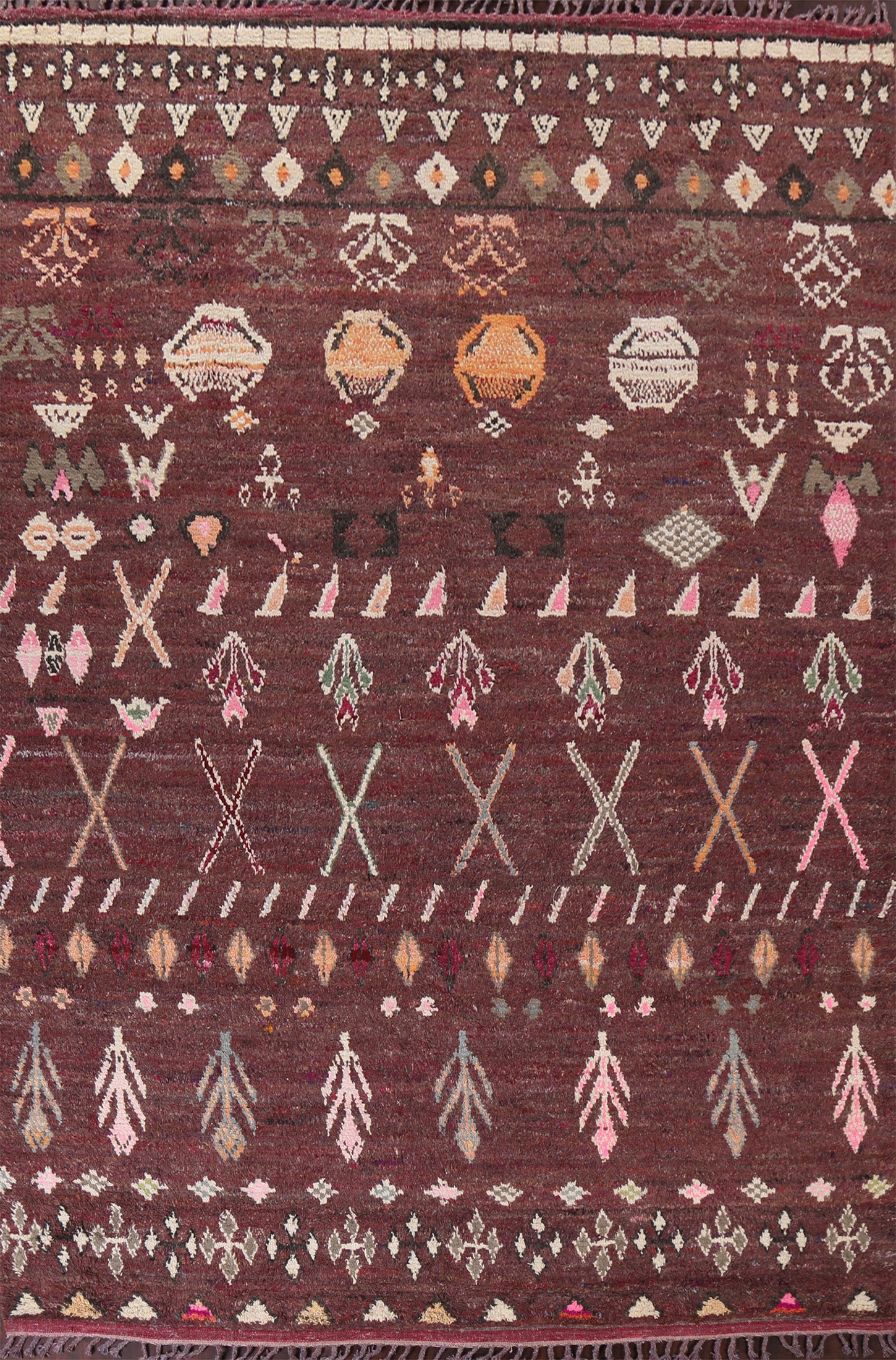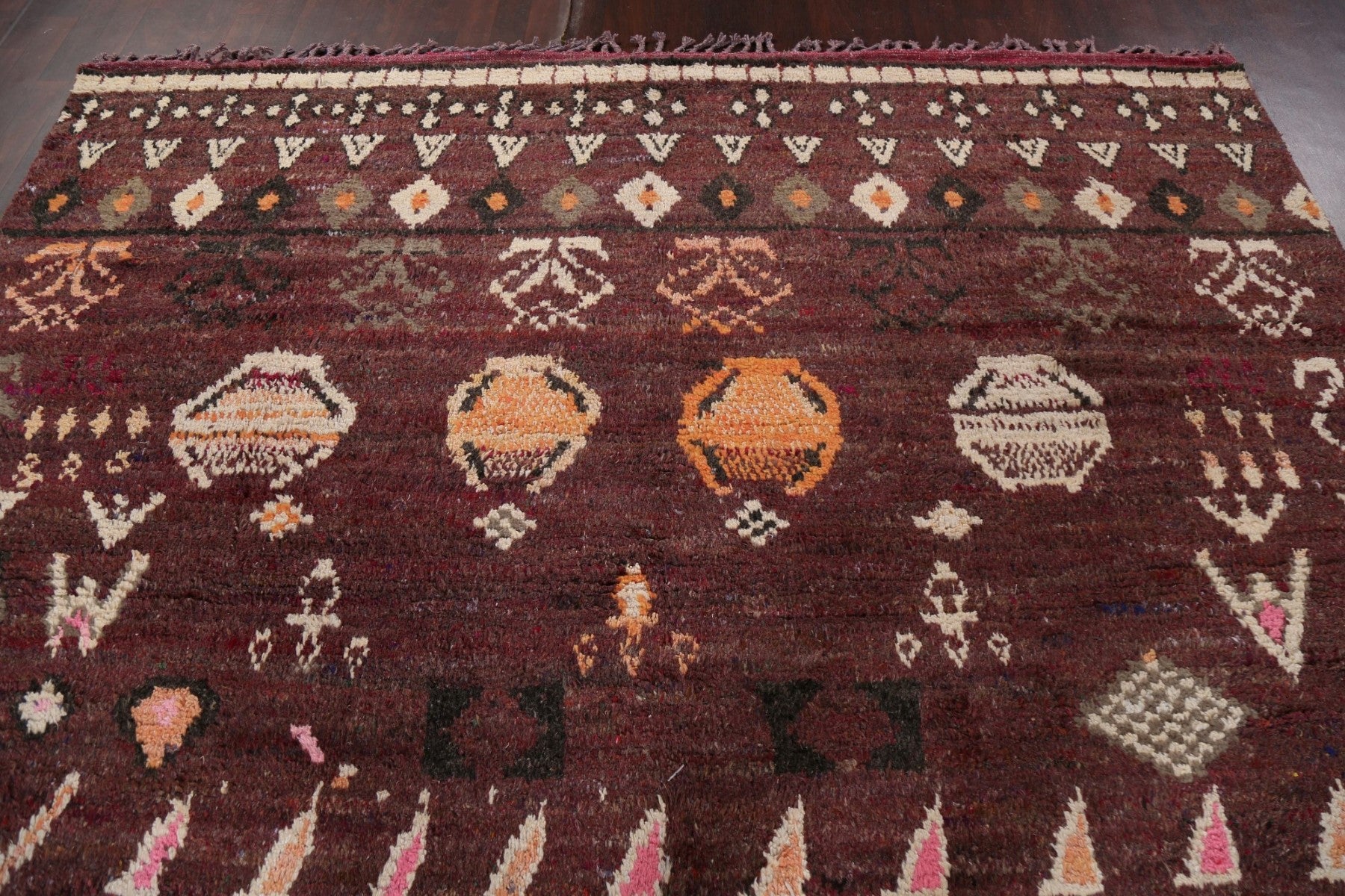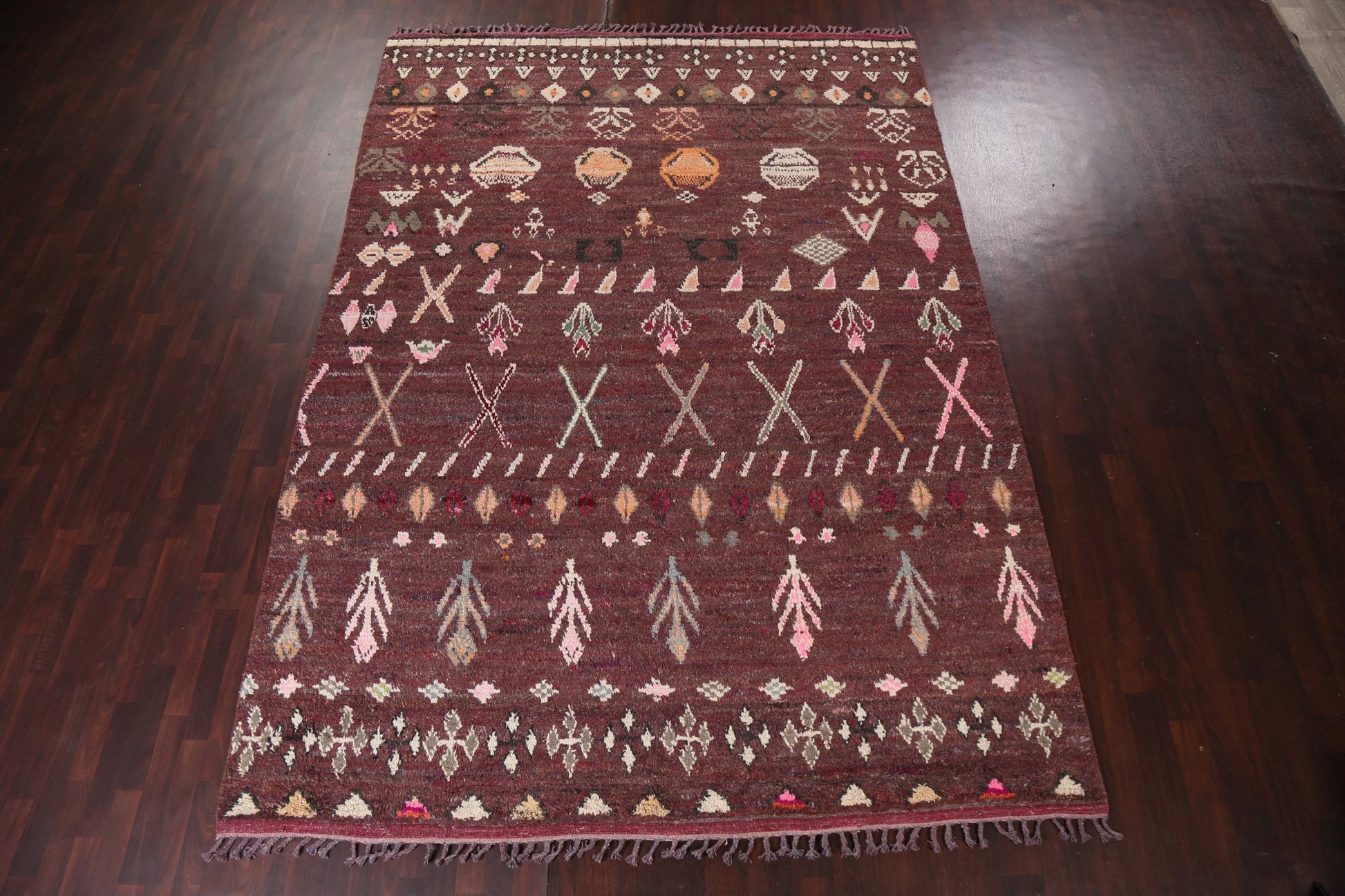 A Beautiful Genuine Morocco Moroccan rug is Hand Knotted by skillful weavers in Morocco with 100% Wool Material. This rug is in New, First Quality condition. dimensions are 12' 9'' X 9' 0'' in foot and 389 X 274 in centimeter. the primary color is Red.