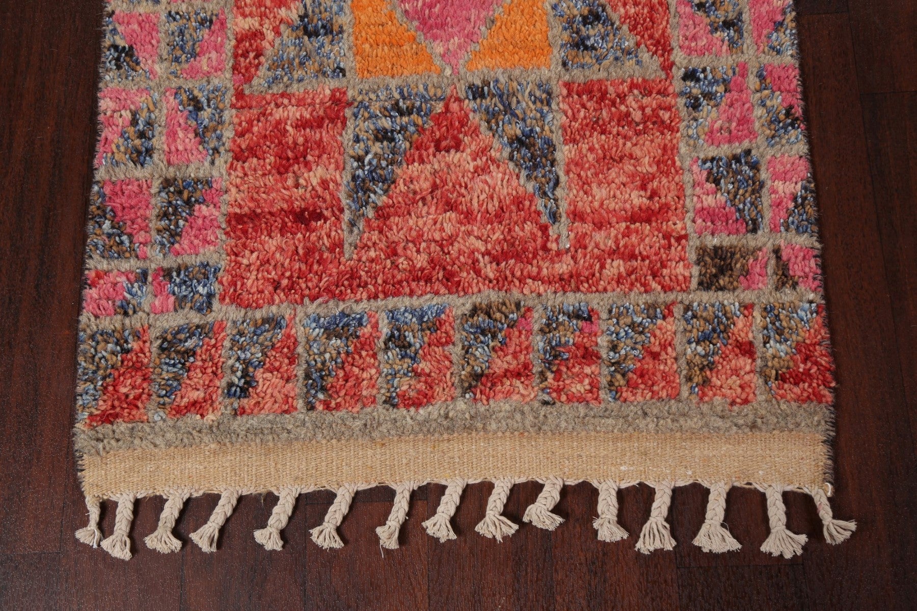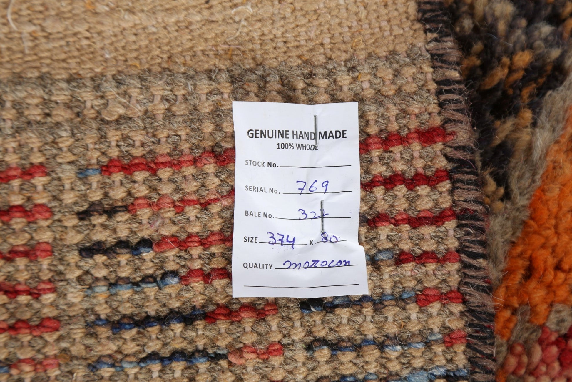 A Beautiful Genuine Morocco Moroccan rug is Hand Knotted by skillful weavers in Morocco with 100% Wool Material. This rug is in New, First Quality condition. dimensions are 12' 7'' X 2' 8'' in foot and 384 X 81 in centimeter. the primary color is Multi-Colored.