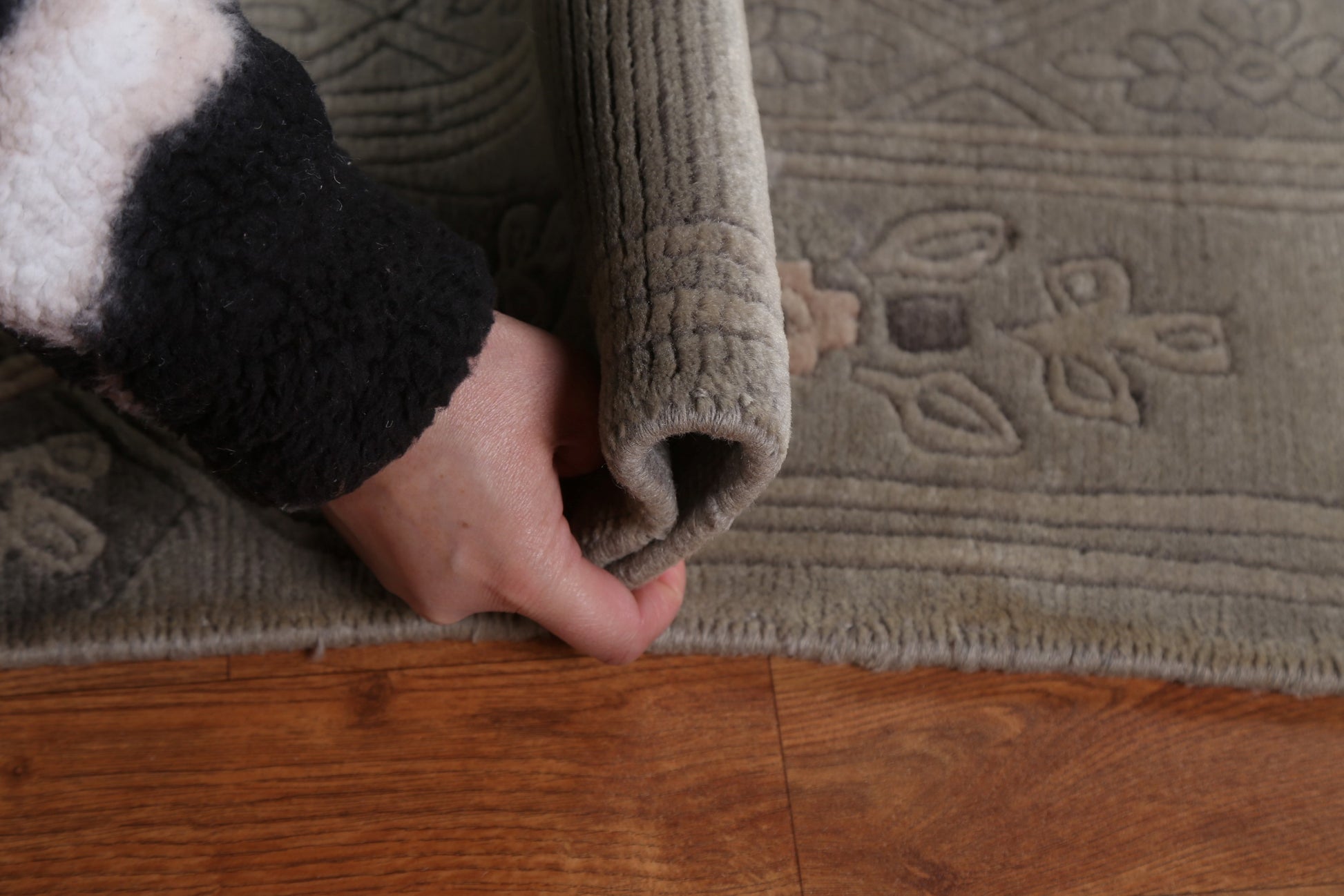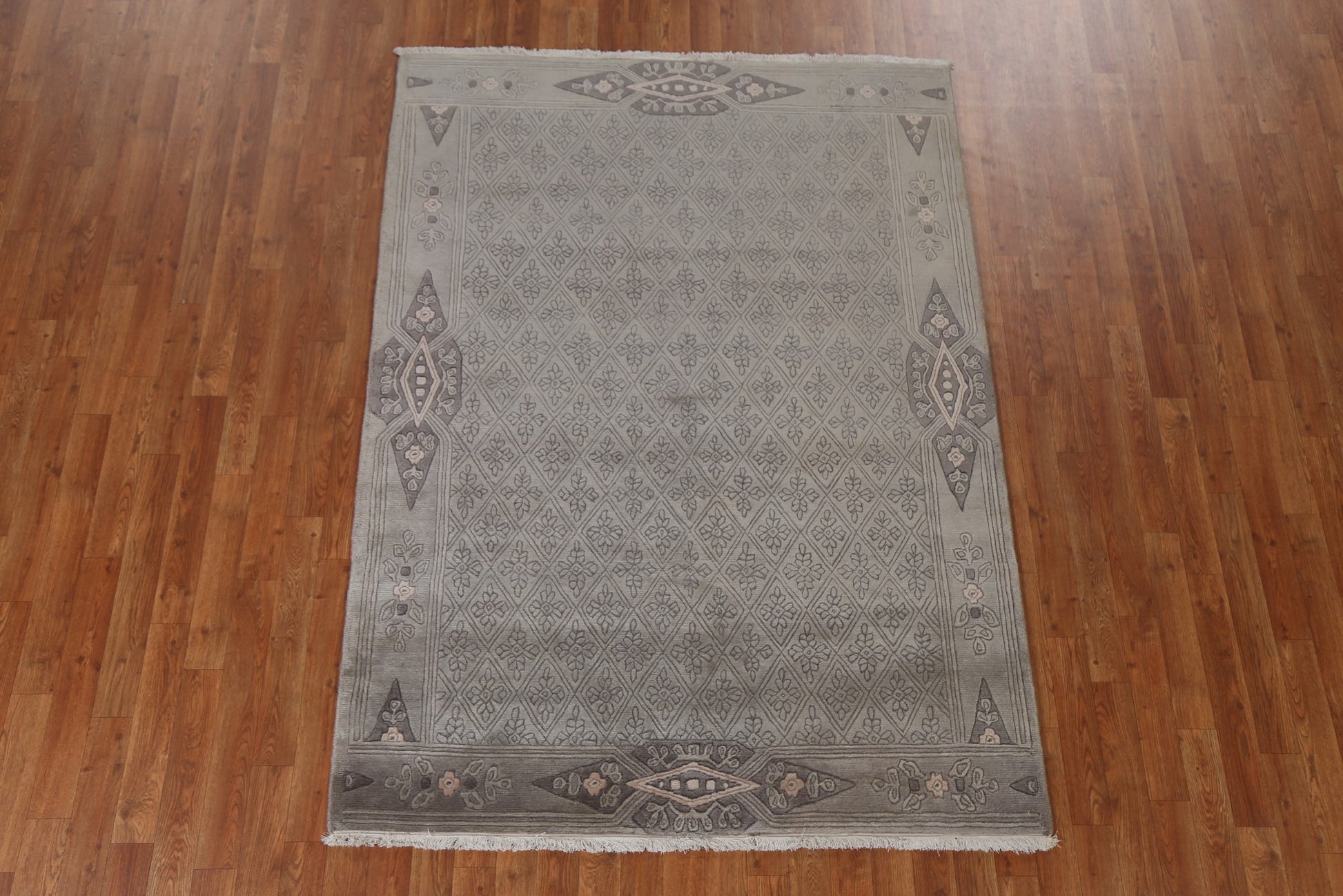 A Beautiful Genuine India Nepalese rug is Hand Knotted by skillful weavers in India with 100% Wool Material. This rug is in New, First Quality condition. dimensions are 6' 8'' X 4' 10'' in foot and 203 X 147 in centimeter. the primary color is Greys & Charcoal.