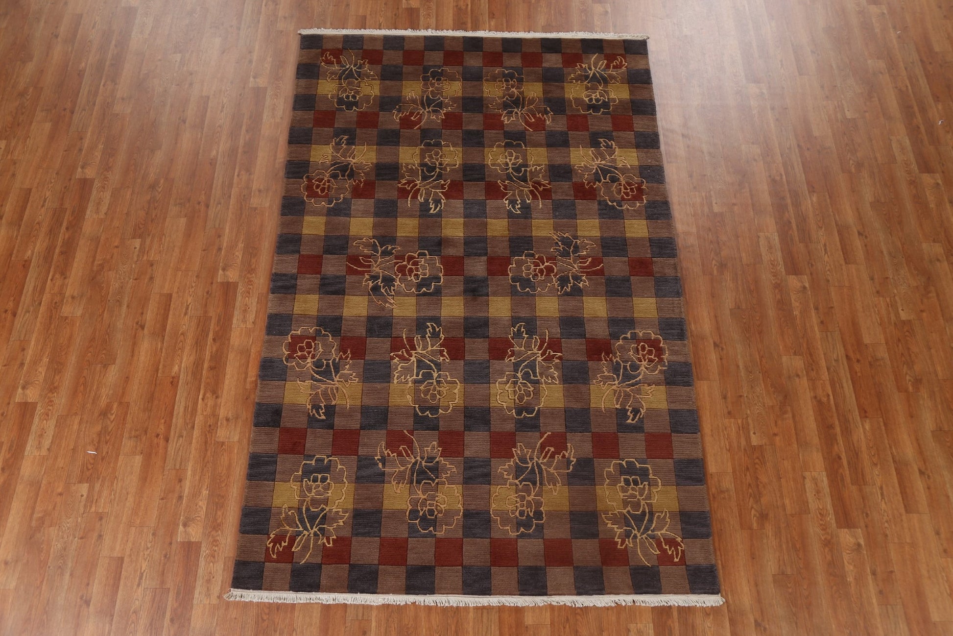 Geometric Nepalese Handmade Wool Rug 5x8