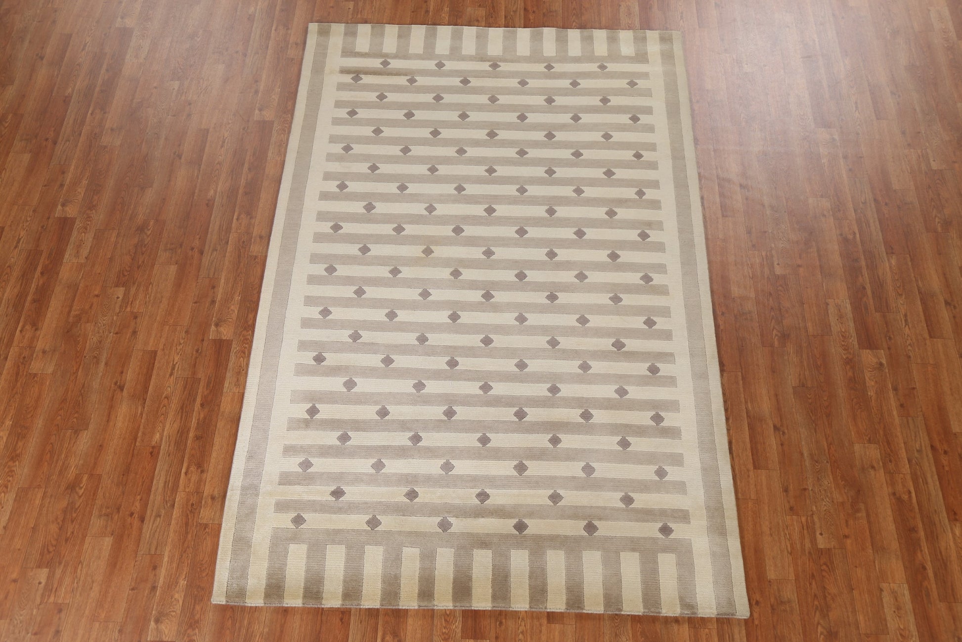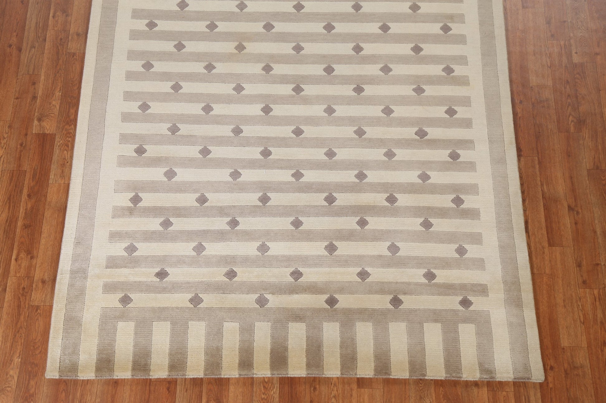 A Beautiful Genuine India Nepalese rug is Hand Knotted by skillful weavers in India with 100% Wool Material. This rug is in New, First Quality condition. dimensions are 8' 0'' X 5' 3'' in foot and 244 X 160 in centimeter. the primary color is Beige & Ivories.