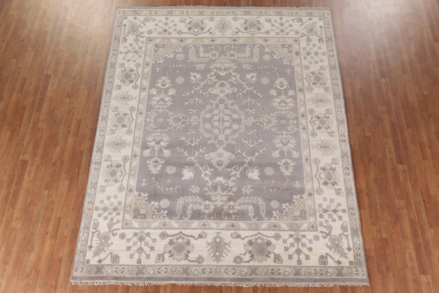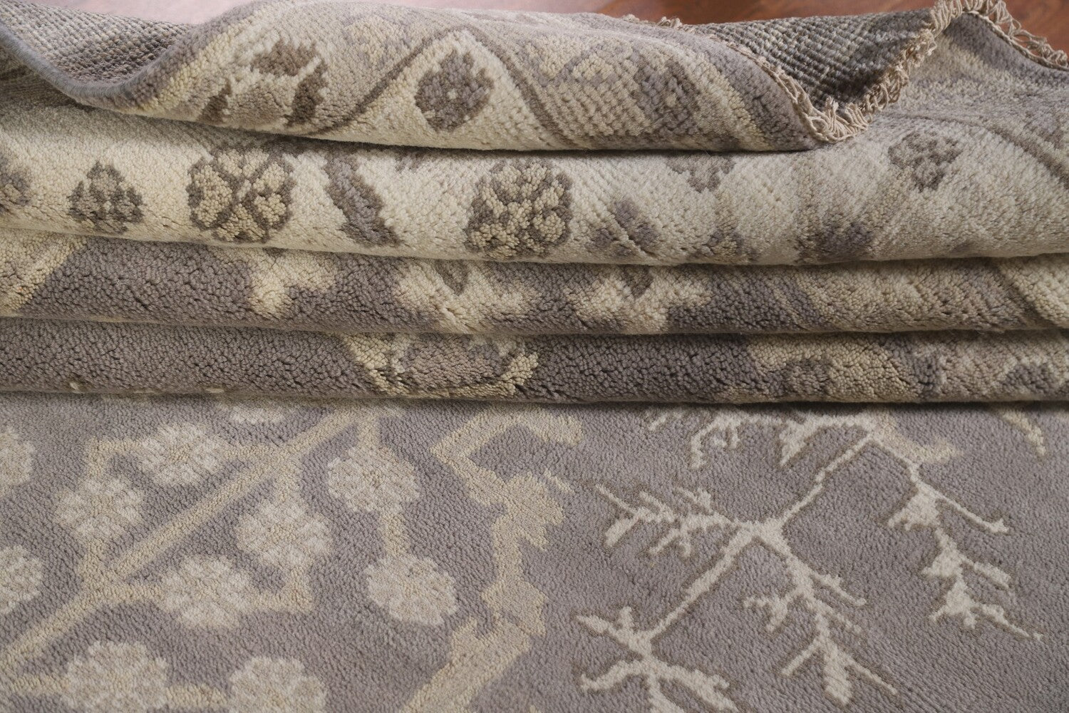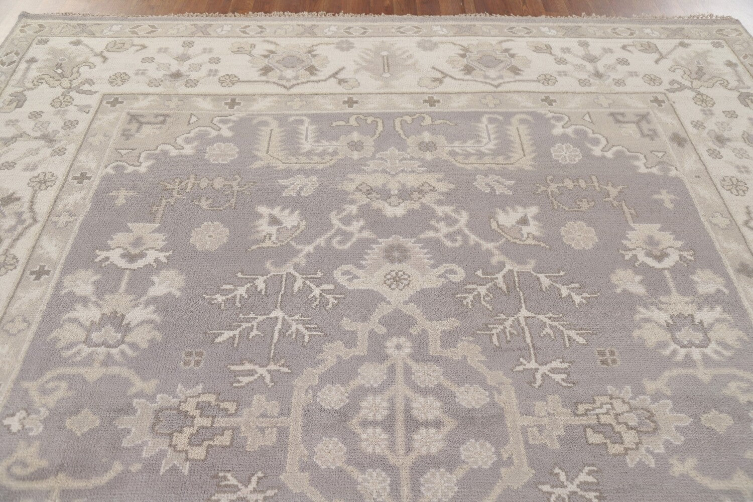 A Beautiful Genuine India Oushak rug is Hand Knotted by skillful weavers in India with 100% Wool Material. This rug is in New, First Quality condition. dimensions are 10' 0'' X 8' 1'' in foot and 305 X 246 in centimeter. the primary color is Greys & Charcoal.