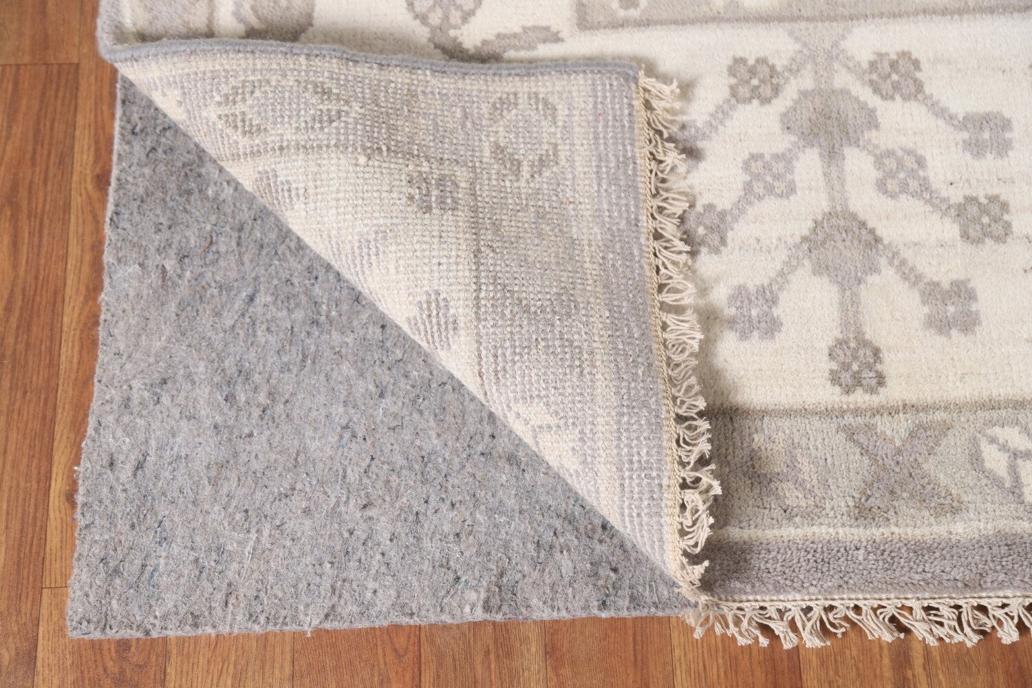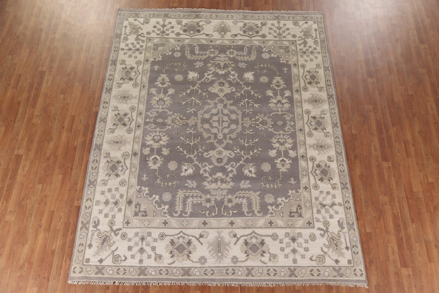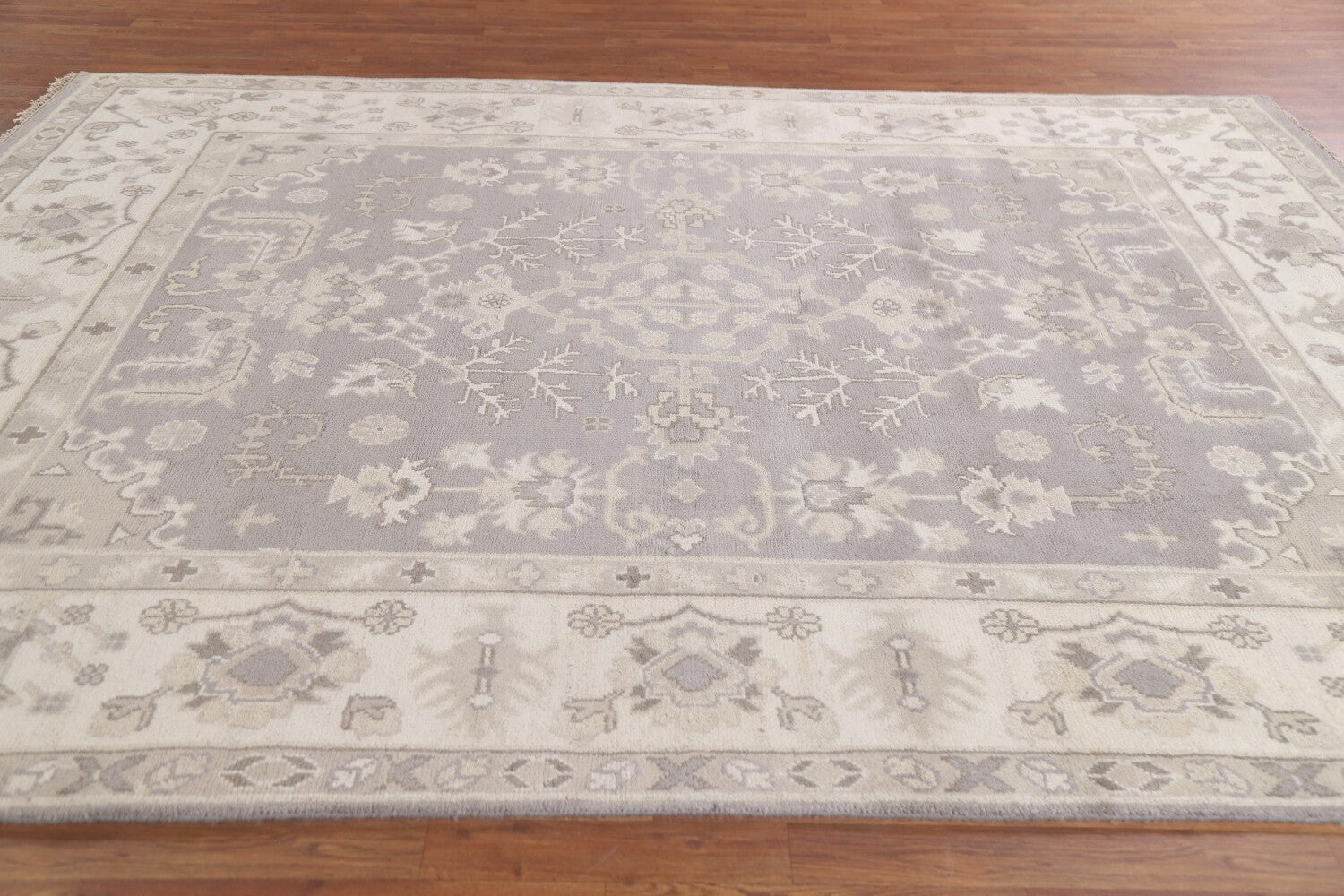 A Beautiful Genuine India Oushak rug is Hand Knotted by skillful weavers in India with 100% Wool Material. This rug is in New, First Quality condition. dimensions are 10' 0'' X 8' 1'' in foot and 305 X 246 in centimeter. the primary color is Greys & Charcoal.