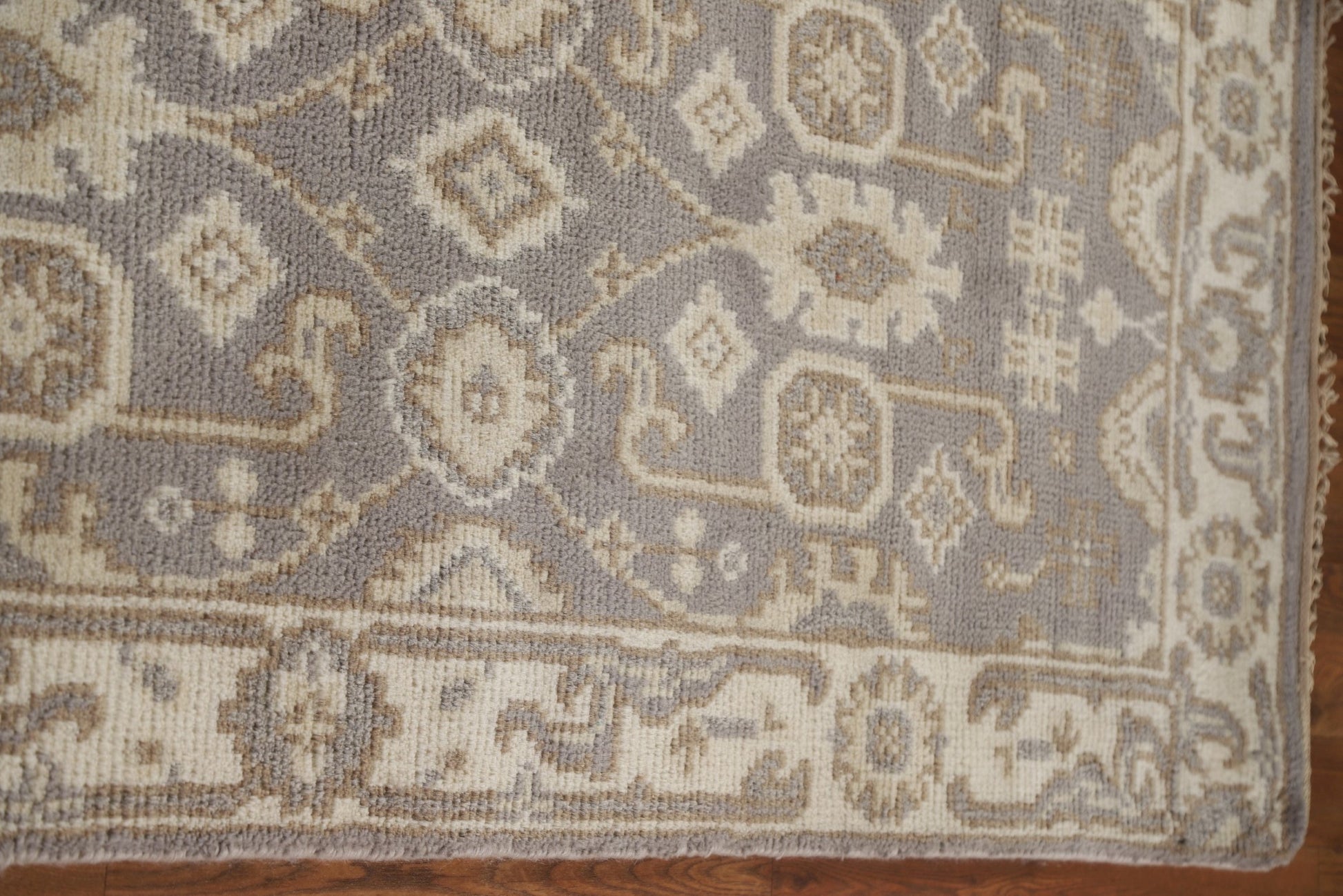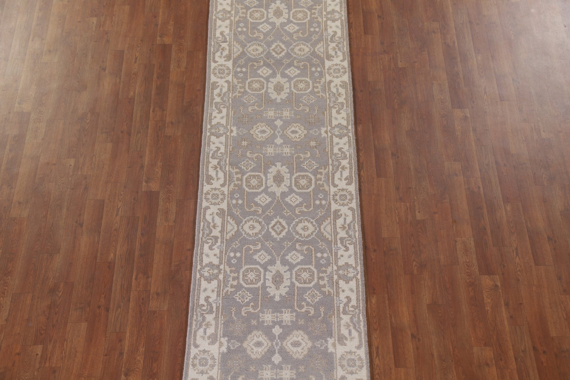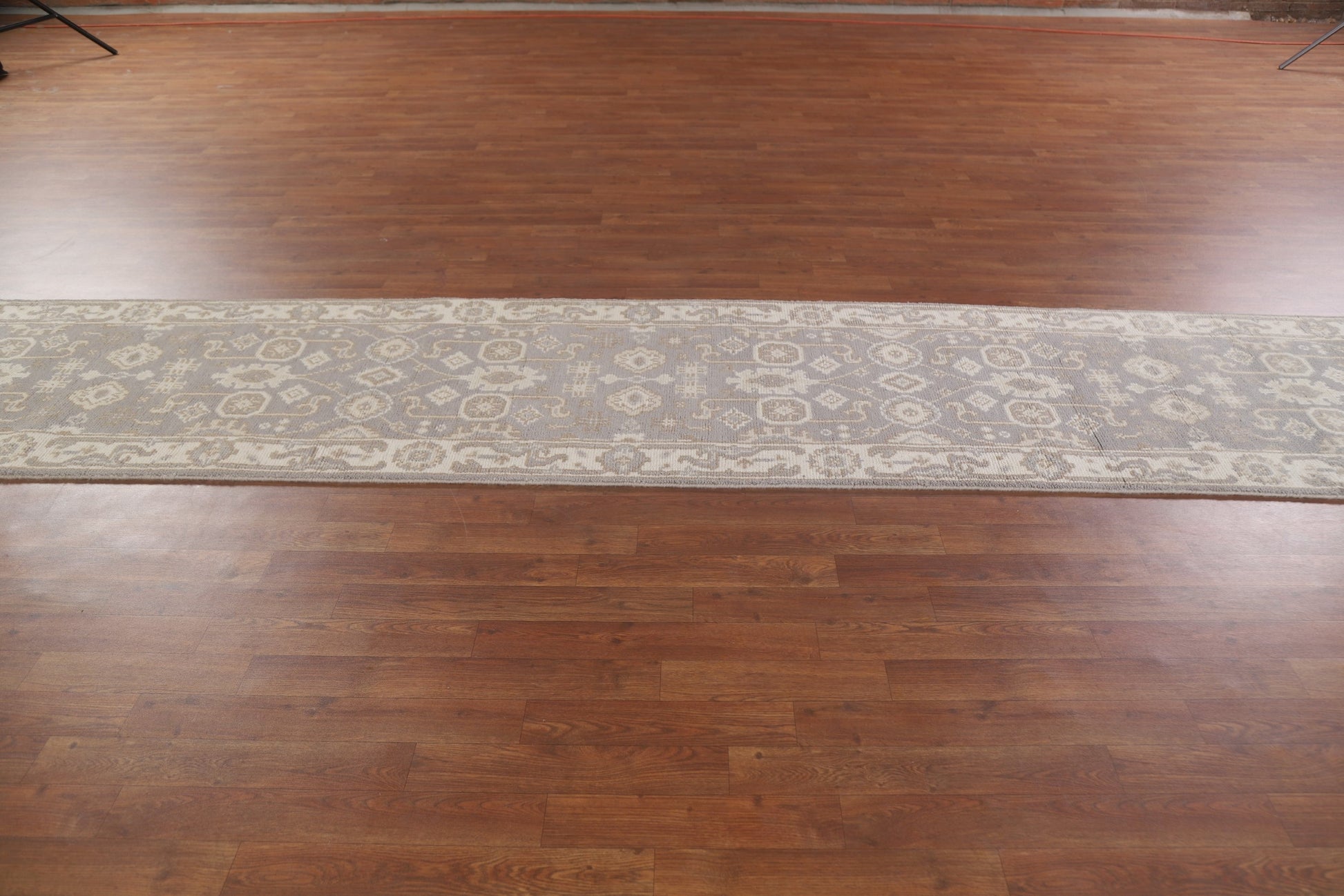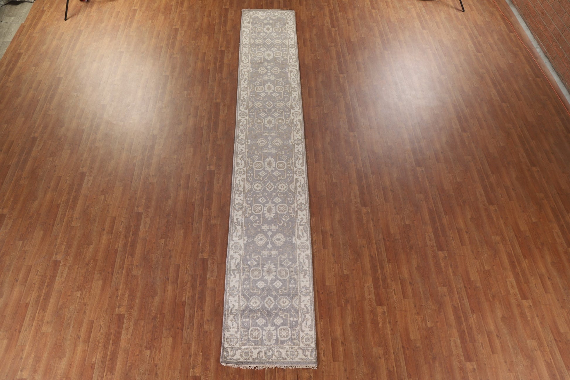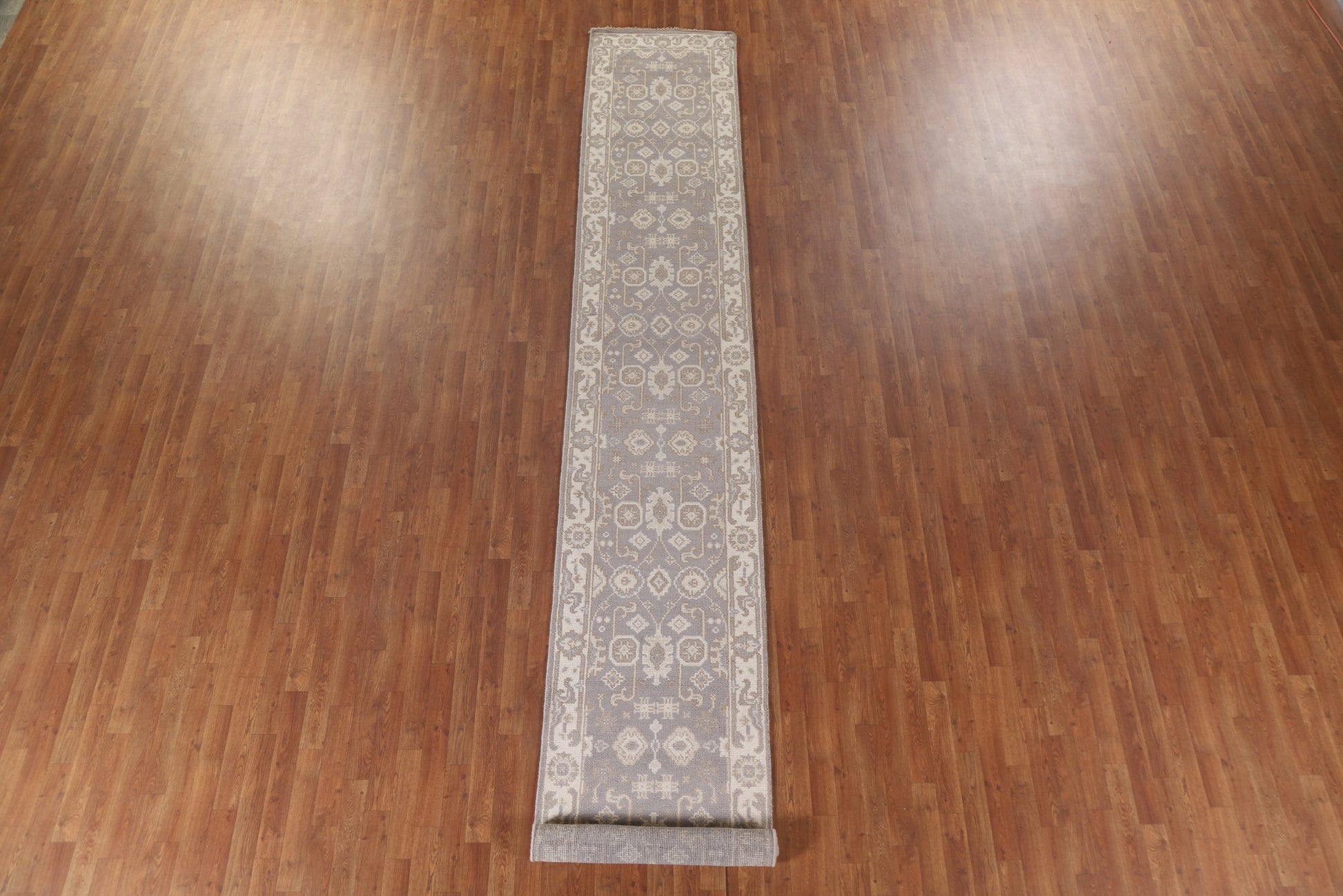 A Beautiful Genuine India Oushak rug is Hand Knotted by skillful weavers in India with 100% Wool Material. This rug is in New, First Quality condition. dimensions are 16' 0'' X 2' 6'' in foot and 488 X 76 in centimeter. the primary color is Greys & Charcoal.