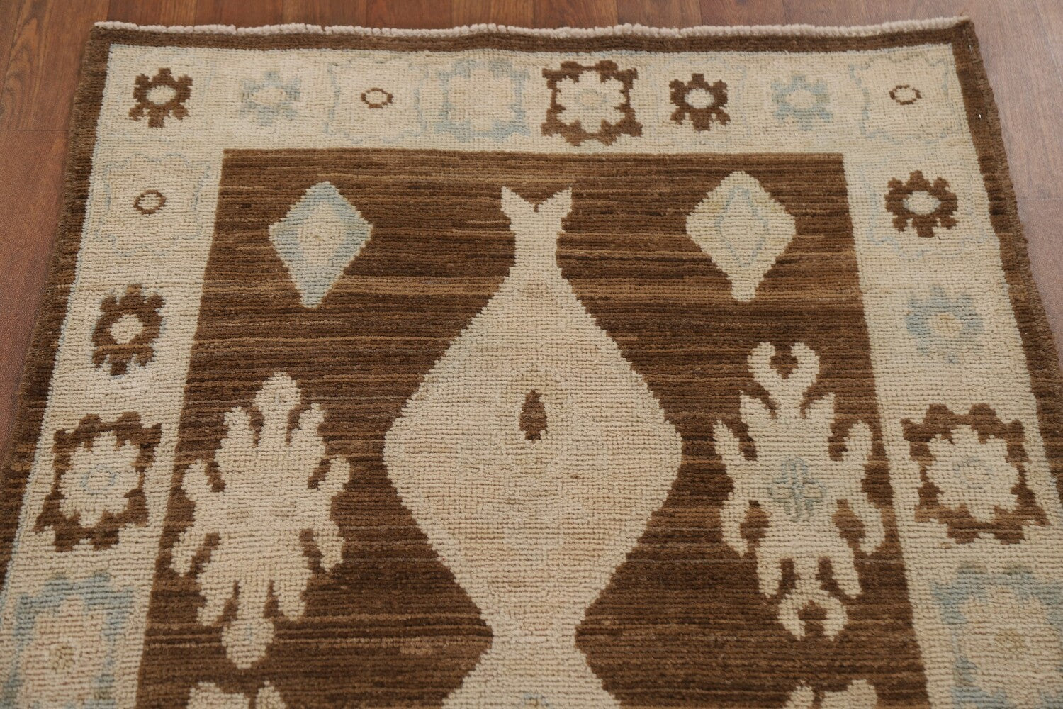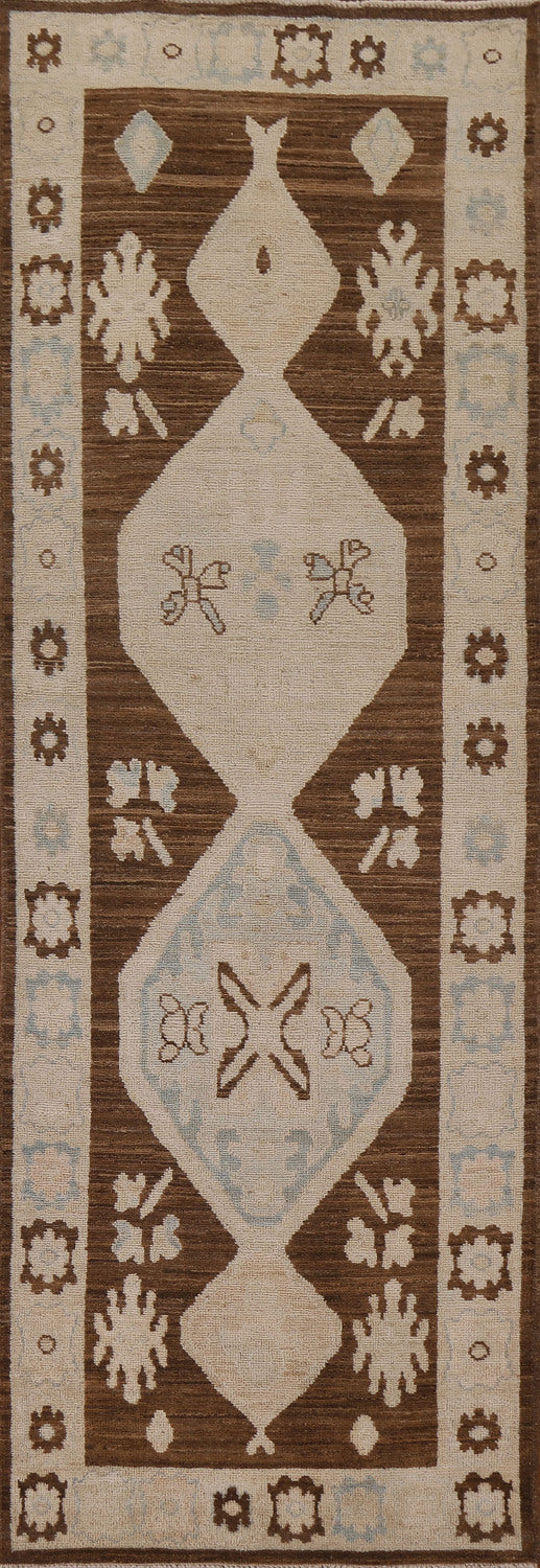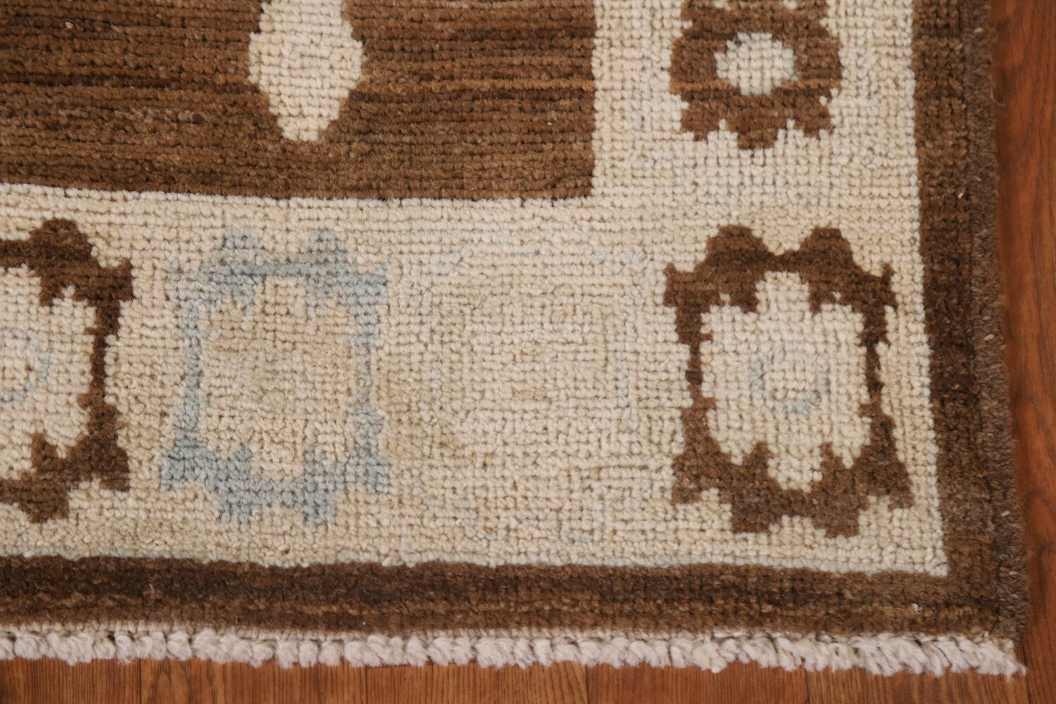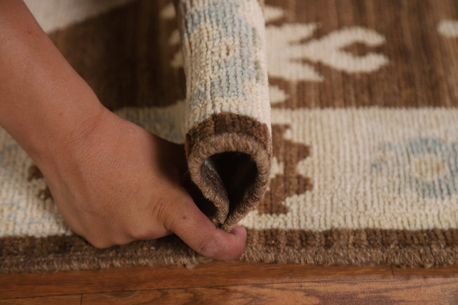 A Beautiful Genuine Turkey Oushak rug is Hand Knotted by skillful weavers in Turkey with 100% Wool Material. This rug is in New, First Quality condition. dimensions are 9' 1'' X 2' 10'' in foot and 277 X 86 in centimeter. the primary color is Brown.