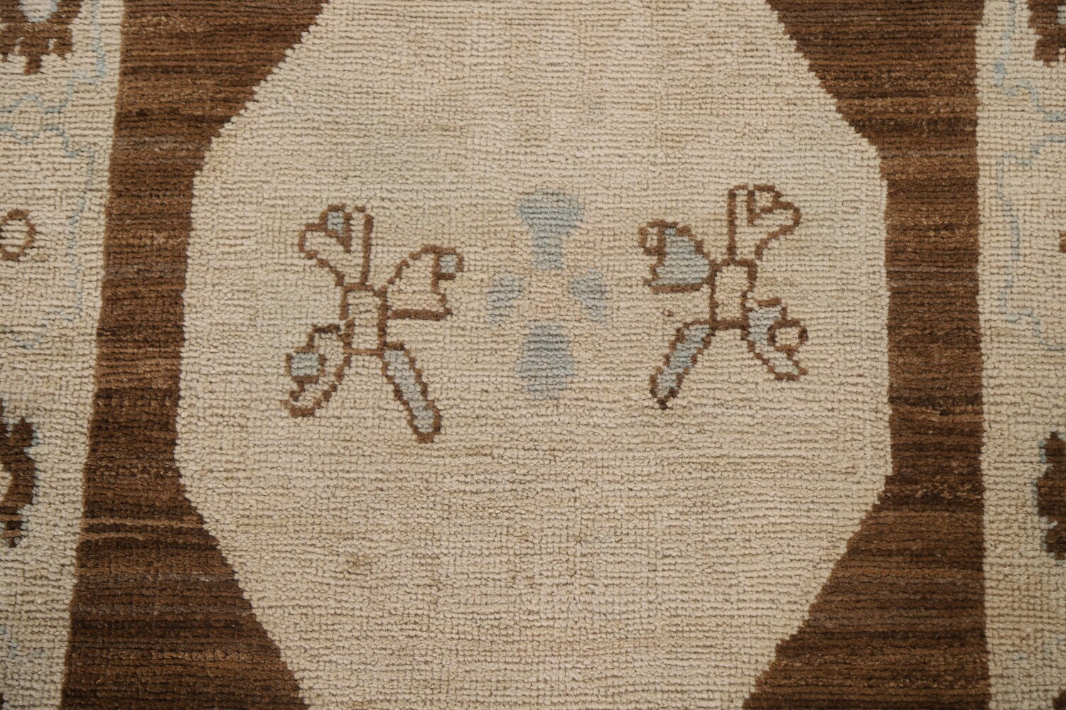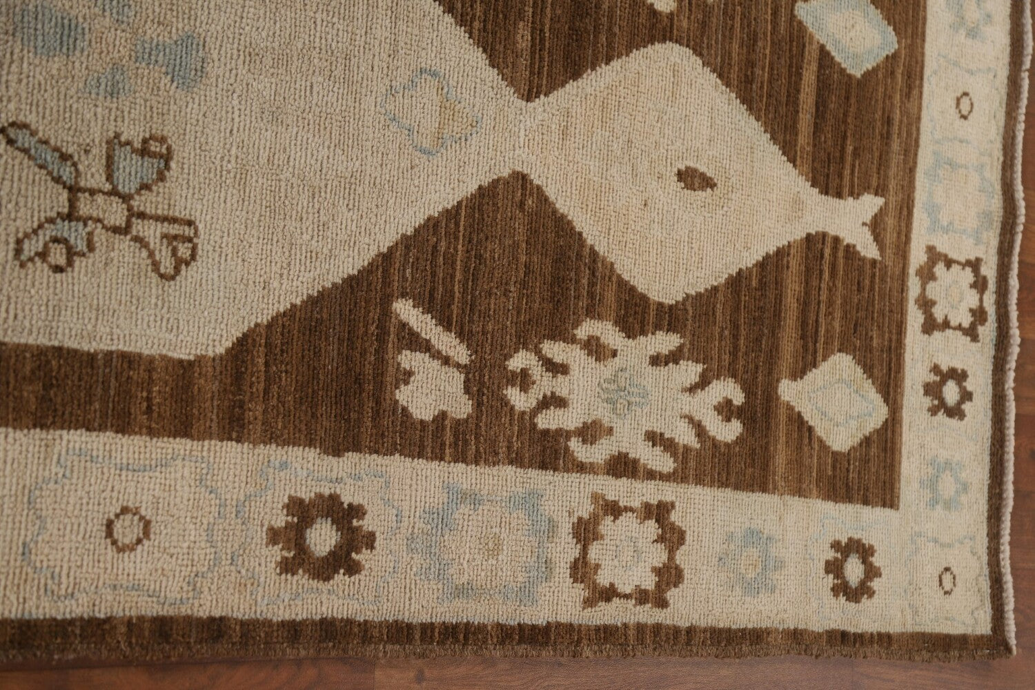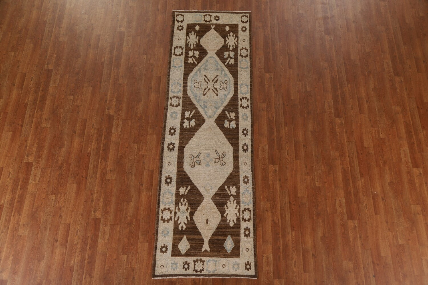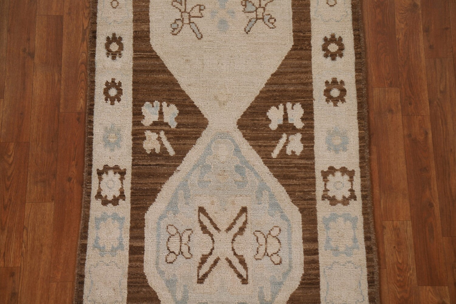 A Beautiful Genuine Turkey Oushak rug is Hand Knotted by skillful weavers in Turkey with 100% Wool Material. This rug is in New, First Quality condition. dimensions are 9' 1'' X 2' 10'' in foot and 277 X 86 in centimeter. the primary color is Brown.