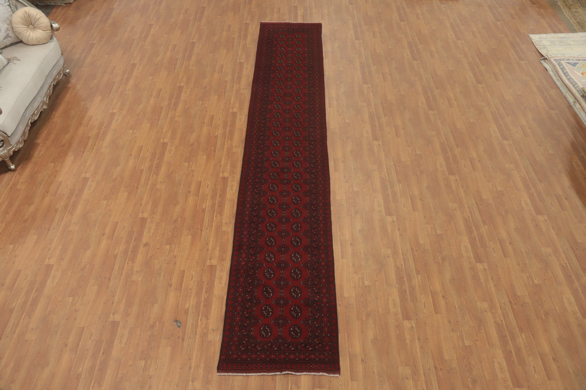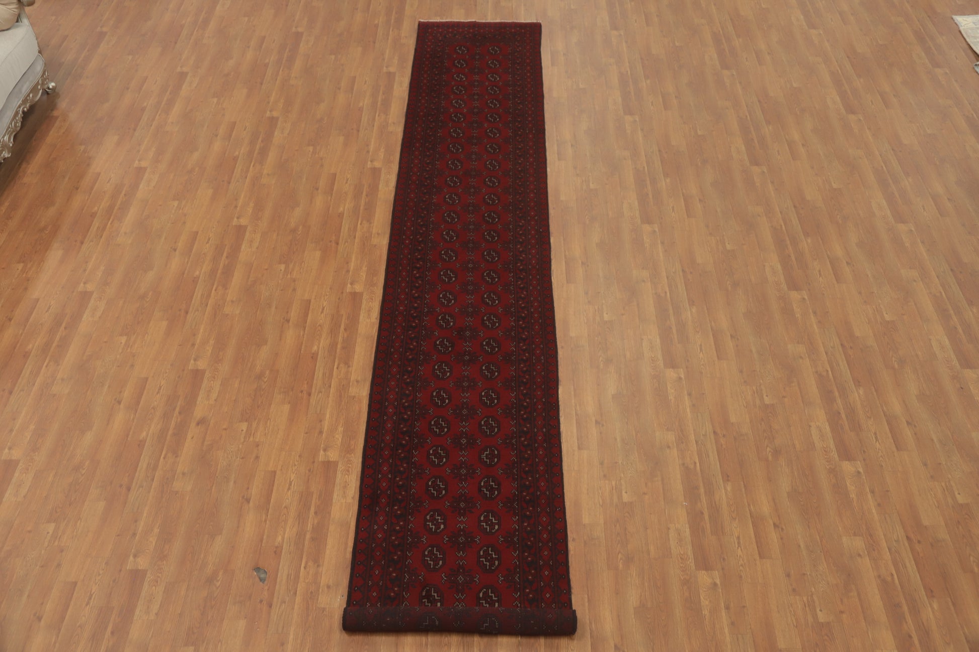 Geometric Red Balouch Afghan Runner Rug 3x16