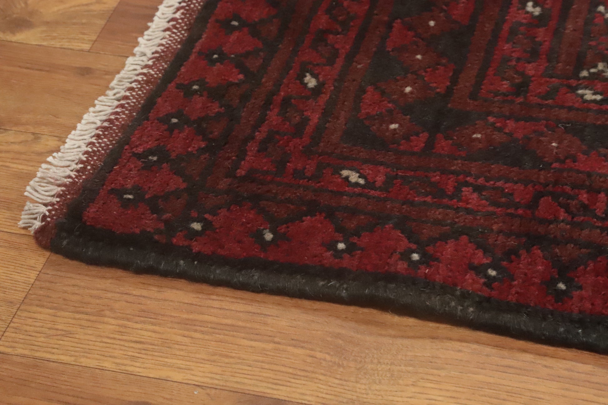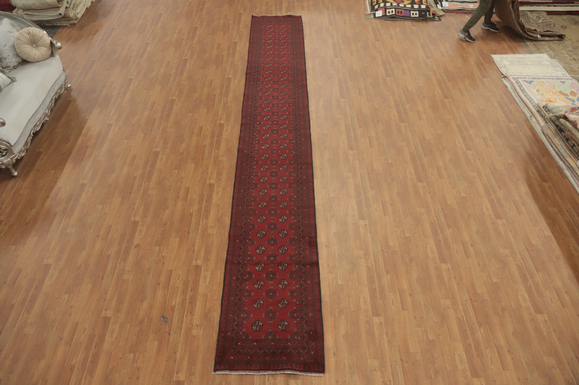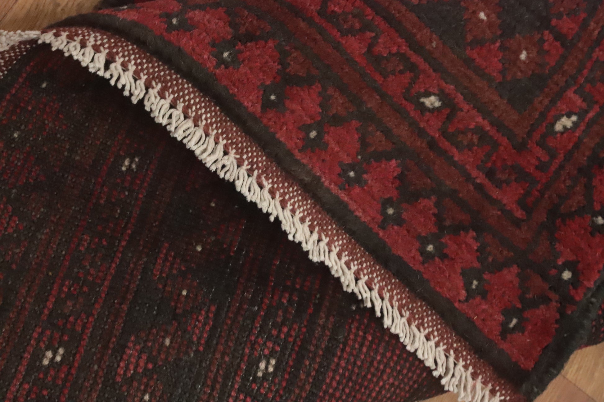 Geometric Red Balouch Afghan Runner Rug 3x19