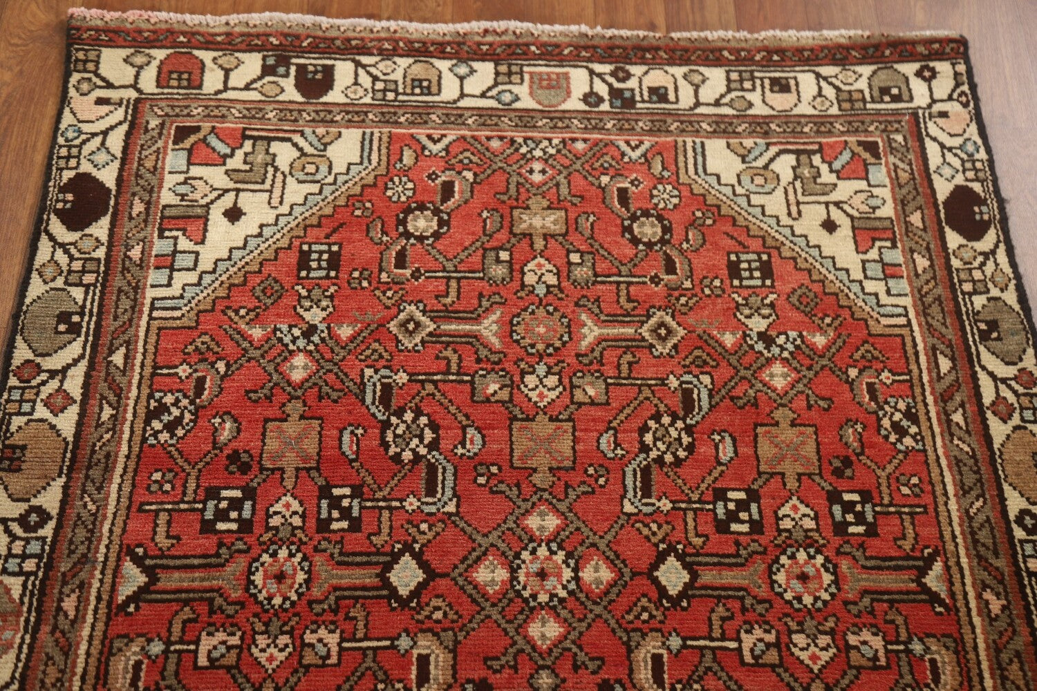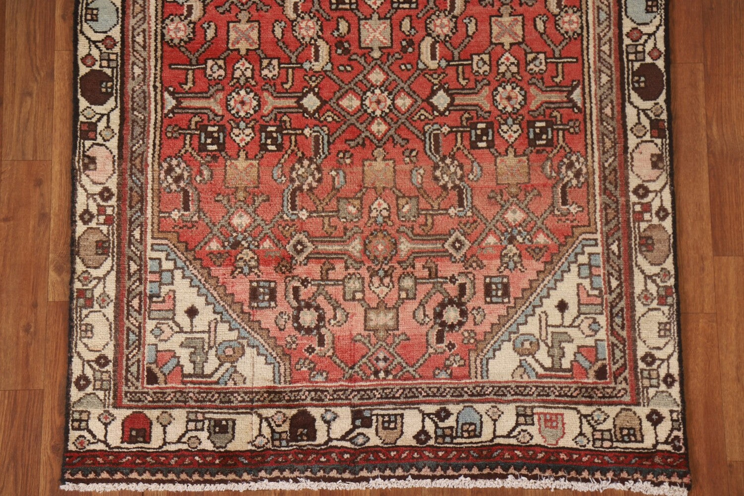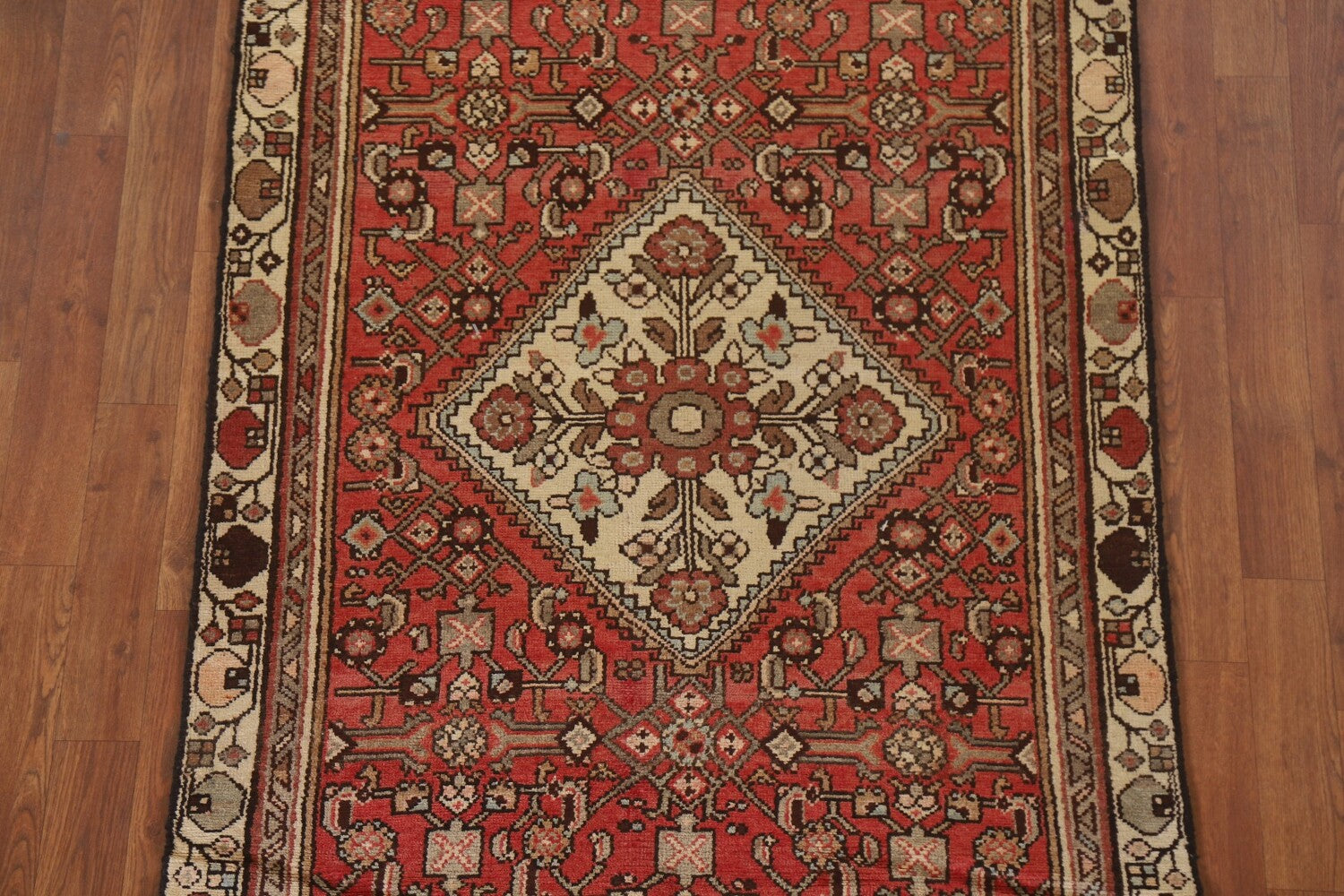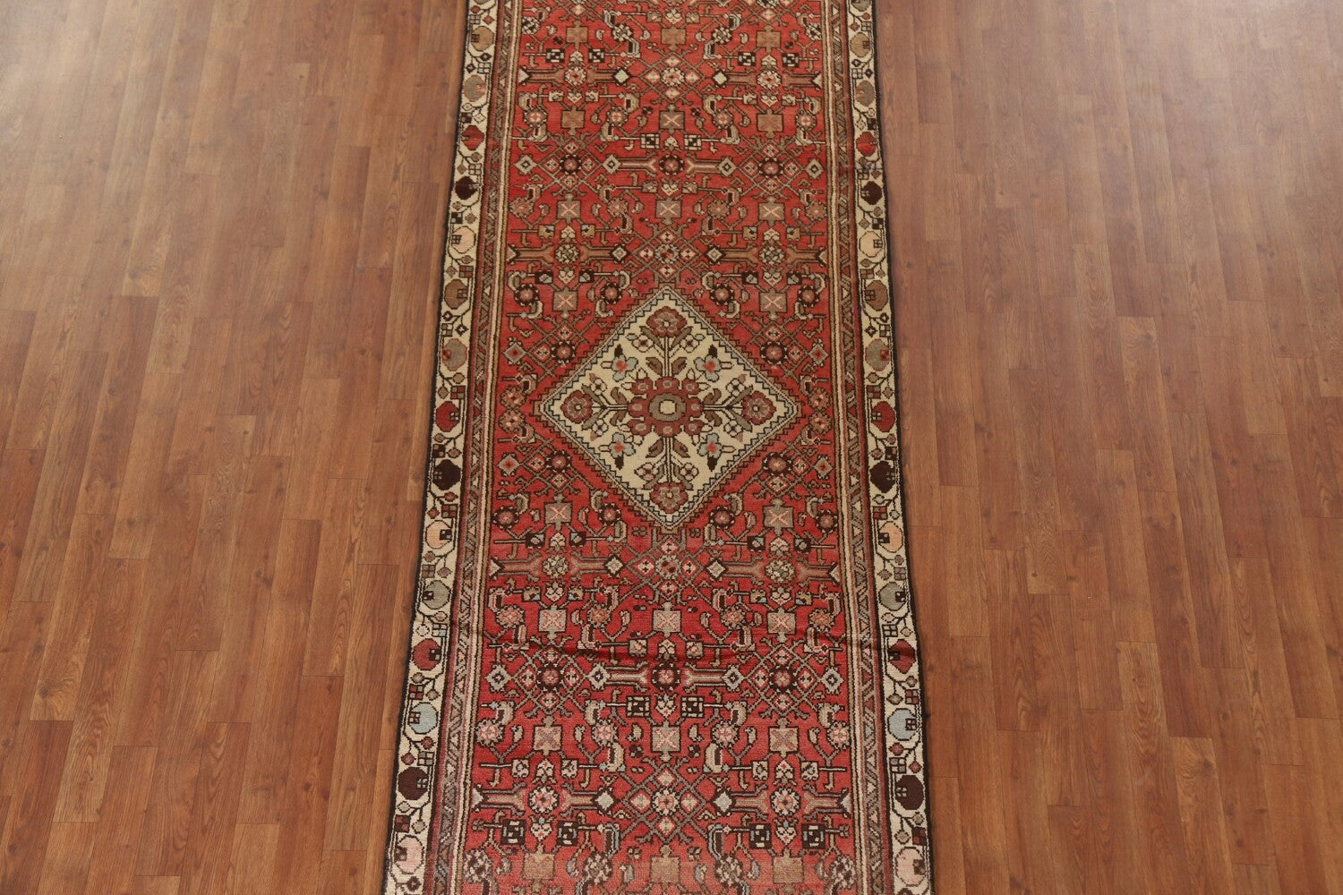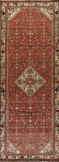 Geometric Red Hamedan Persian Runner Rug 3x10