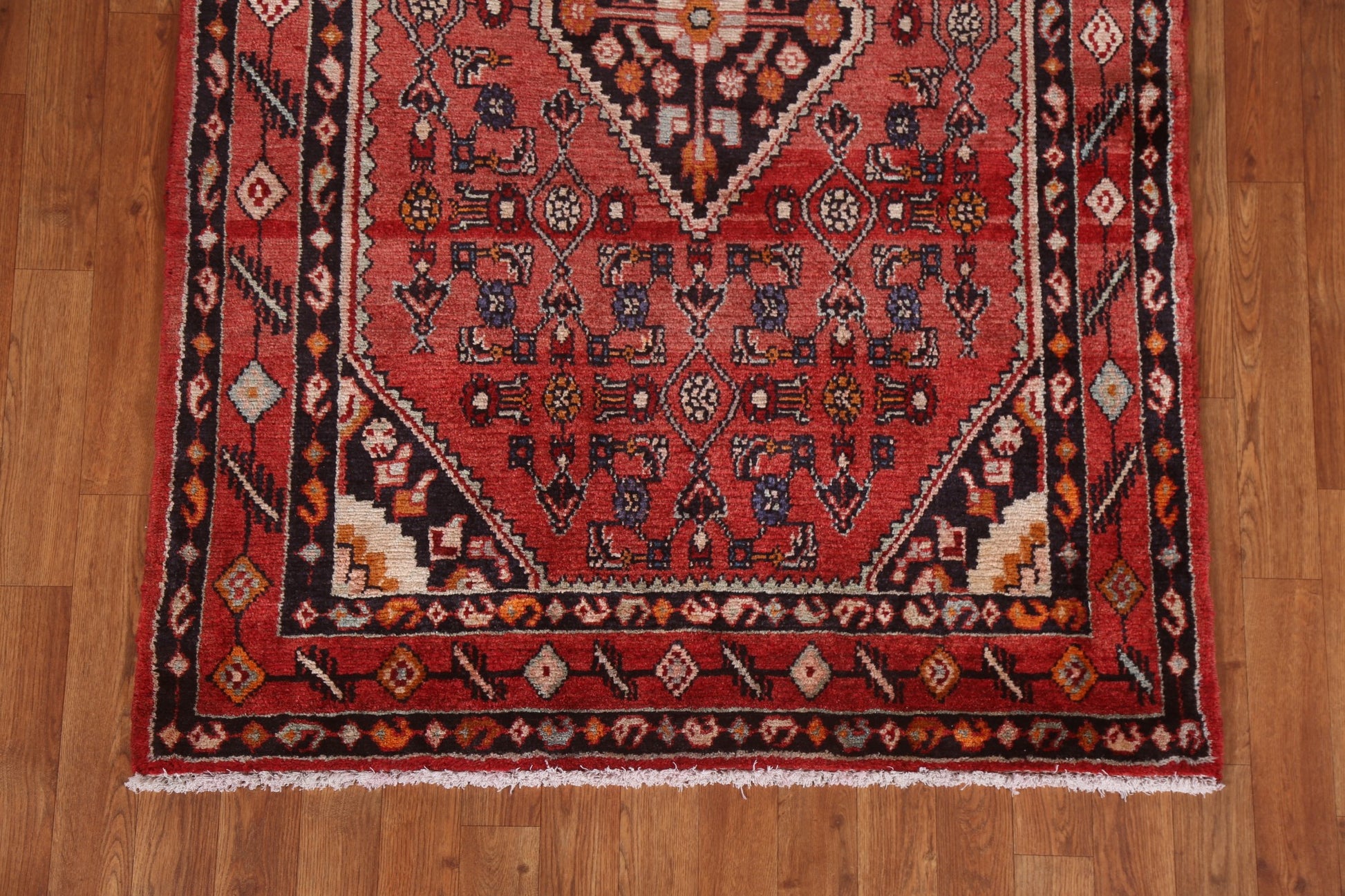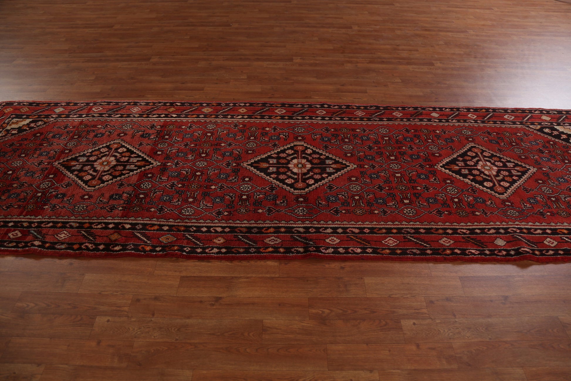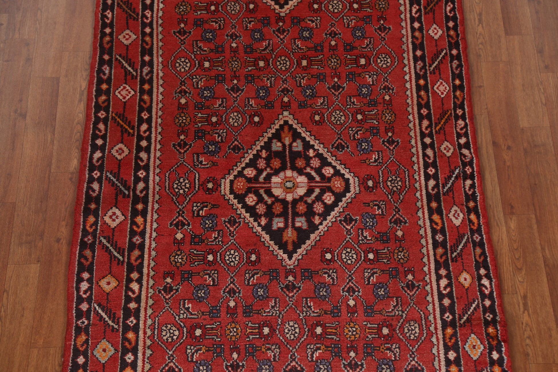 Geometric Red Hamedan Persian Runner Rug 4x12