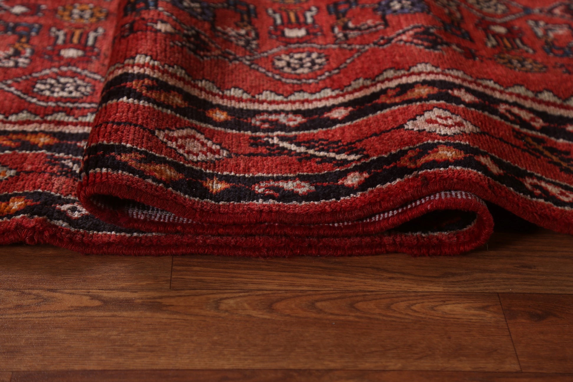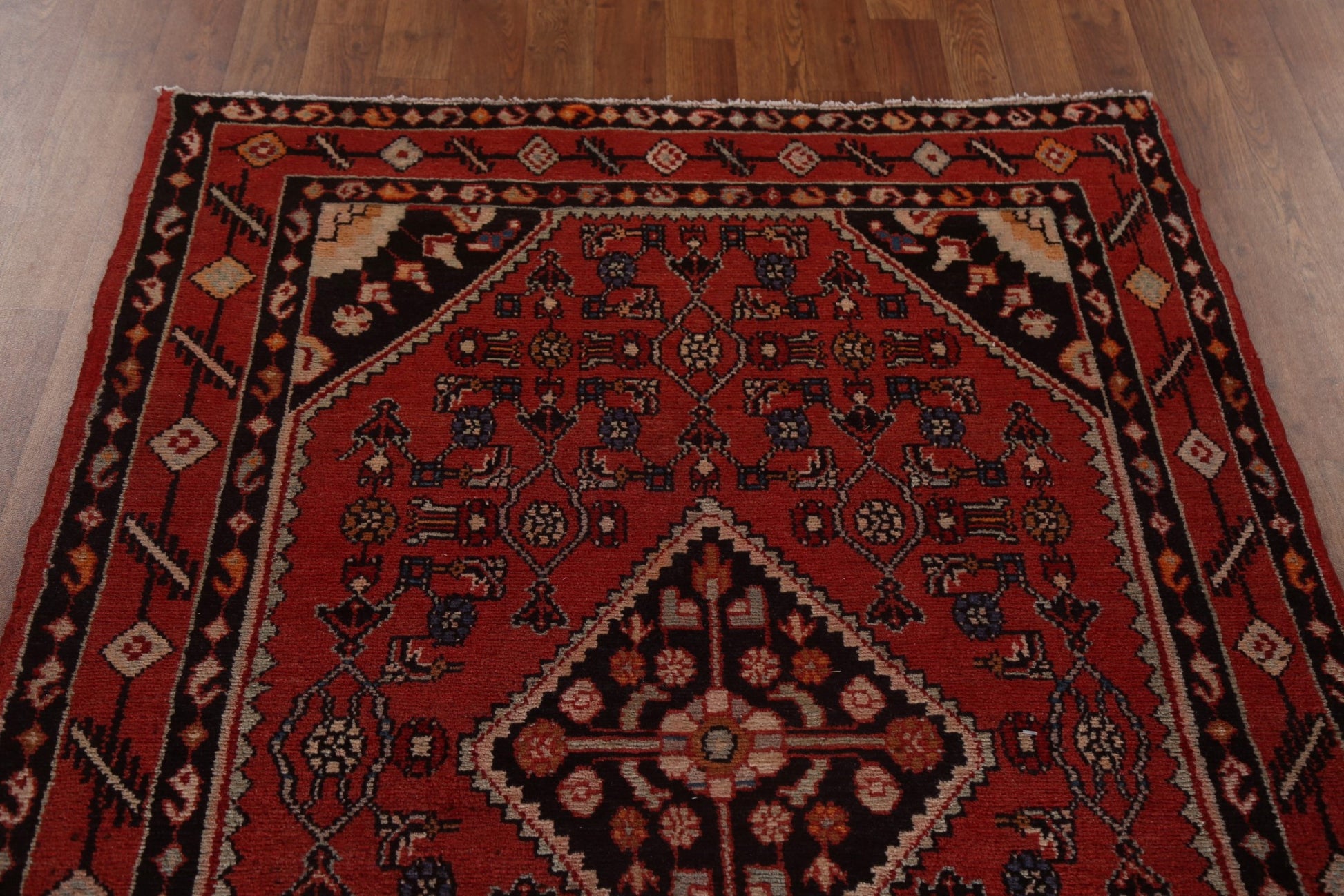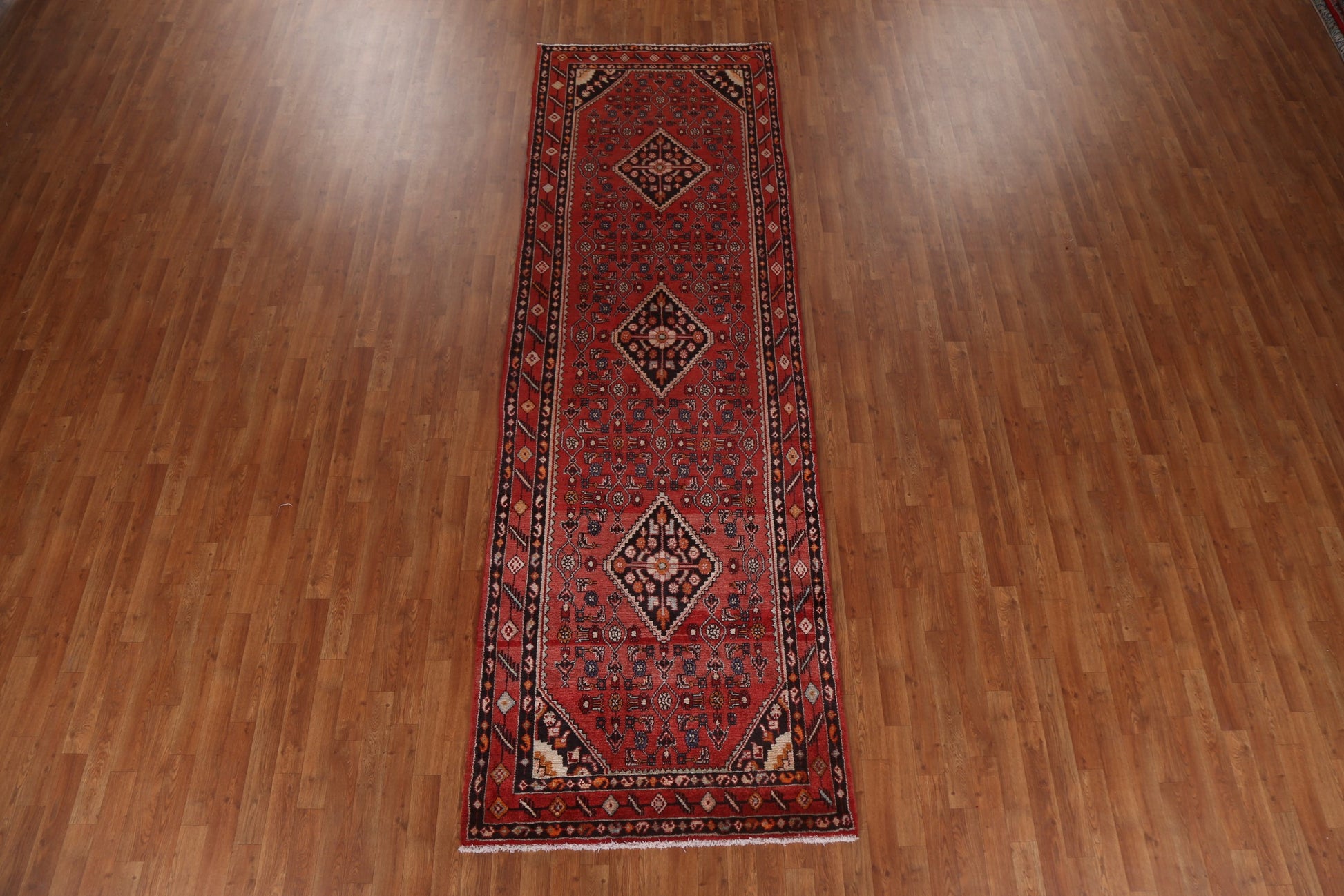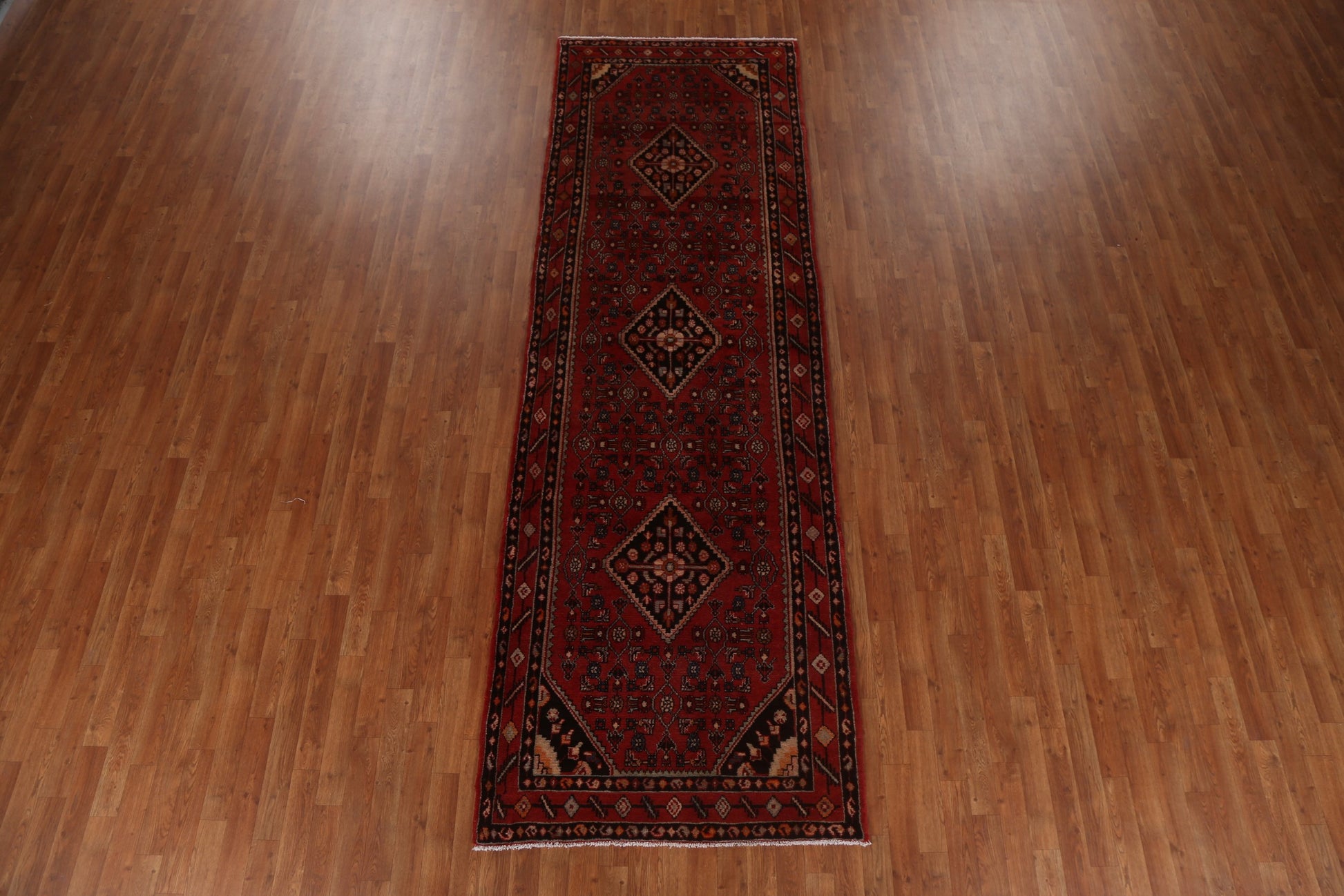 Geometric Red Hamedan Persian Runner Rug 4x12