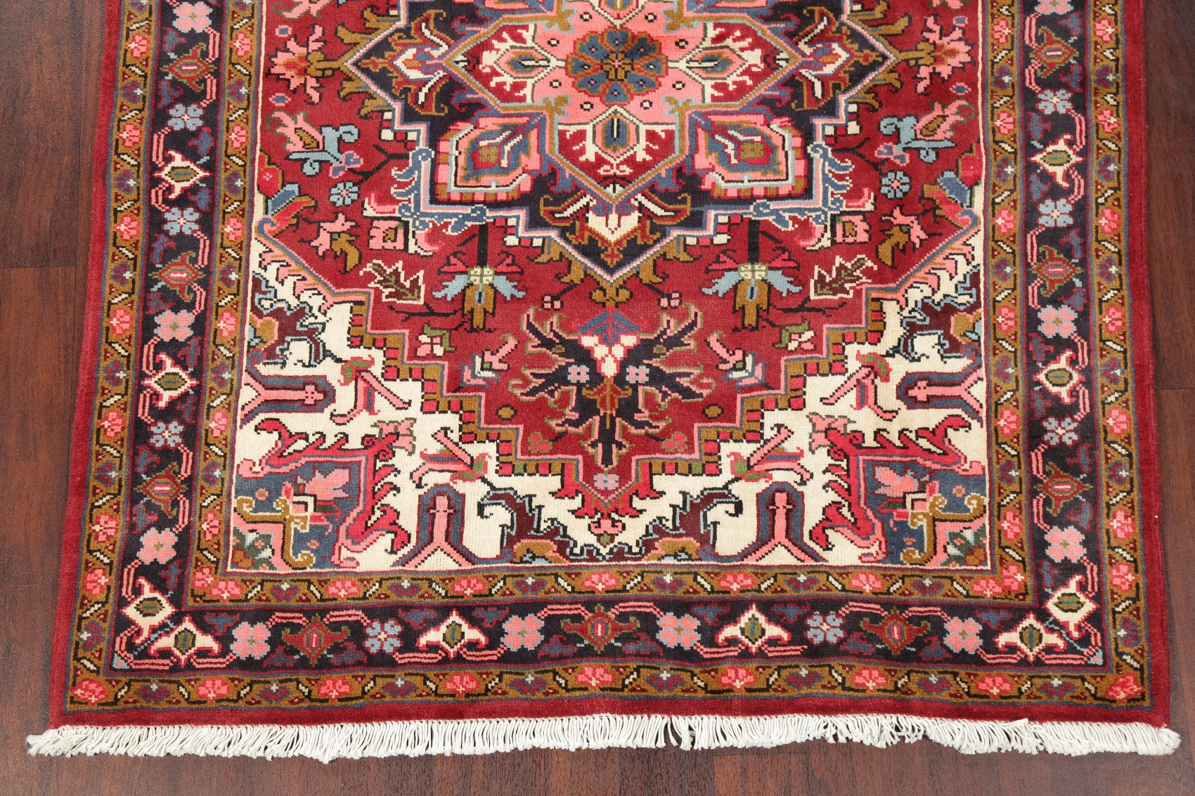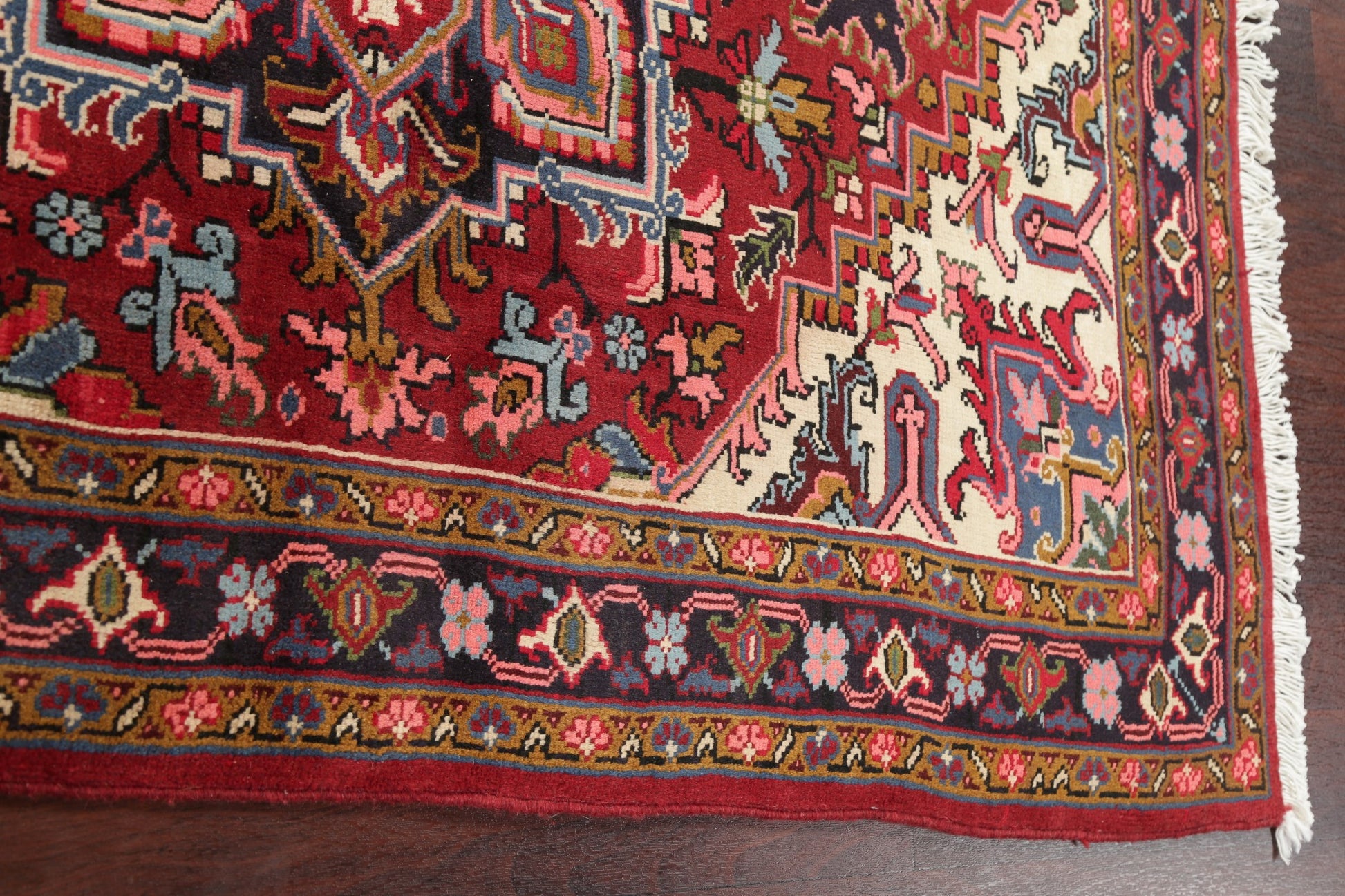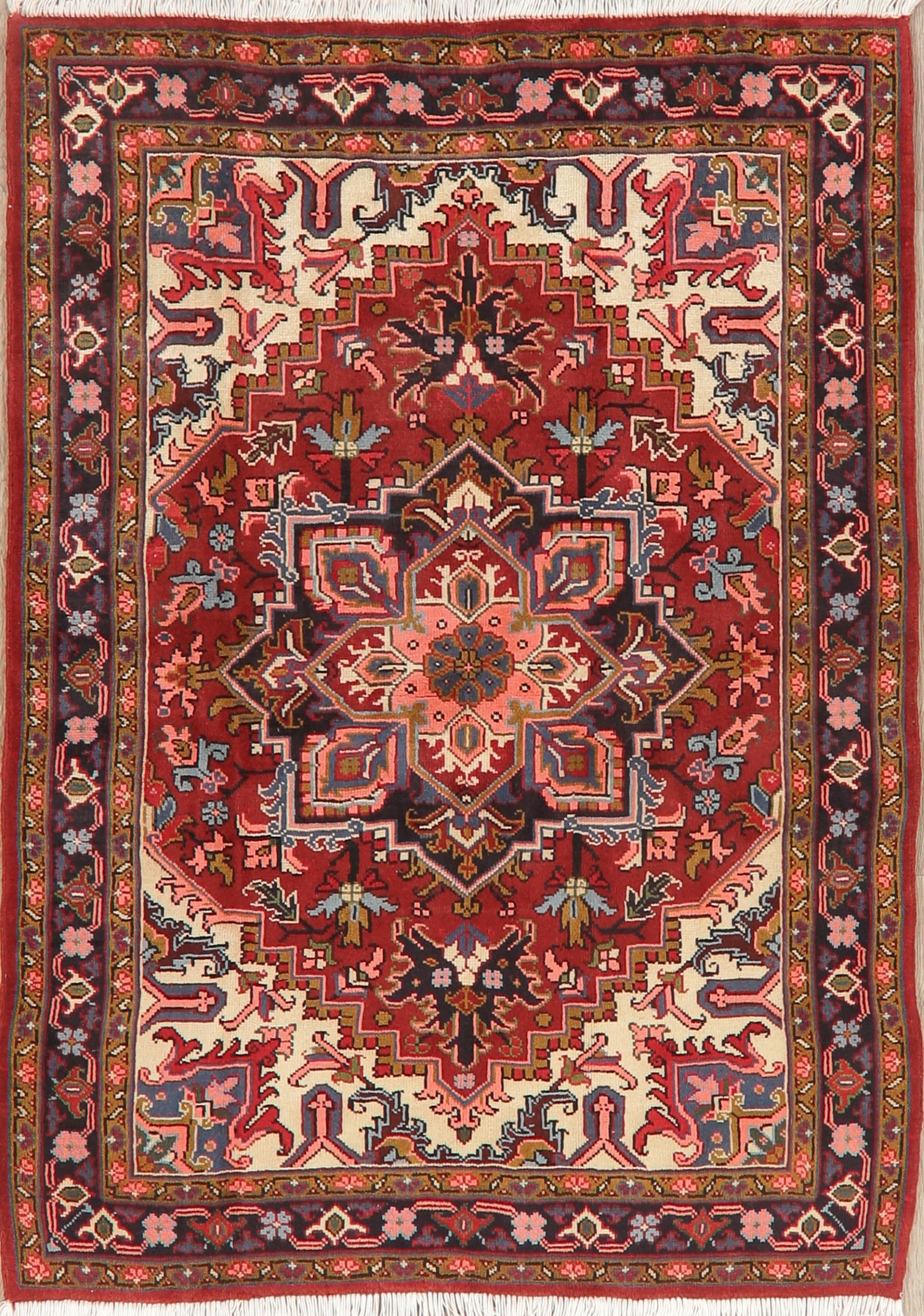A Beautiful Genuine Persia ( Persia ) Heriz rug is Hand Knotted by skillful weavers in Persia ( Persia ) with 100% Wool Material. This rug is in New, First Quality condition. dimensions are 6' 3'' X 5' 0'' in foot and 191 X 152 in centimeter. the primary color is Red.
