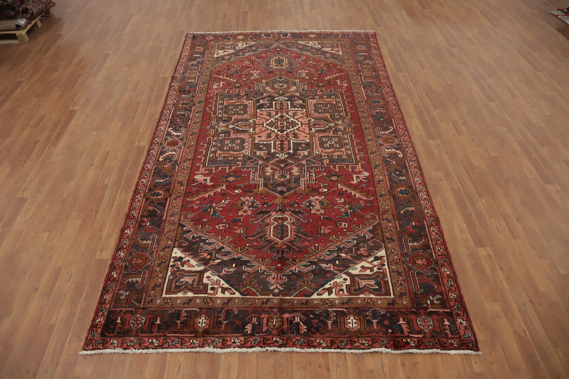 Geometric Red Heriz Persian Area Rug 6x11