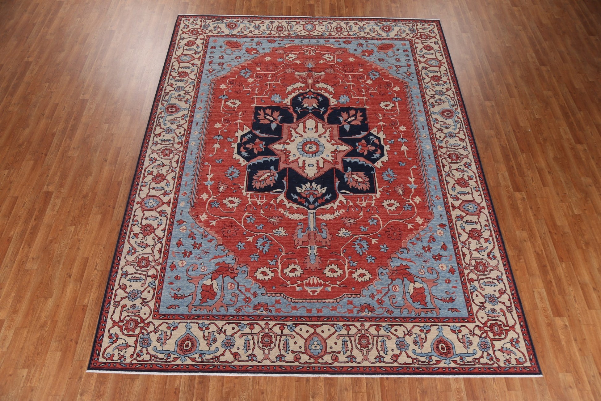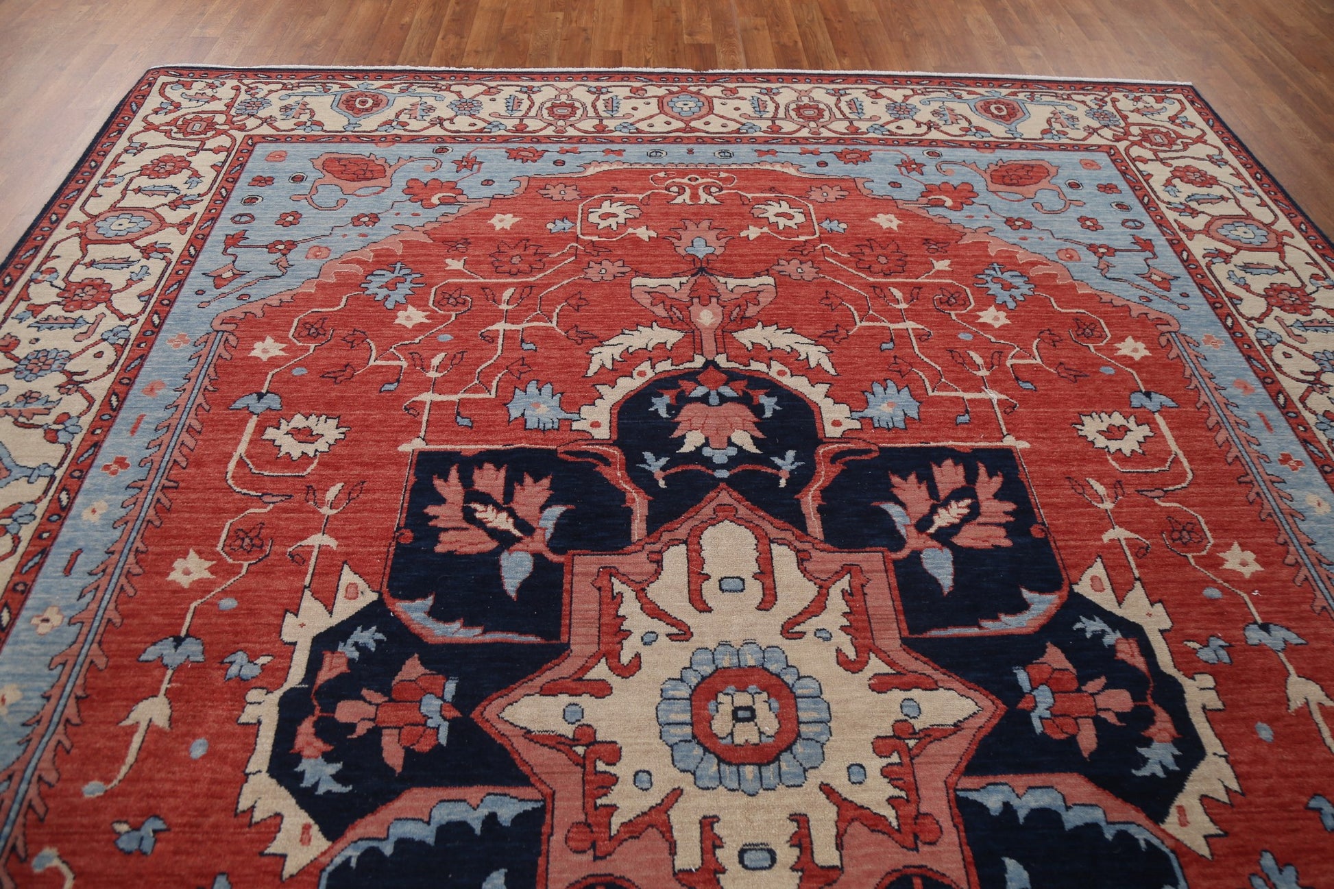Geometric Red Heriz Serapi Turkish Rug 9x12