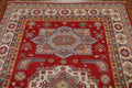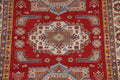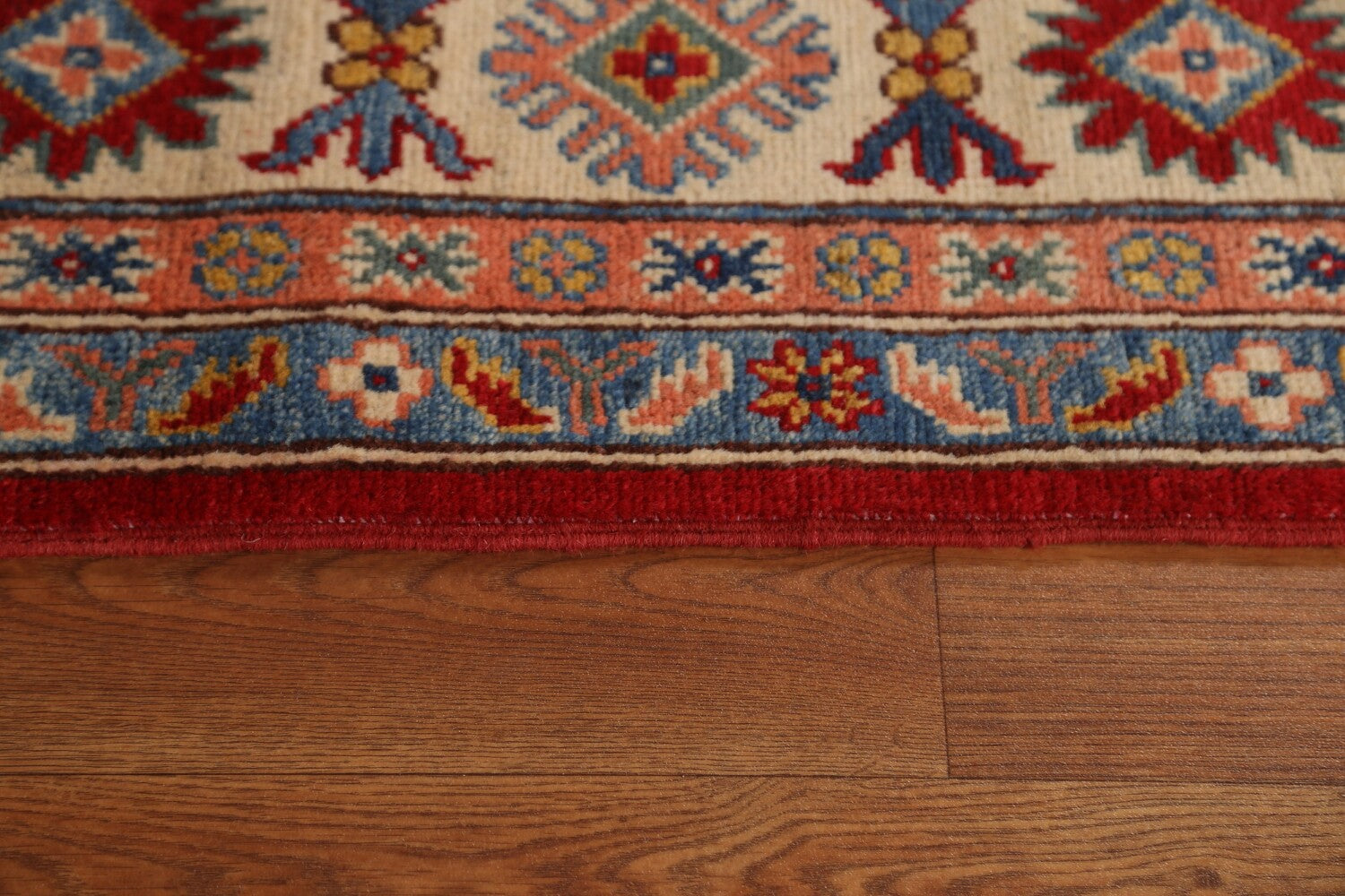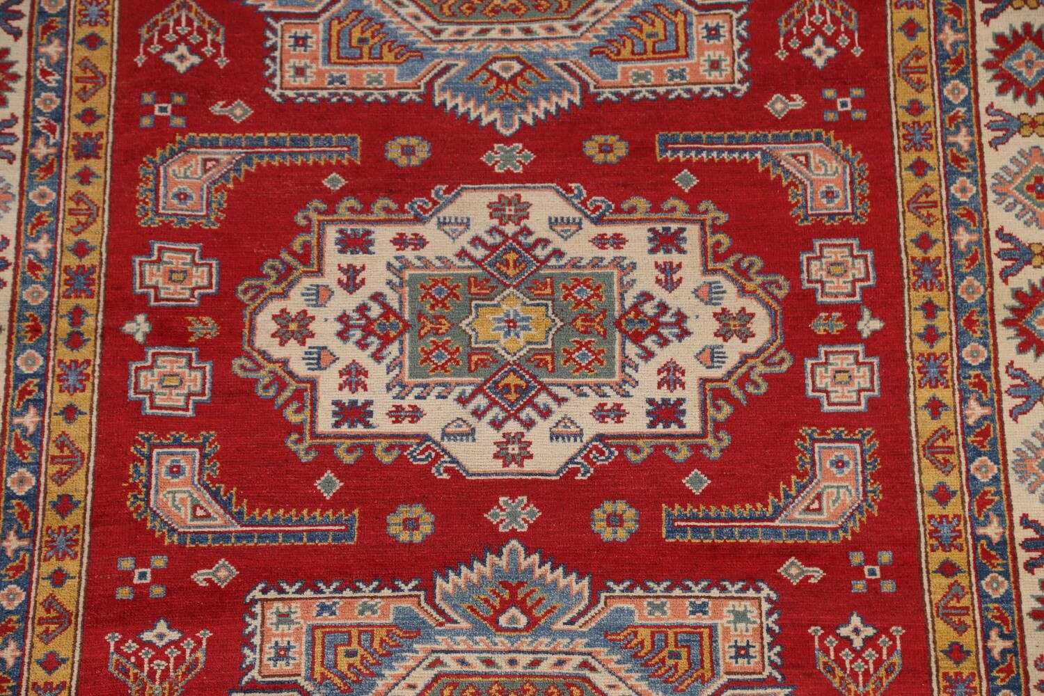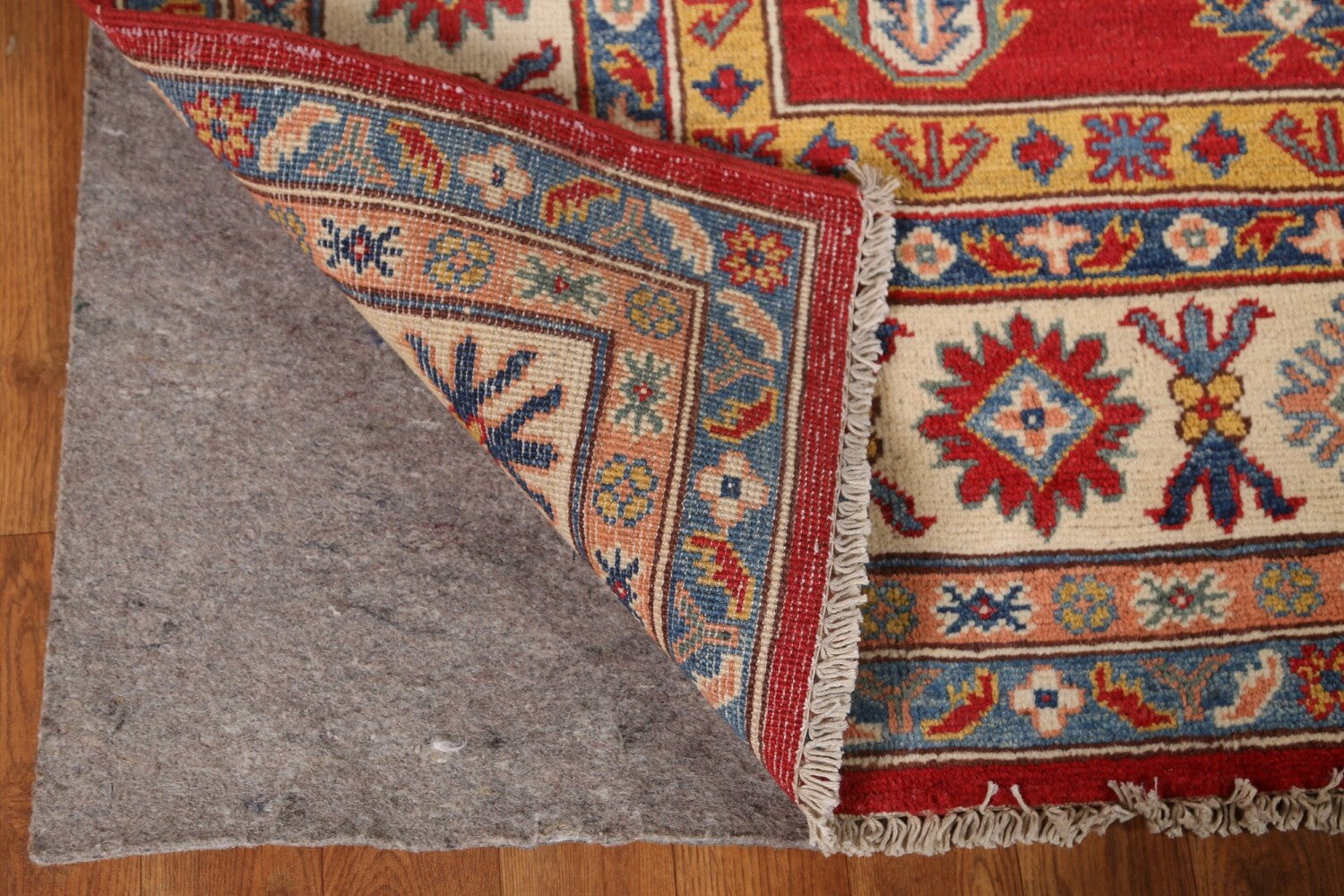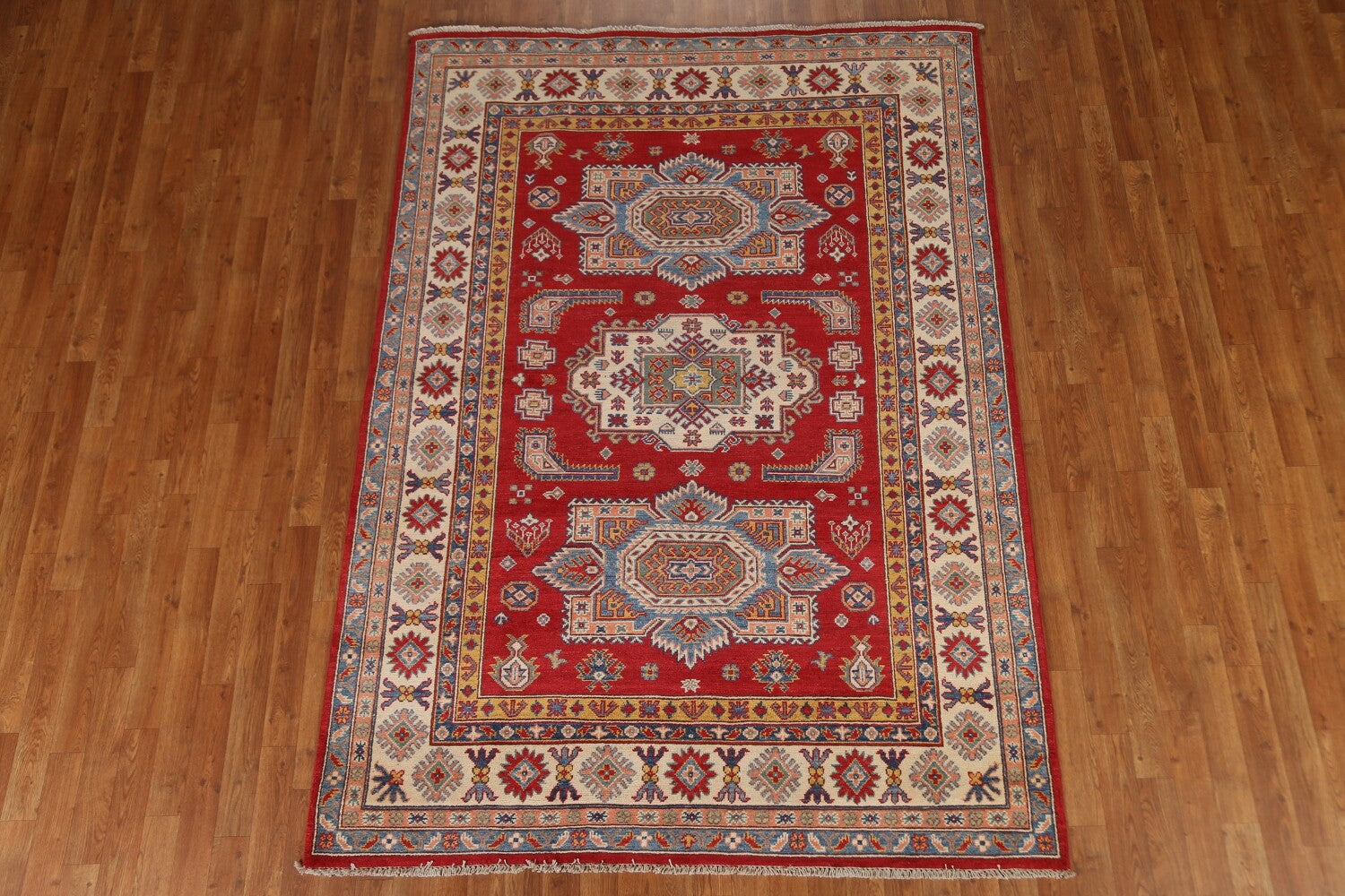 A Beautiful Genuine Pakistan Kazak rug is Hand Knotted by skillful weavers in Pakistan with 100% Wool Material. This rug is in New, First Quality condition. dimensions are 7' 10'' X 5' 7'' in foot and 239 X 170 in centimeter. the primary color is Red.