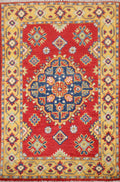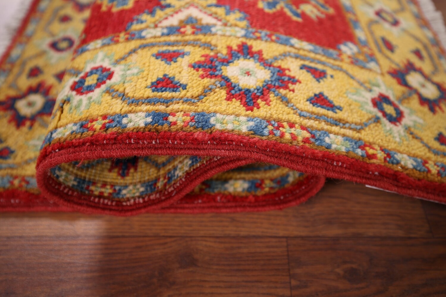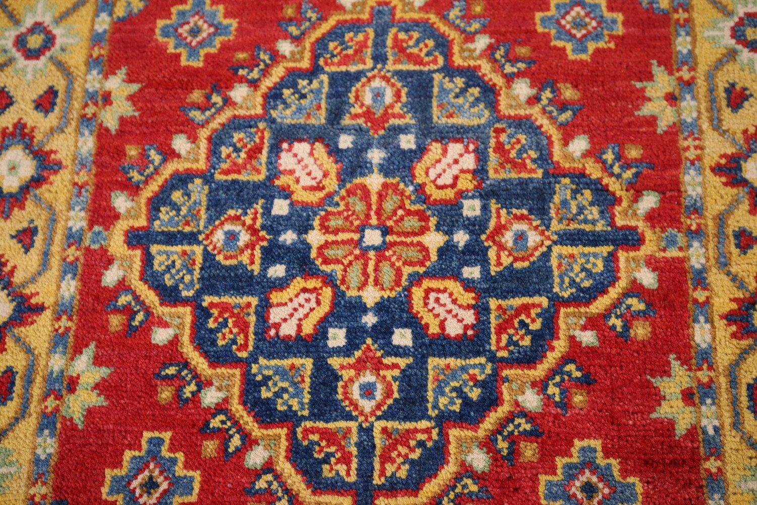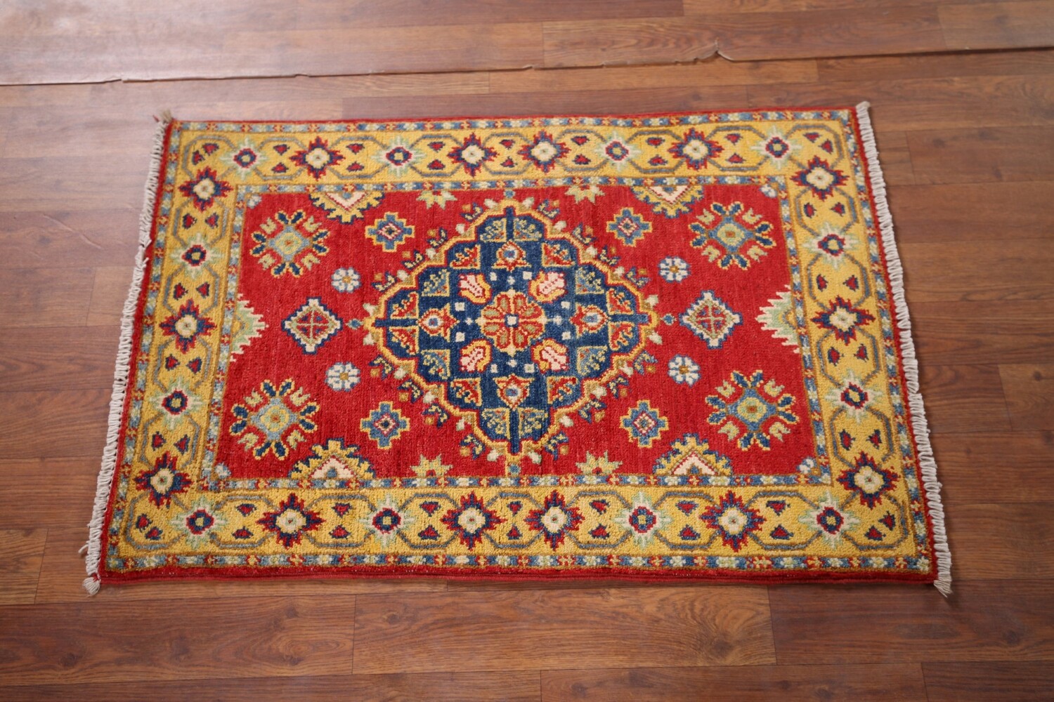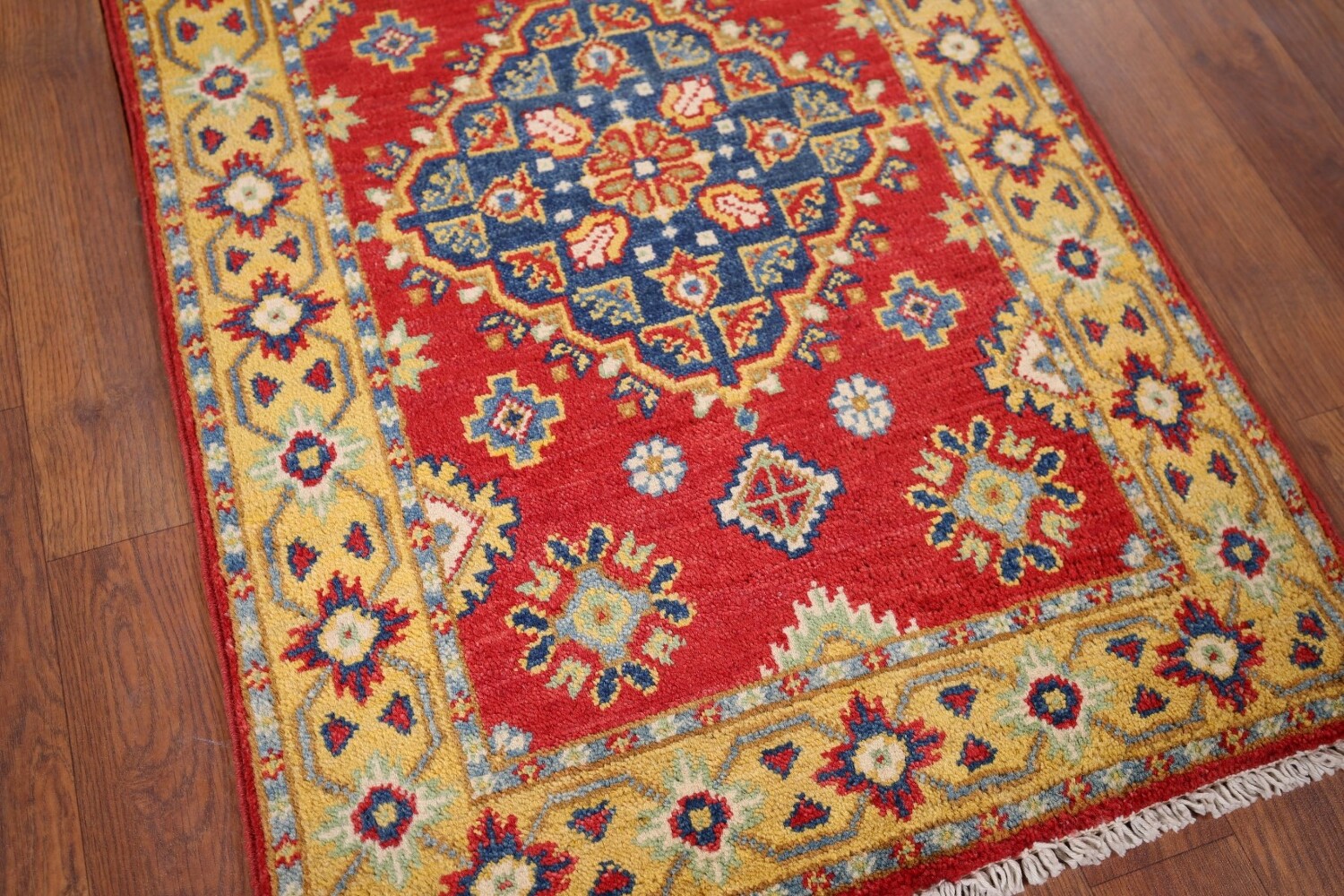 A Beautiful Genuine Pakistan Kazak rug is Hand Knotted by skillful weavers in Pakistan with 100% Wool Material. This rug is in New, First Quality condition. dimensions are 3' 0'' X 2' 0'' in foot and 91 X 61 in centimeter. the primary color is Red.