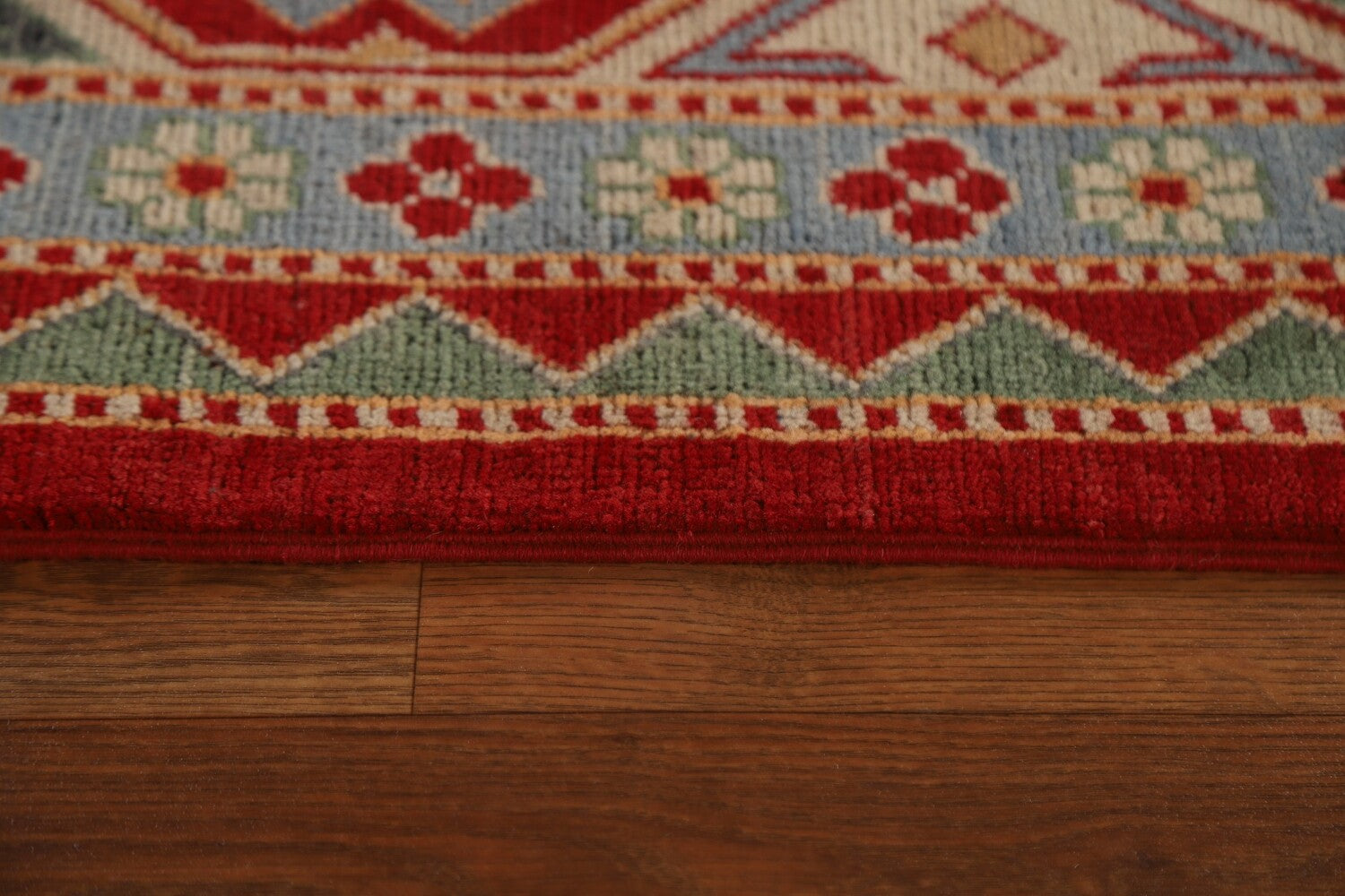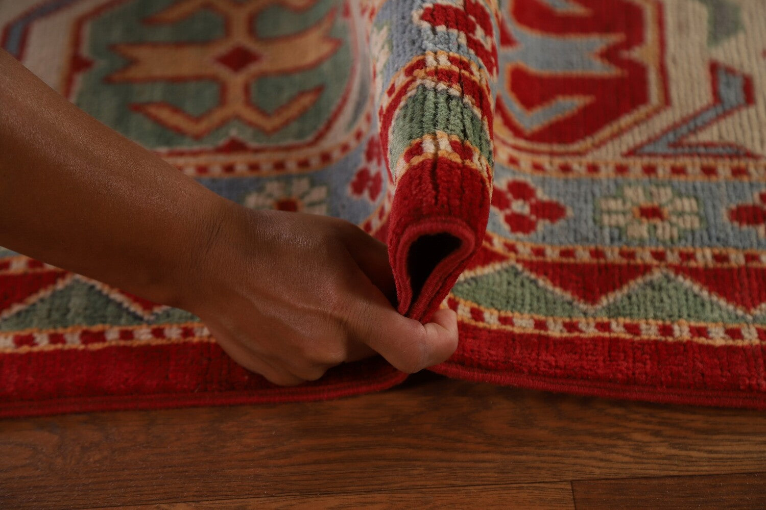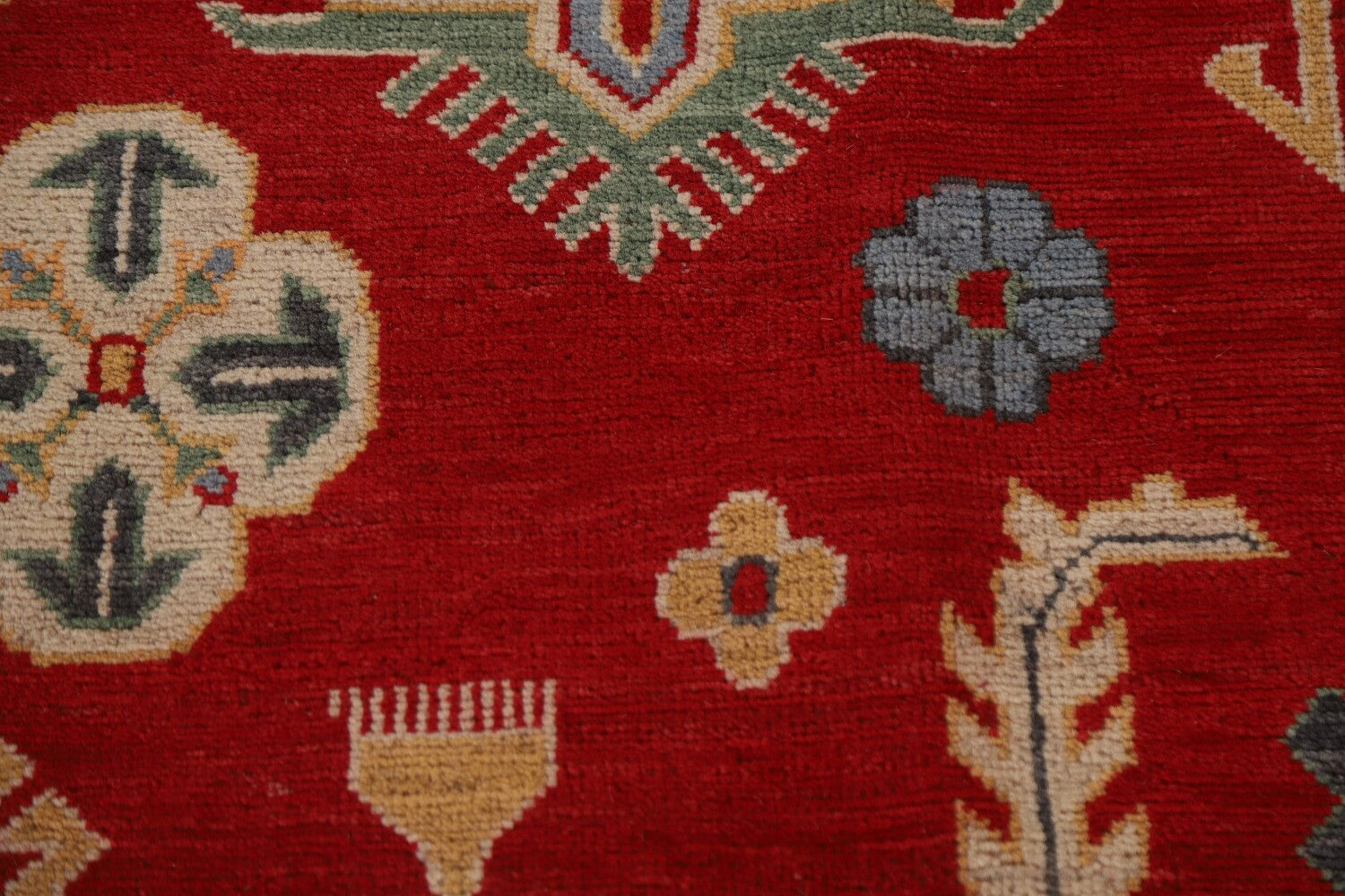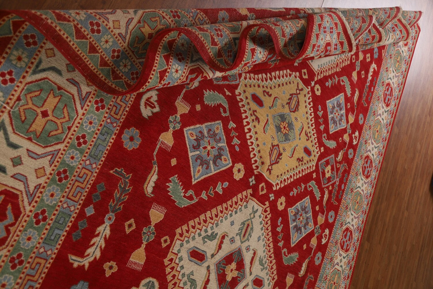 A Beautiful Genuine Pakistan Kazak rug is Hand Knotted by skillful weavers in Pakistan with 100% Wool Material. This rug is in condition. dimensions are 11' 9'' X 8' 8'' in foot and 358 X 264 in centimeter. the primary color is Red.