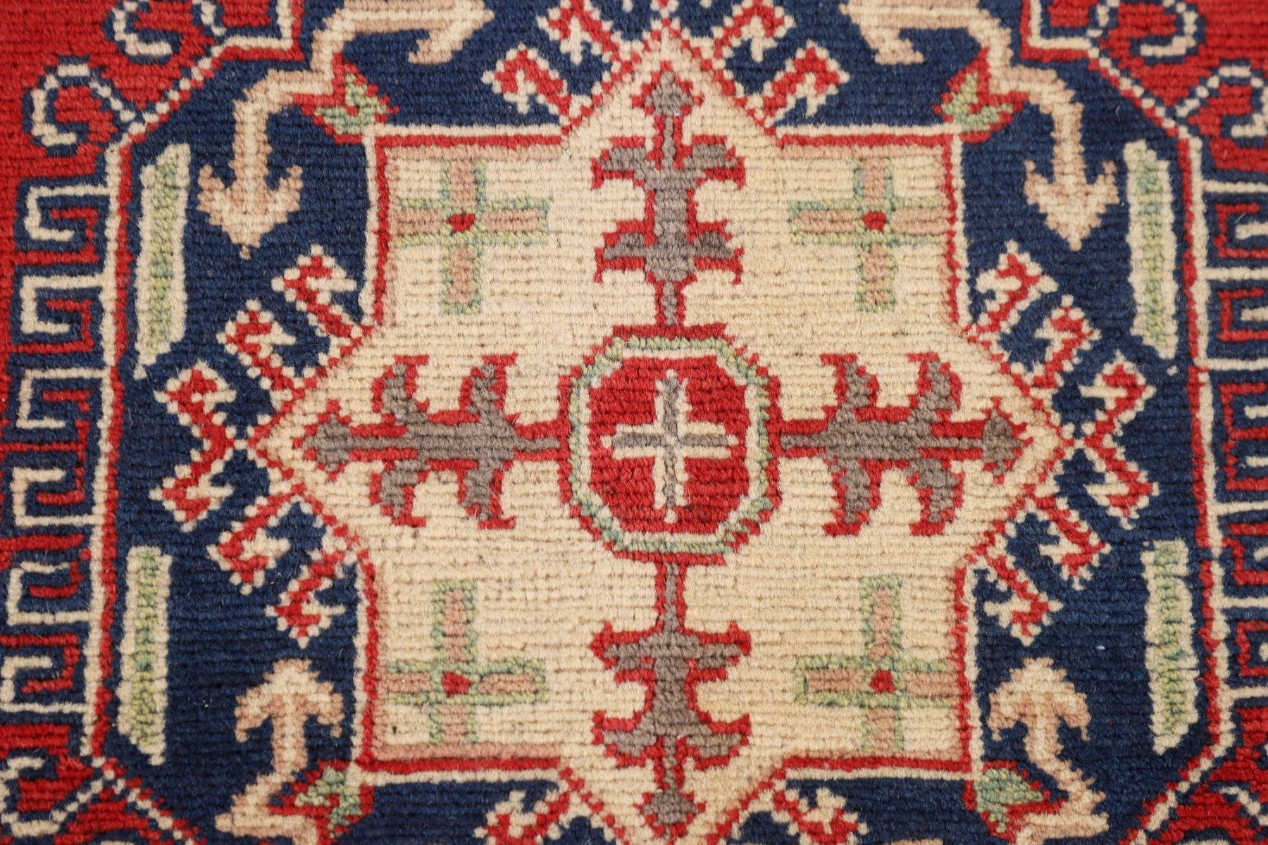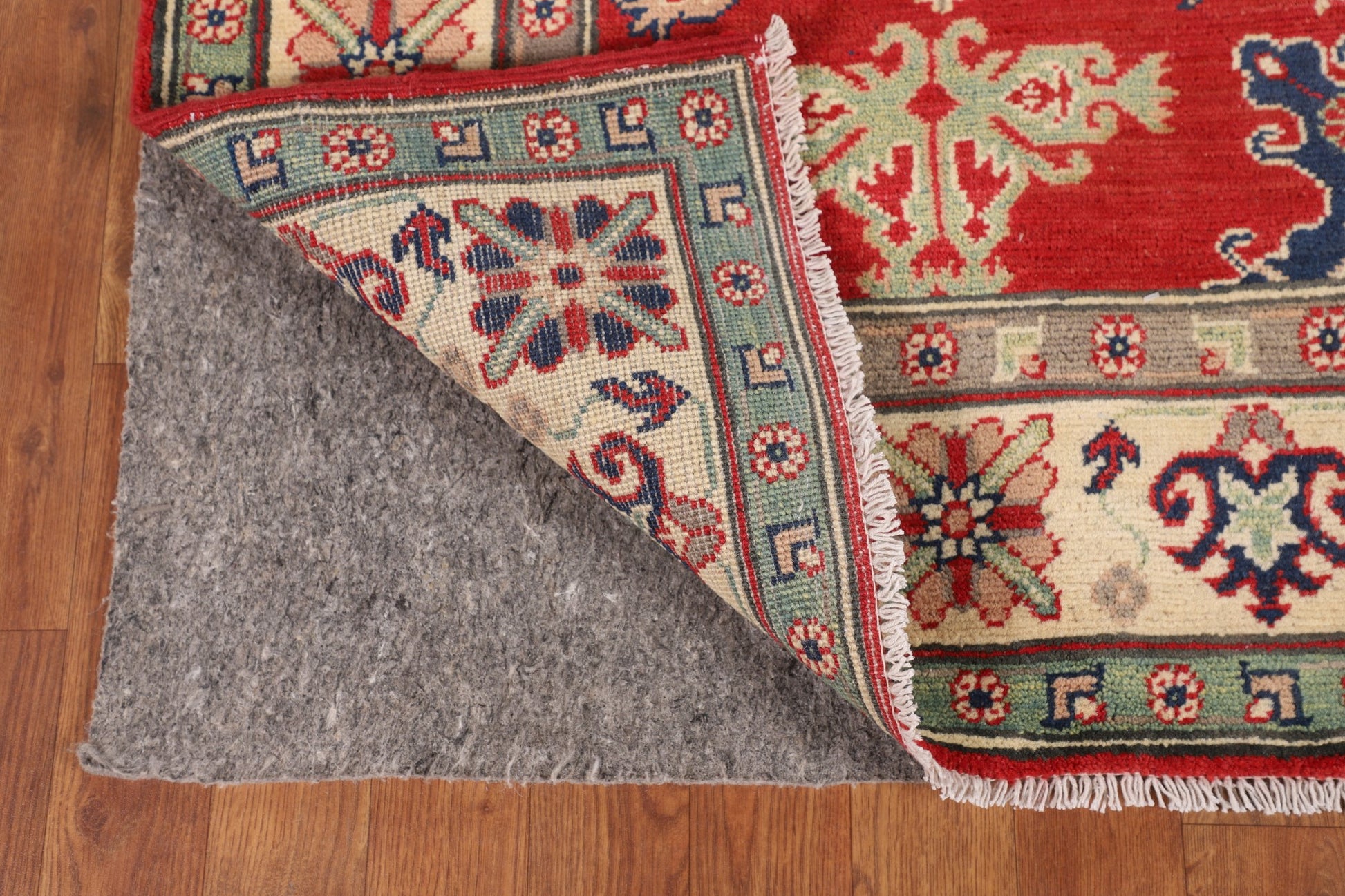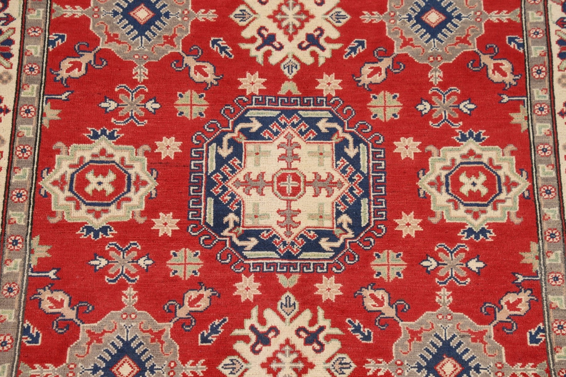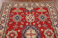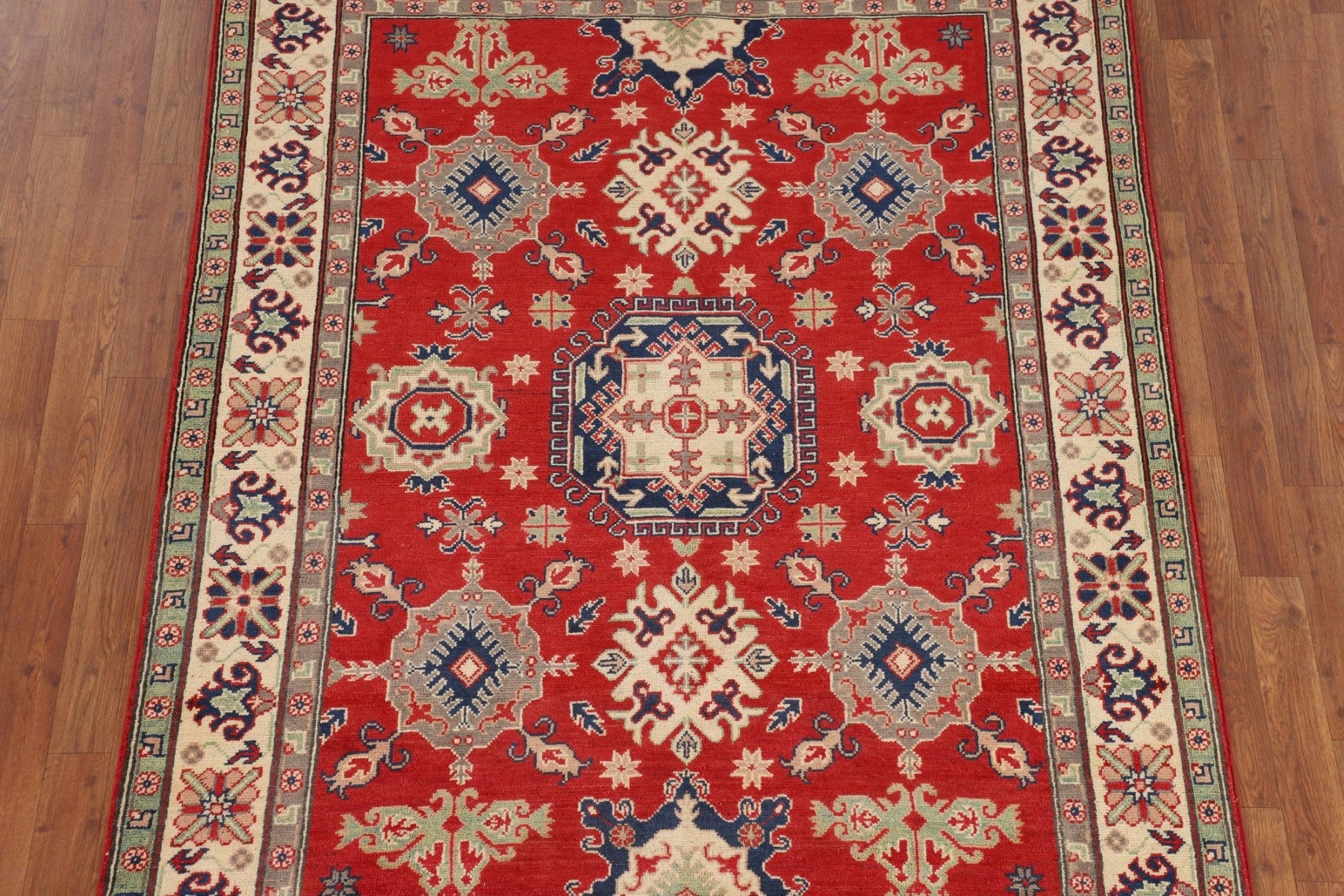 A Beautiful Genuine Pakistan Kazak rug is Hand Knotted by skillful weavers in Pakistan with 100% Wool Material. This rug is in New, First Quality condition. dimensions are 6' 8'' X 5' 0'' in foot and 203 X 152 in centimeter. the primary color is Red.