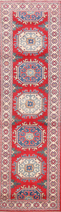 Geometric Red Kazak Oriental Runner Rug 3x10