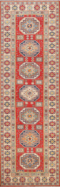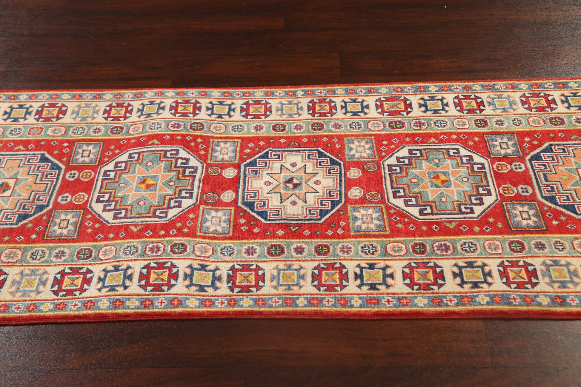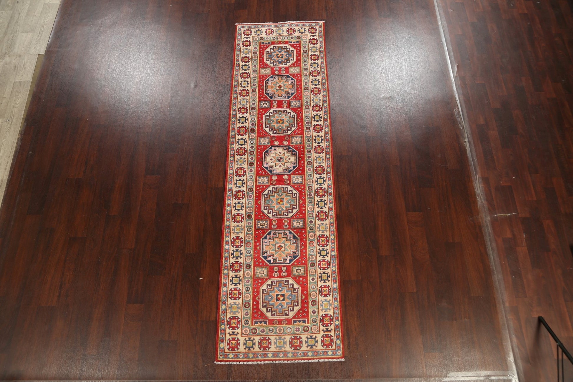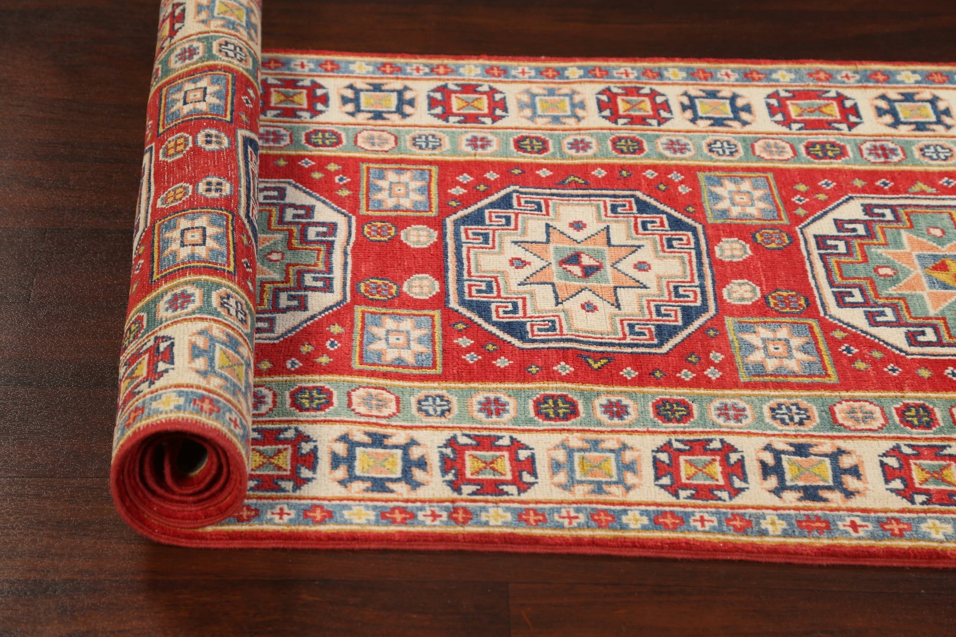 Geometric Red Kazak Oriental Runner Rug 3x10