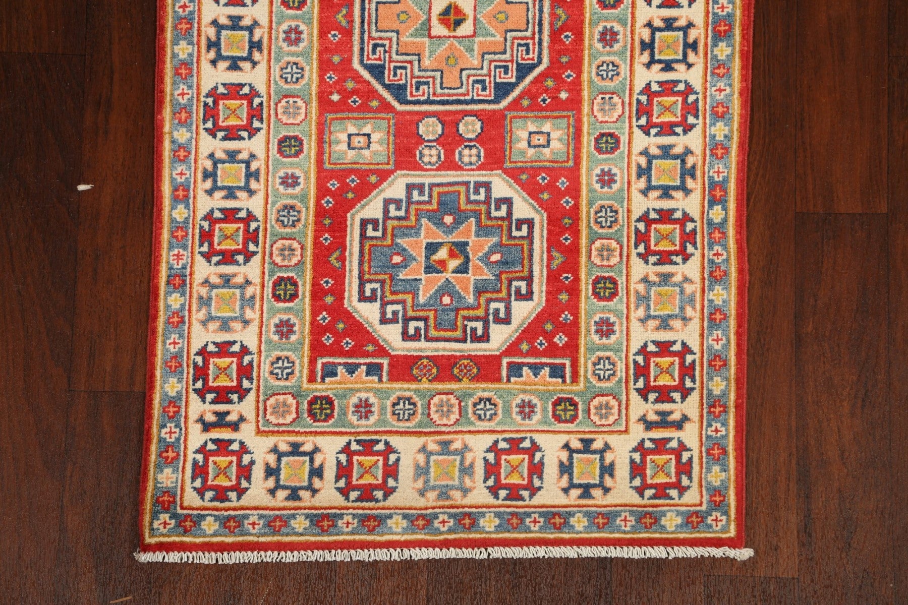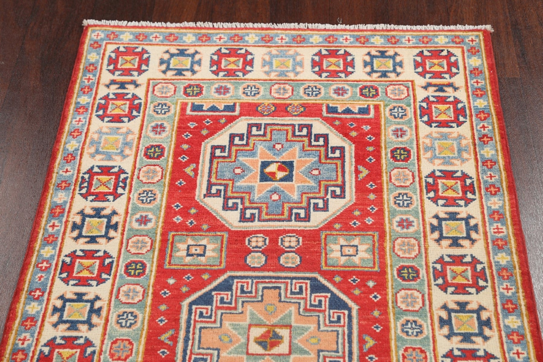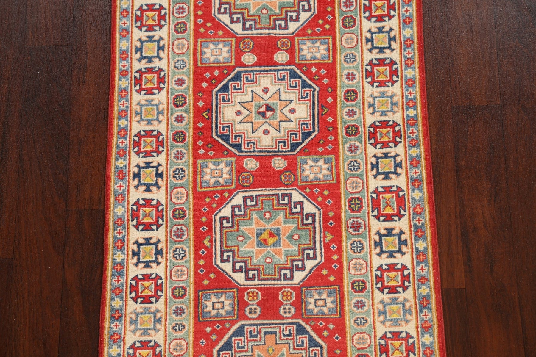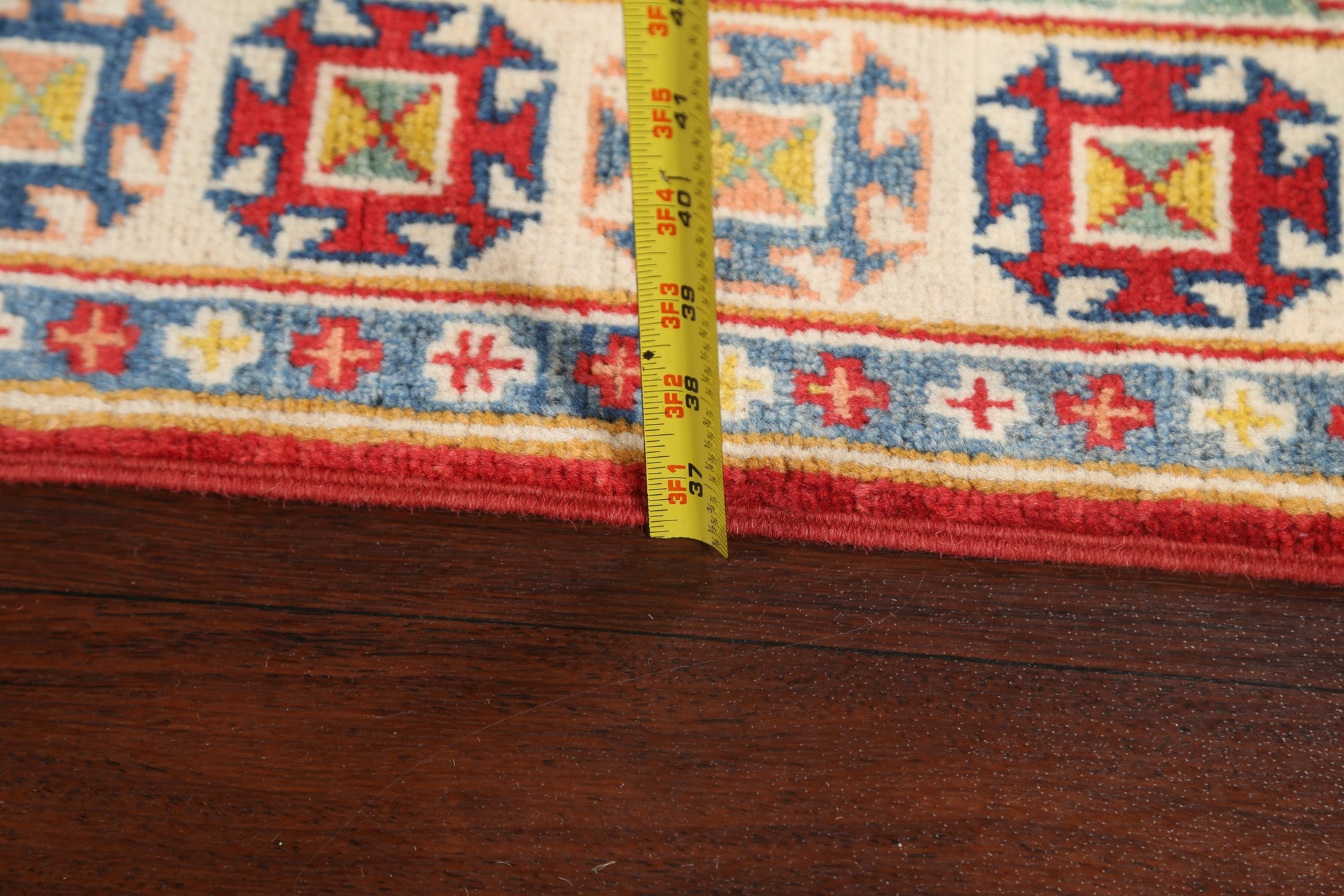 Geometric Red Kazak Oriental Runner Rug 3x10