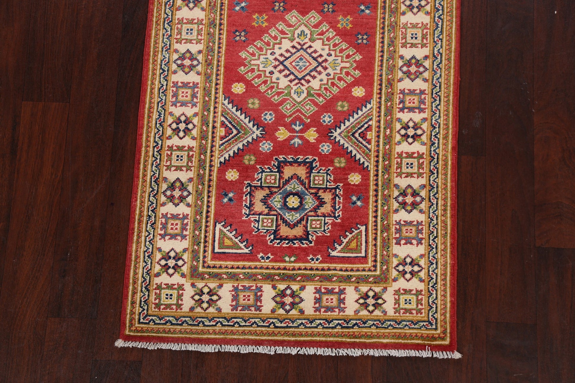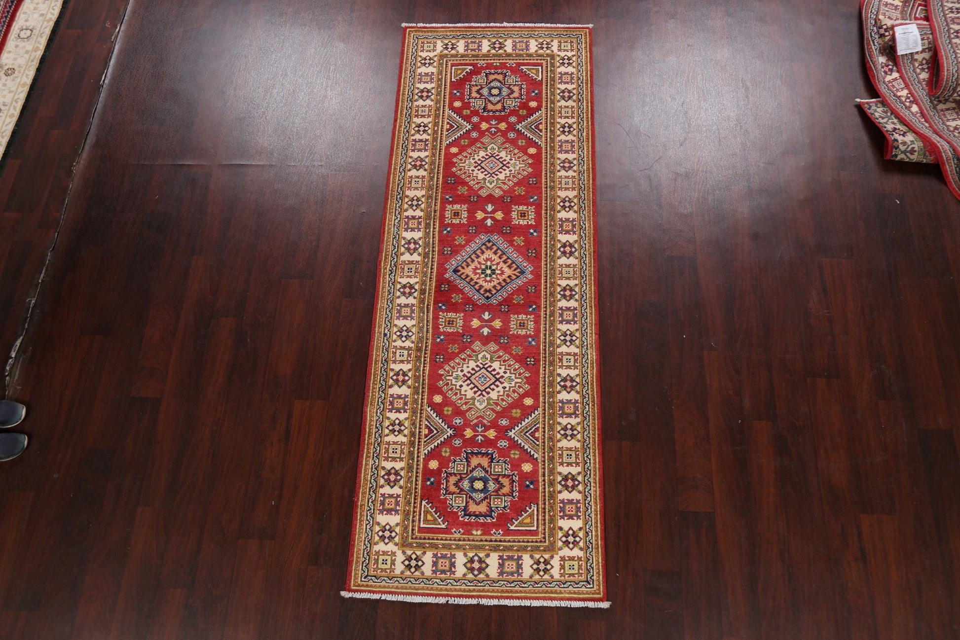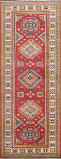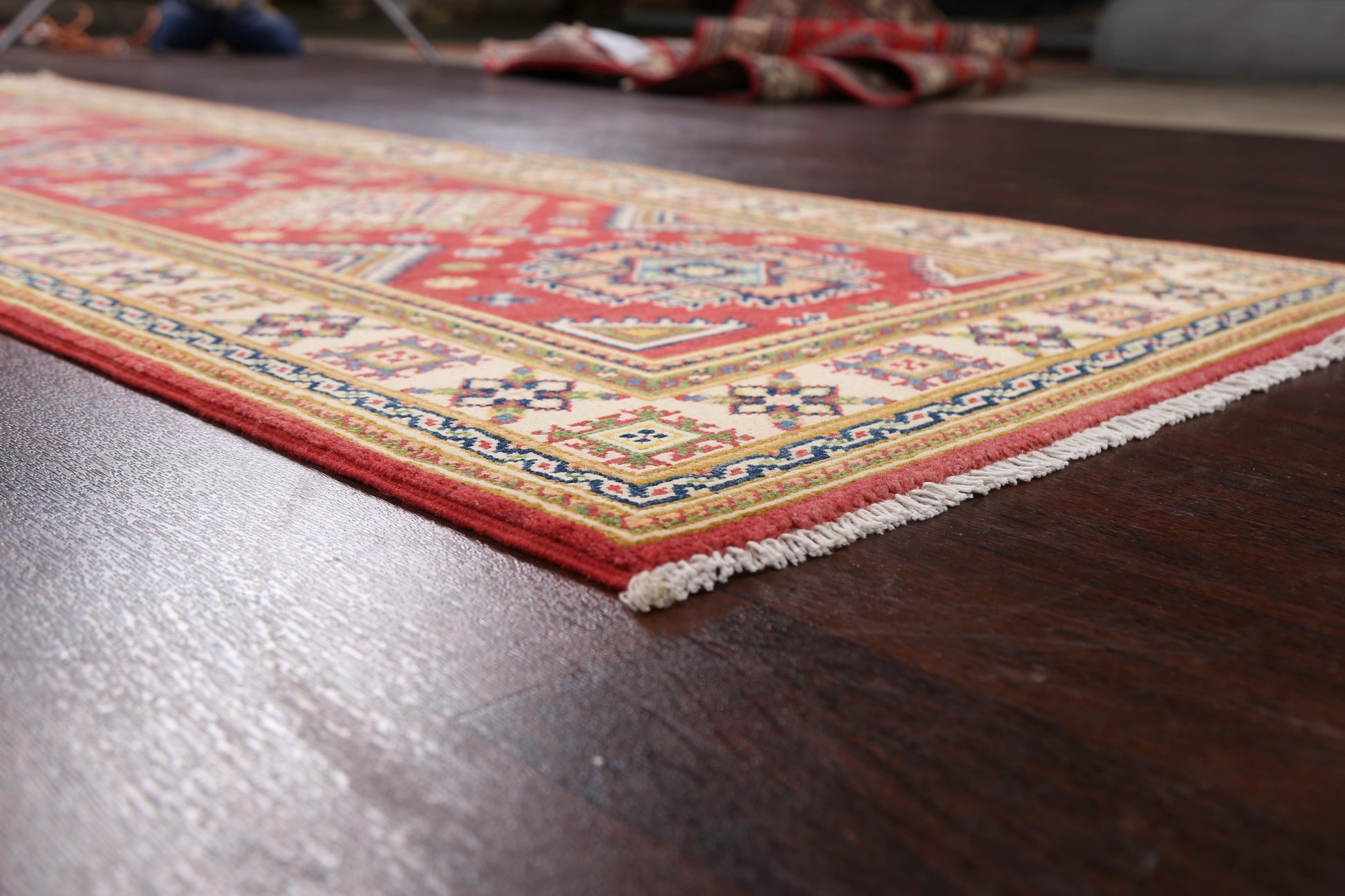 Geometric Red Kazak Oriental Runner Rug 3x8
