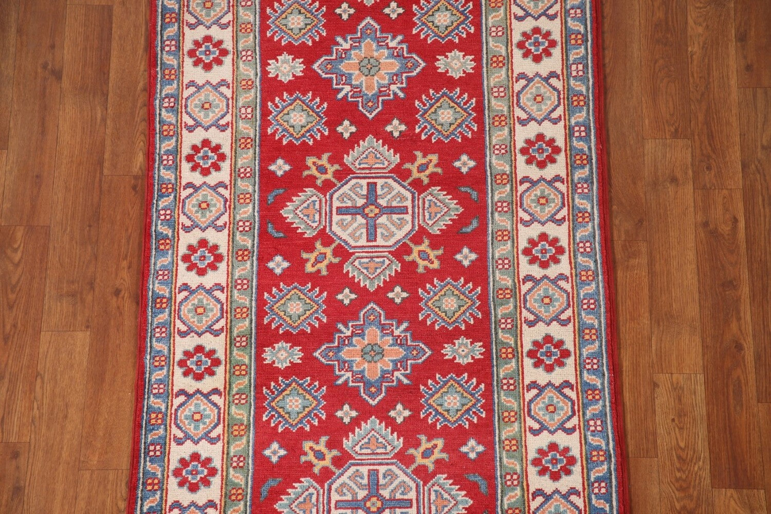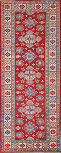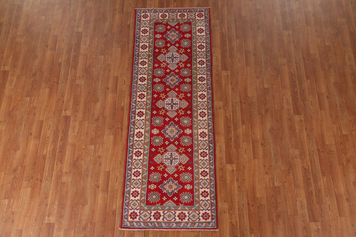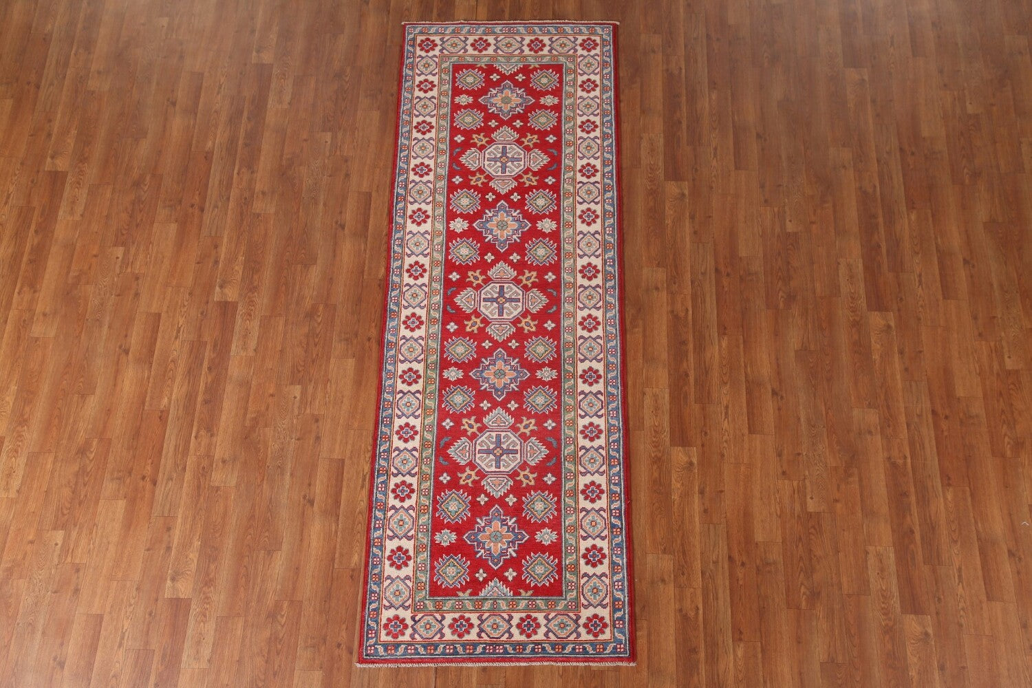 Geometric Red Kazak Oriental Runner Rug 3x8