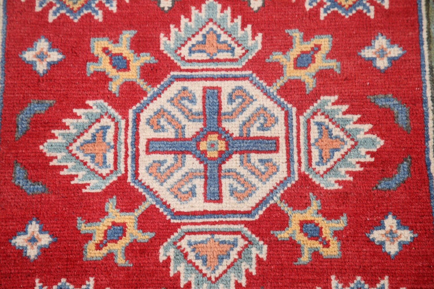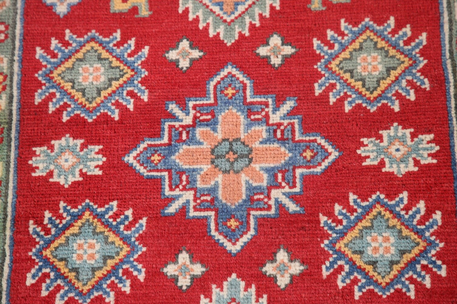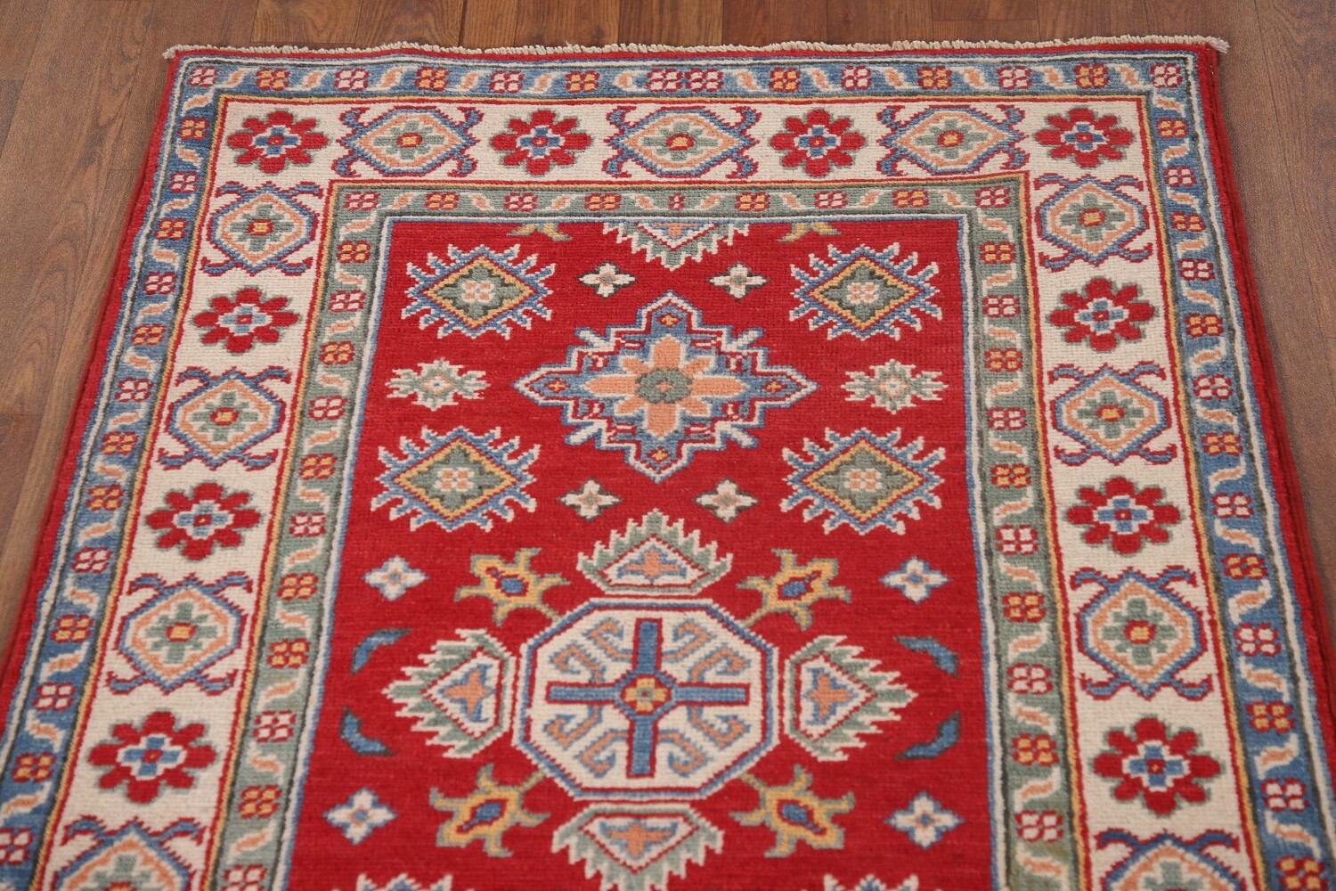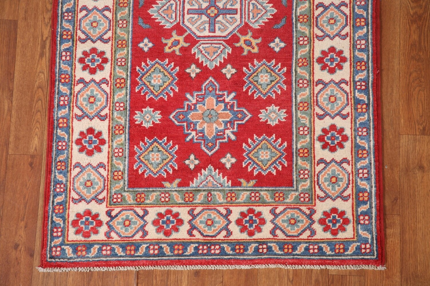 Geometric Red Kazak Oriental Runner Rug 3x8