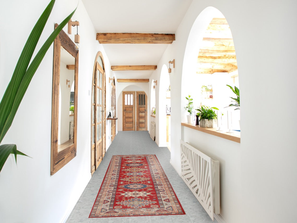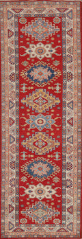 Geometric Red Kazak Oriental Runner Rug 3x9