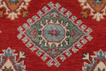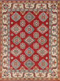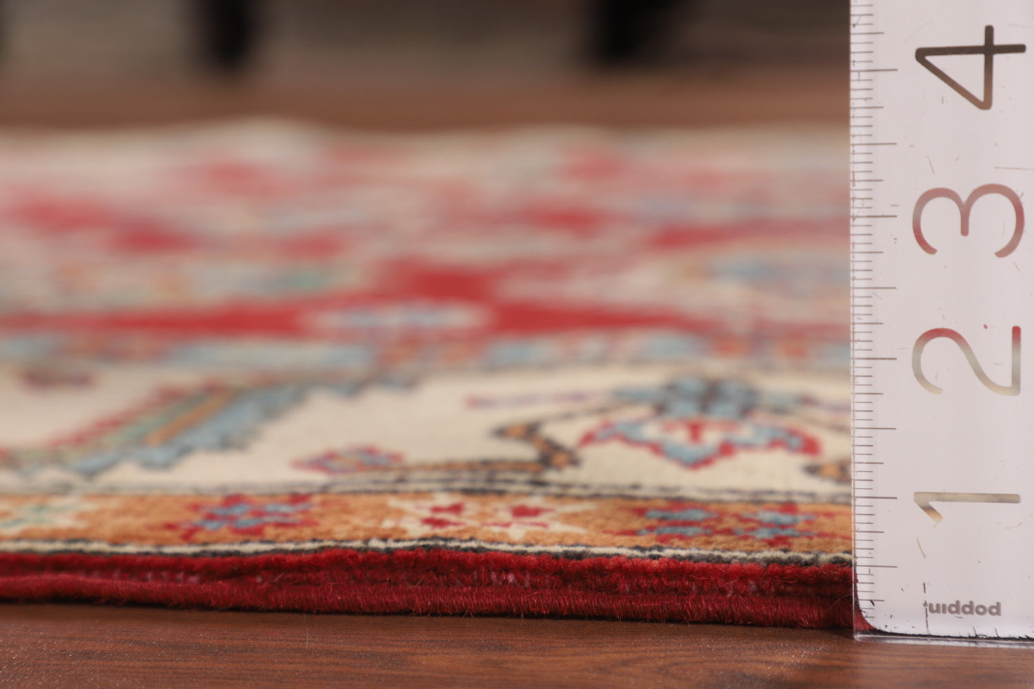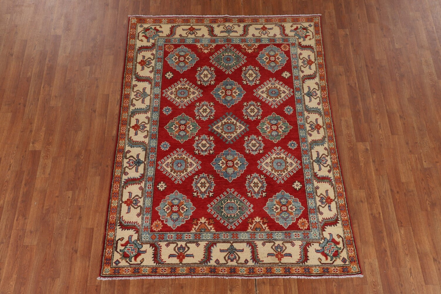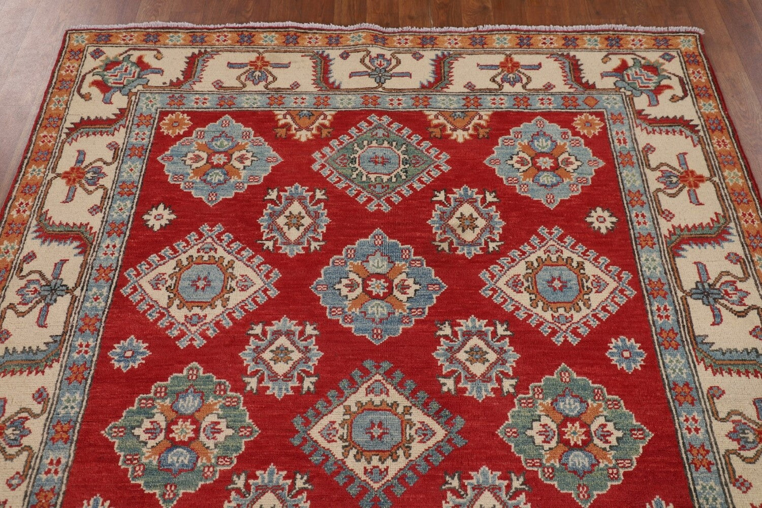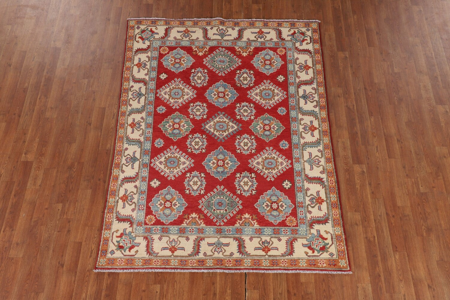Geometric Red Kazak Oriental Wool Rug 5x7