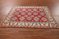 A Beautiful Genuine Pakistan Kazak rug is Hand Knotted by skillful weavers in Pakistan with 100% Wool Material. This rug is in New, First Quality condition. dimensions are 6' 9'' X 5' 0'' in foot and 206 X 152 in centimeter. the primary color is Red.