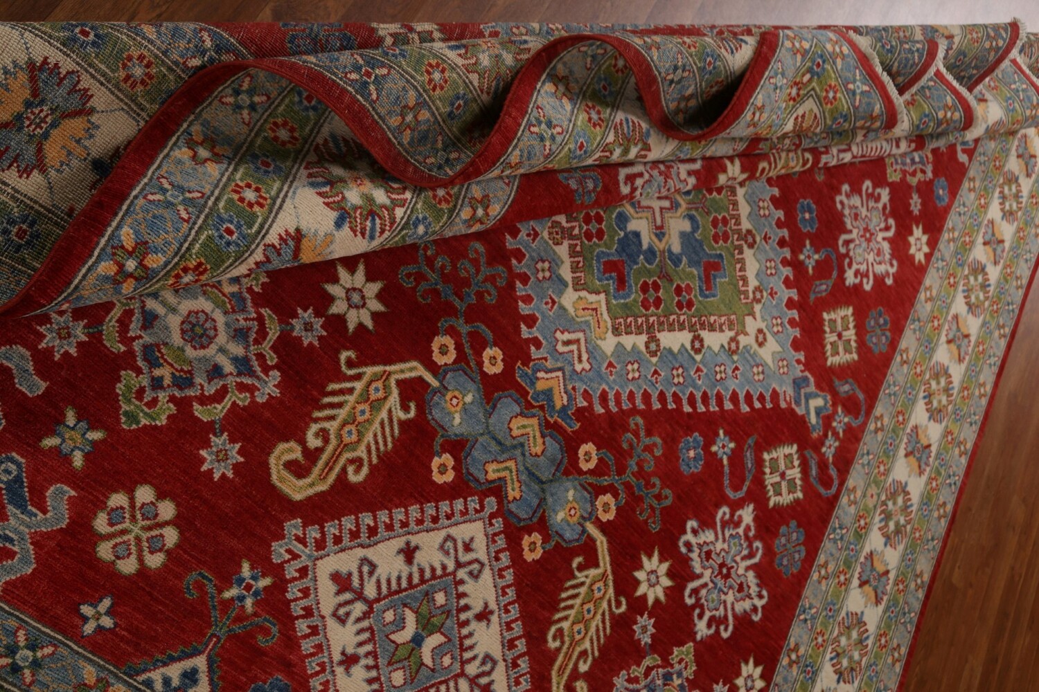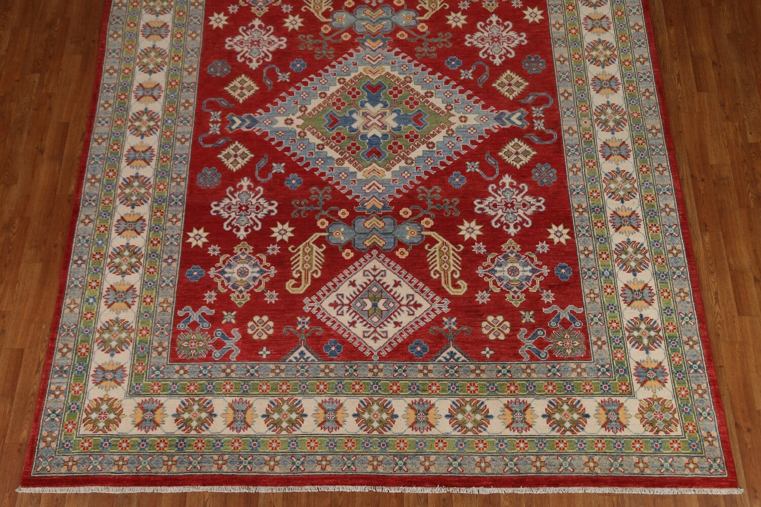 A Beautiful Genuine Pakistan Kazak rug is Hand Knotted by skillful weavers in Pakistan with 100% Wool Material. This rug is in New, First Quality condition. dimensions are 9' 10'' X 8' 0'' in foot and 300 X 244 in centimeter. the primary color is Red.