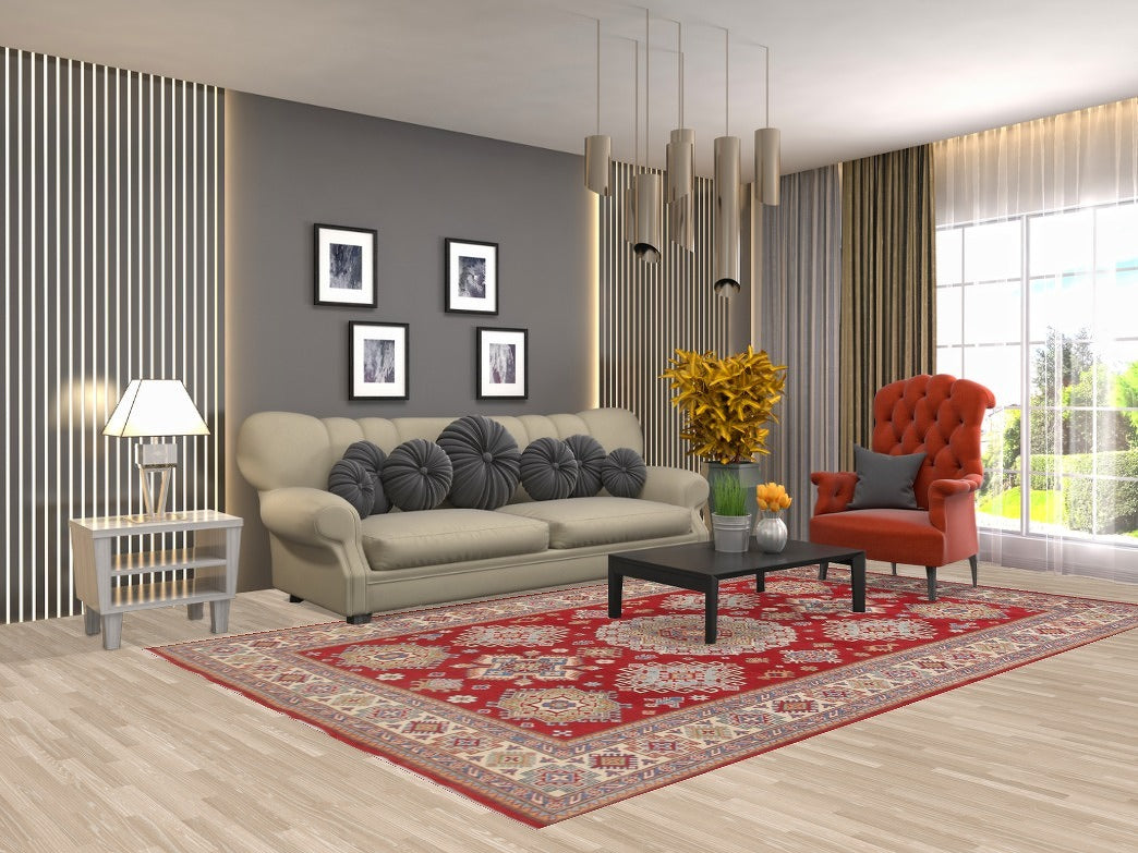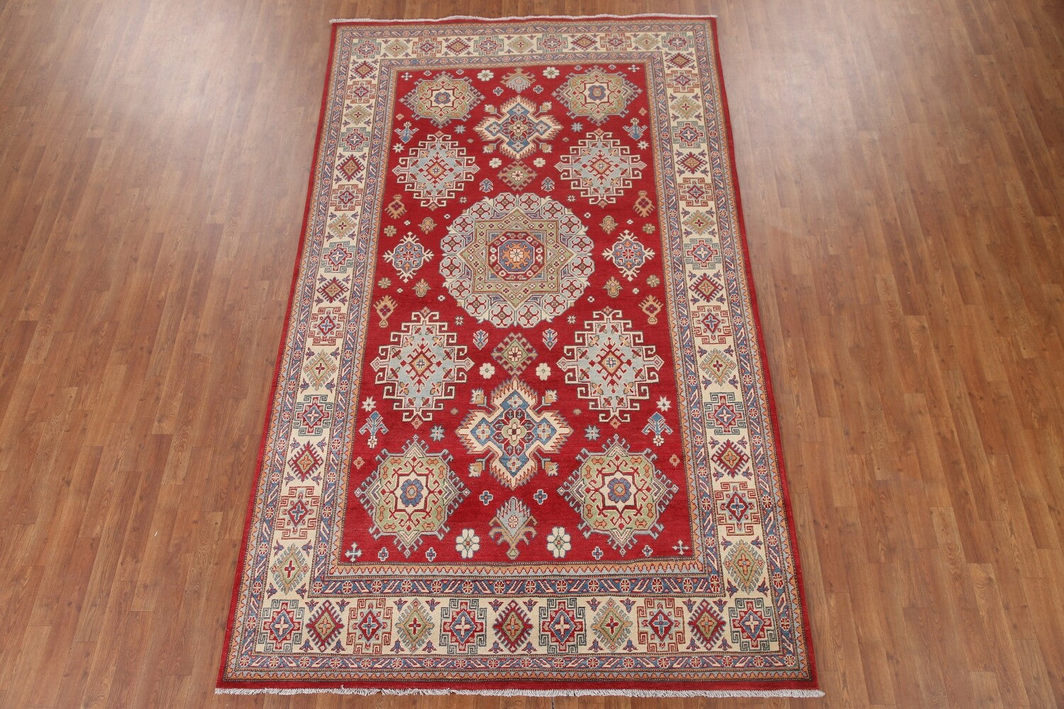 Geometric Red Kazak South Western Area Rug 6x10